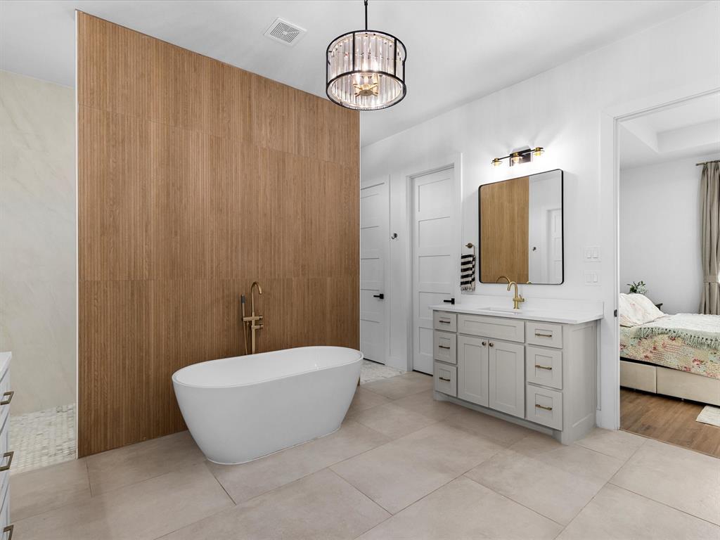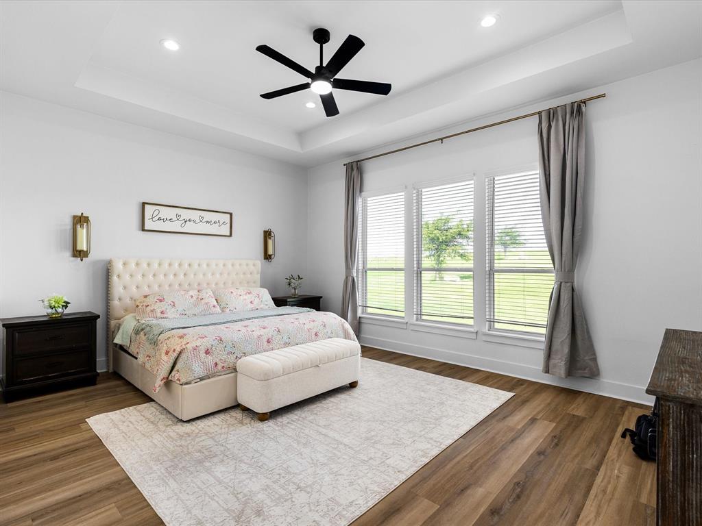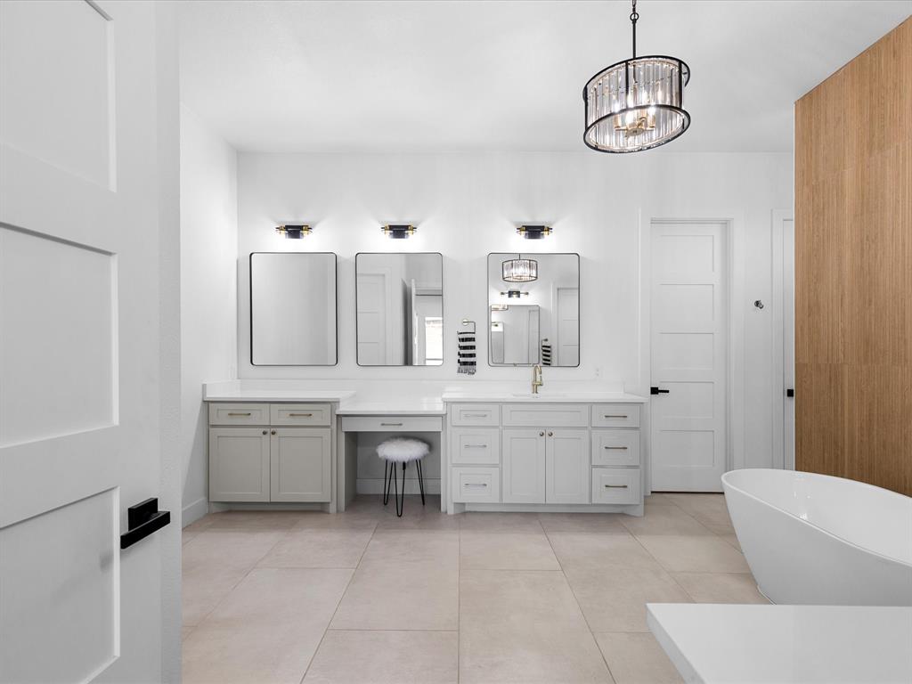 The primary suite offers a private retreat with a spa-like bathroom, soaking tub, walk-in shower, and large walk-in closet. Enjoy relaxing evenings on the oversized covered patio, taking in the serene golf course and sunset views.