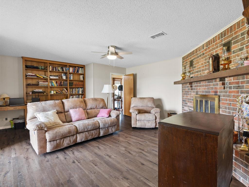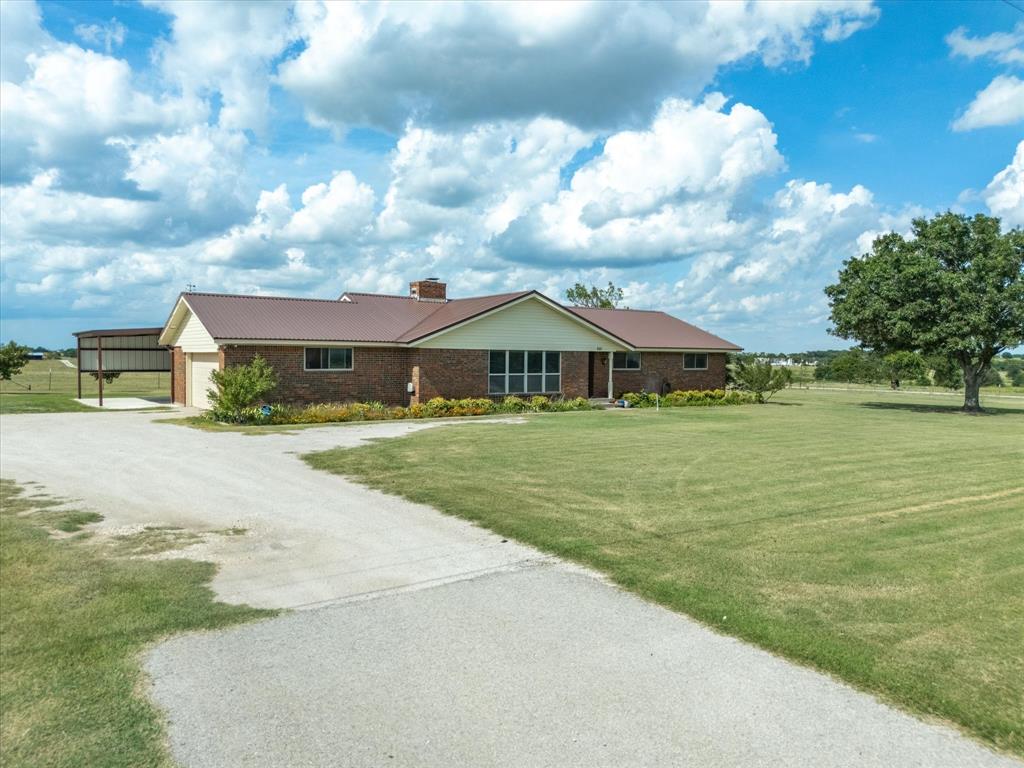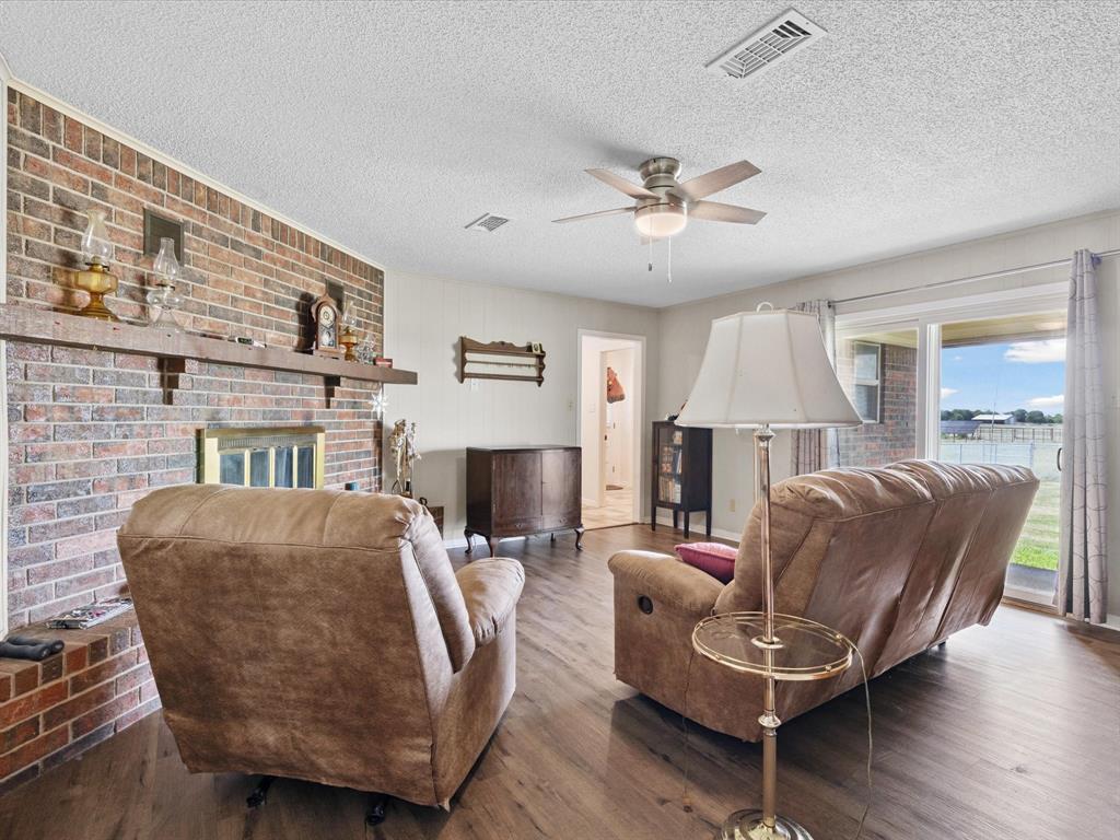 Discover the perfect blend of comfort, sustainability, and income potential with this unique property featuring two homes on 11 scenic acres. The main home is a charming three-bedroom, two-and-a-half-bath brick residence, with energy-efficient solar panels, a durable metal roof, and a welcoming 24x30 attached carport. Step inside to find a spacious layout with LVP flooring throughout, a cozy wood-burning fireplace, and custom built-in shelves and desk — ideal for a home office or study nook. The front room offers flexible space for a formal dining area, sitting room, or second living space. The primary suite features a private ensuite bath with dual sinks, while the second full bathroom is handicap accessible for added convenience. Enjoy outdoor living in the fenced-in back yard, surrounded by fruit producing trees and accessed by an all-weather road that ensures year-round usability.
