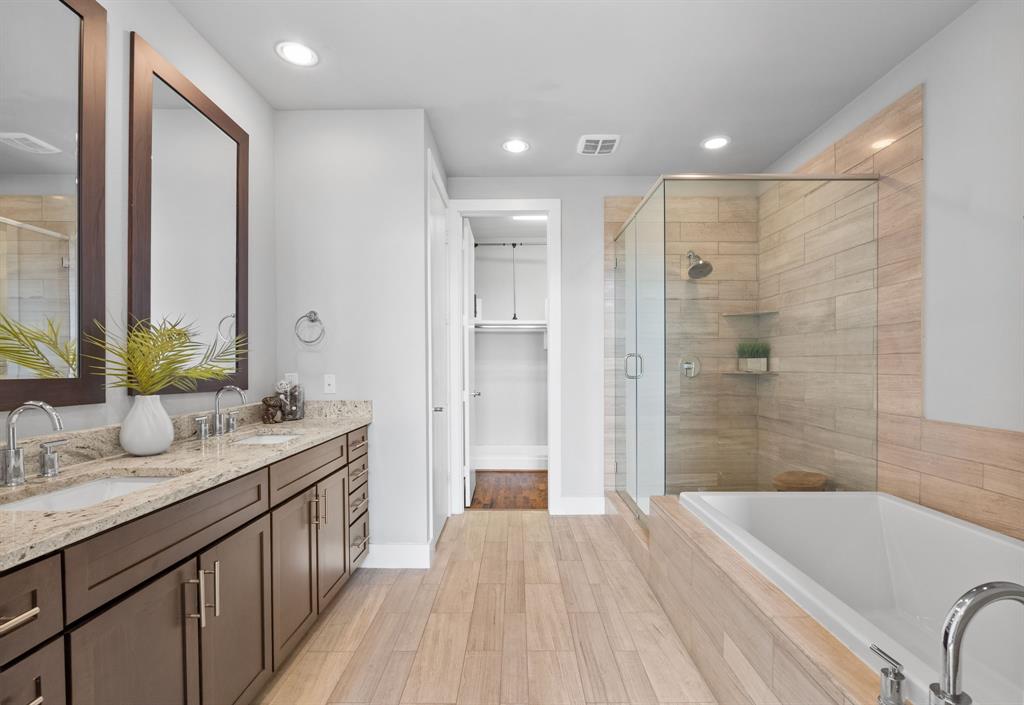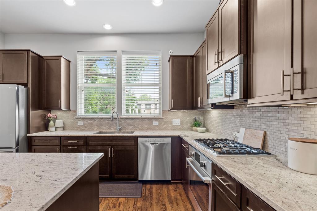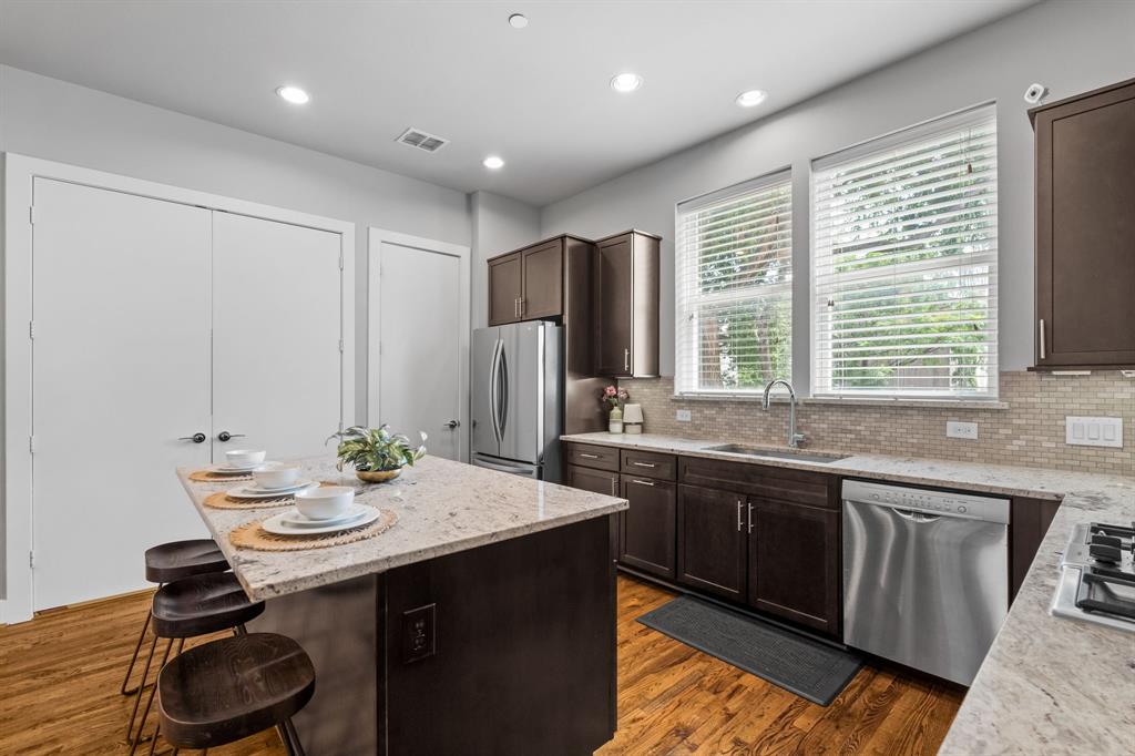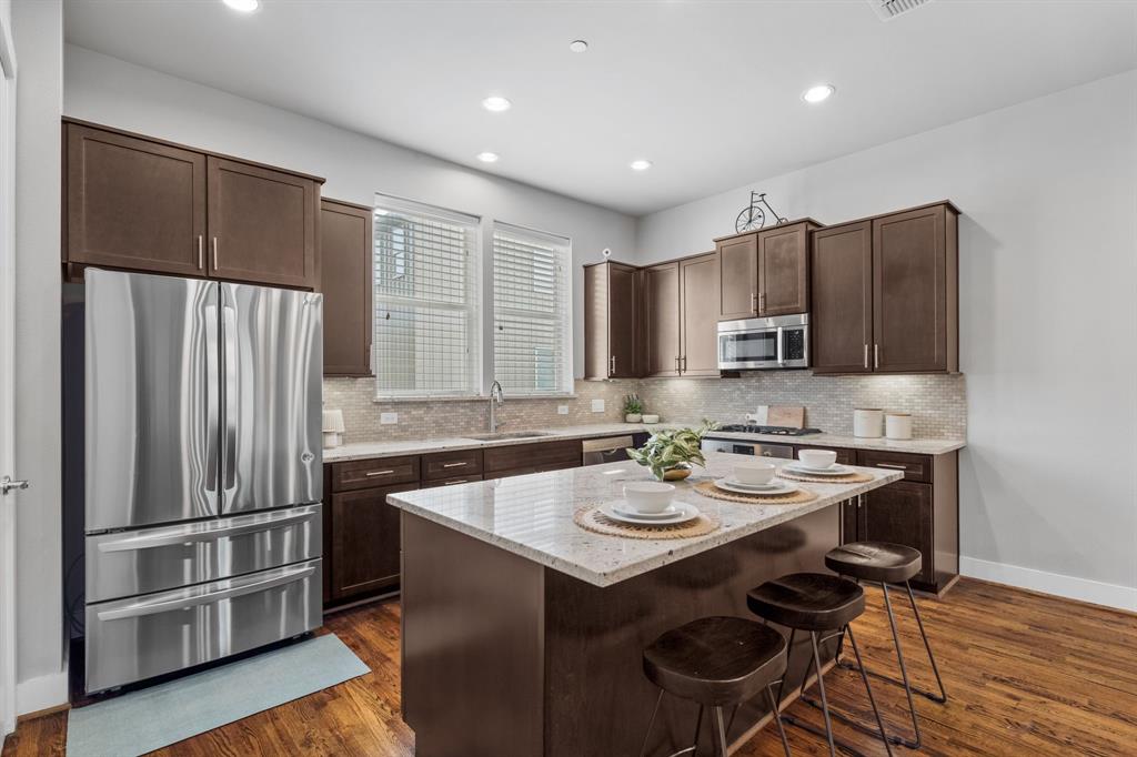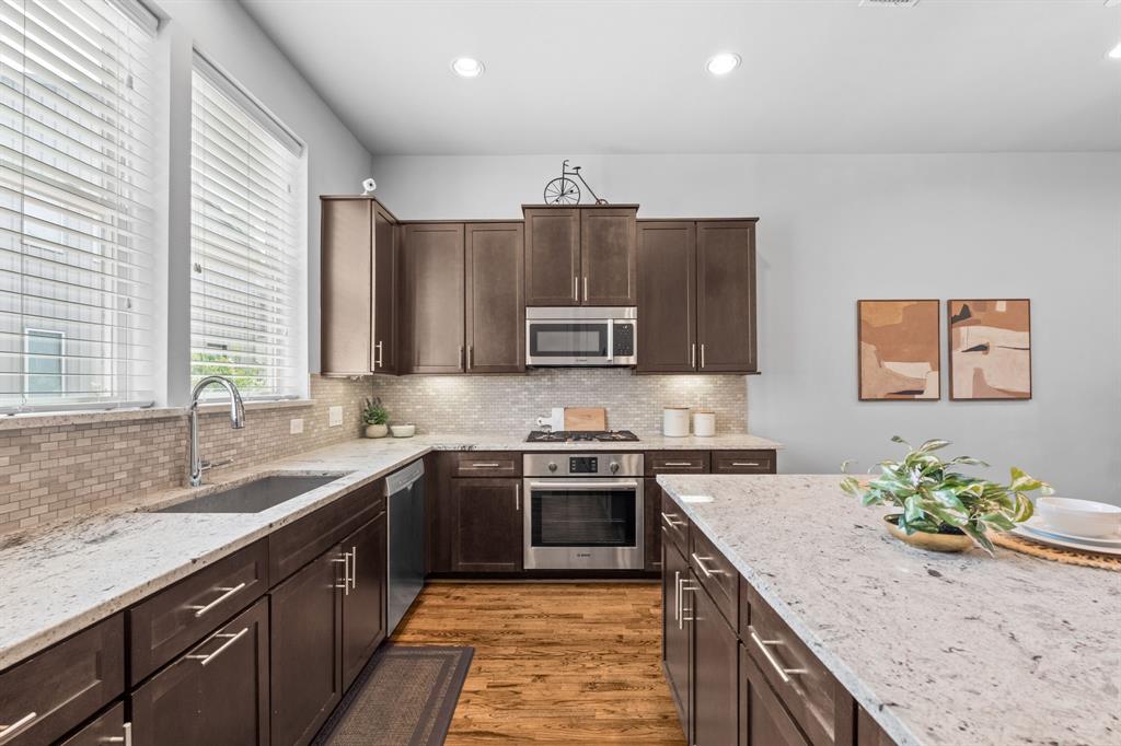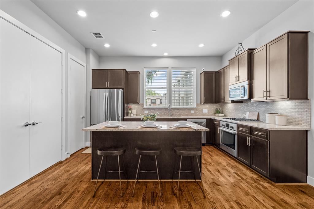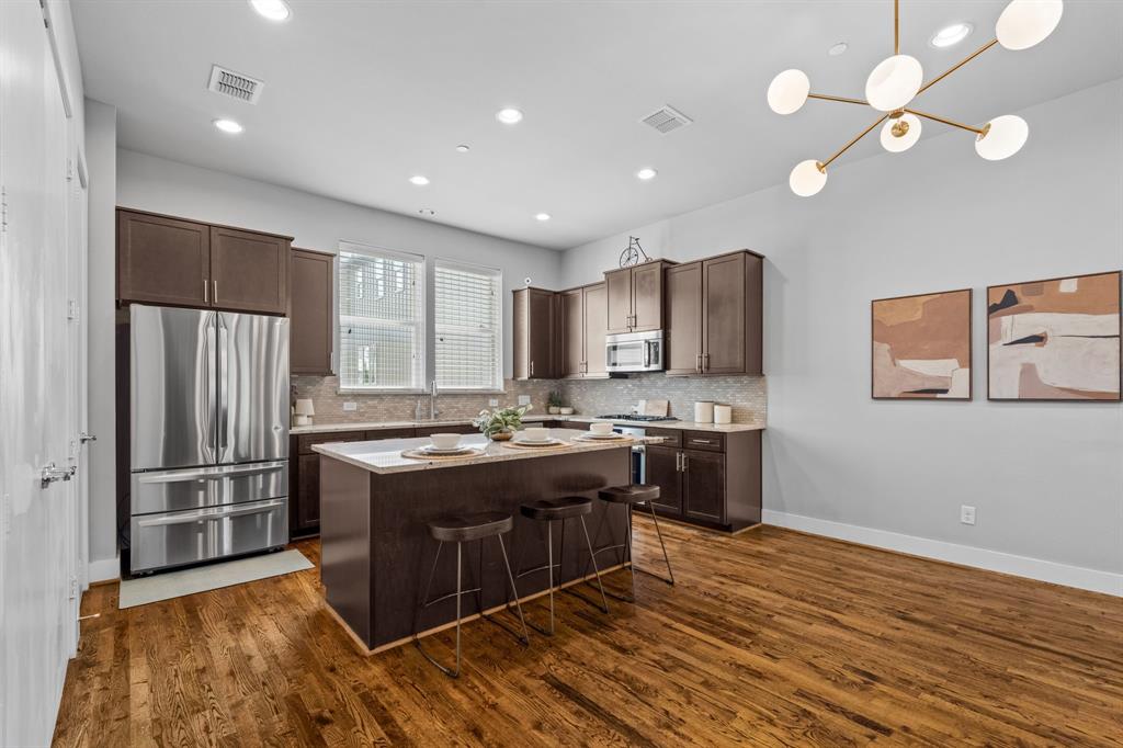This stunning tri-level corner unit offers the perfect blend of style, space, and privacy. The spacious open-concept layout is designed with entertaining in mind, featuring high ceilings, wood flooring throughout, and abundant natural light.The gourmet kitchen is a chef’s dream with a large center island, stainless steel appliances, and a gas cooktop. Each generously sized bedroom includes its own en-suite bathroom, offering maximum comfort and privacy for guests or family members. Retreat to the expansive primary suite featuring two oversized walk-in closets, a deep soaking tub, large walk-in shower, double vanity, and breathtaking views of the downtown skyline. Don’t miss this rare opportunity to own a move-in-ready, modern home in a prime location—schedule your tour today!