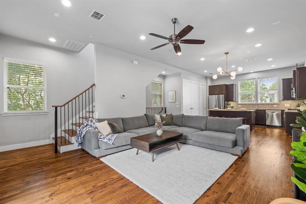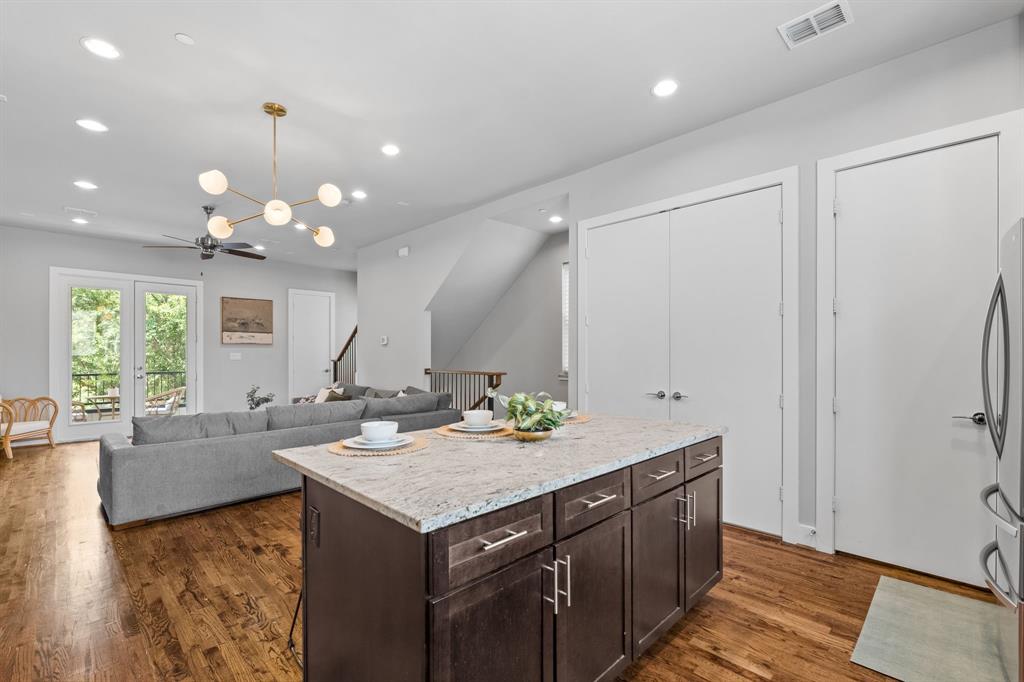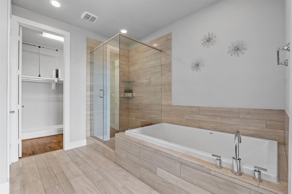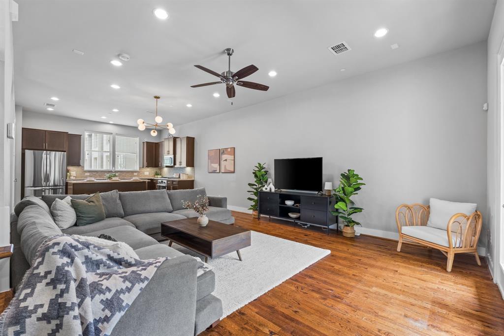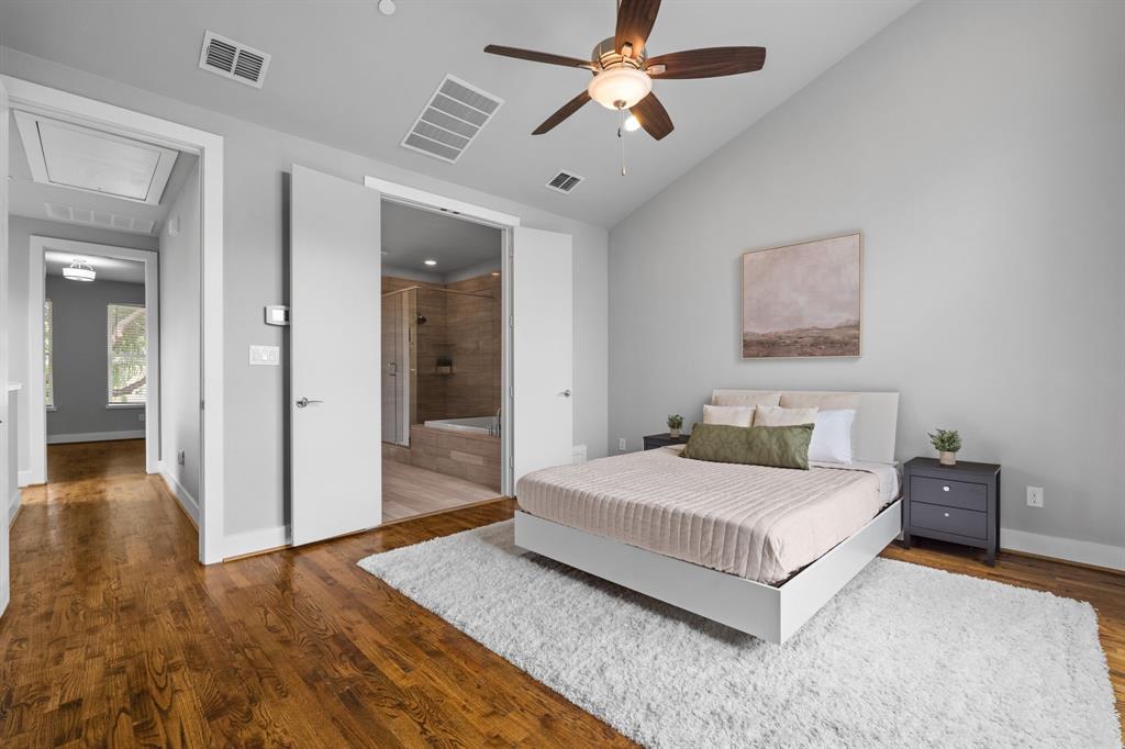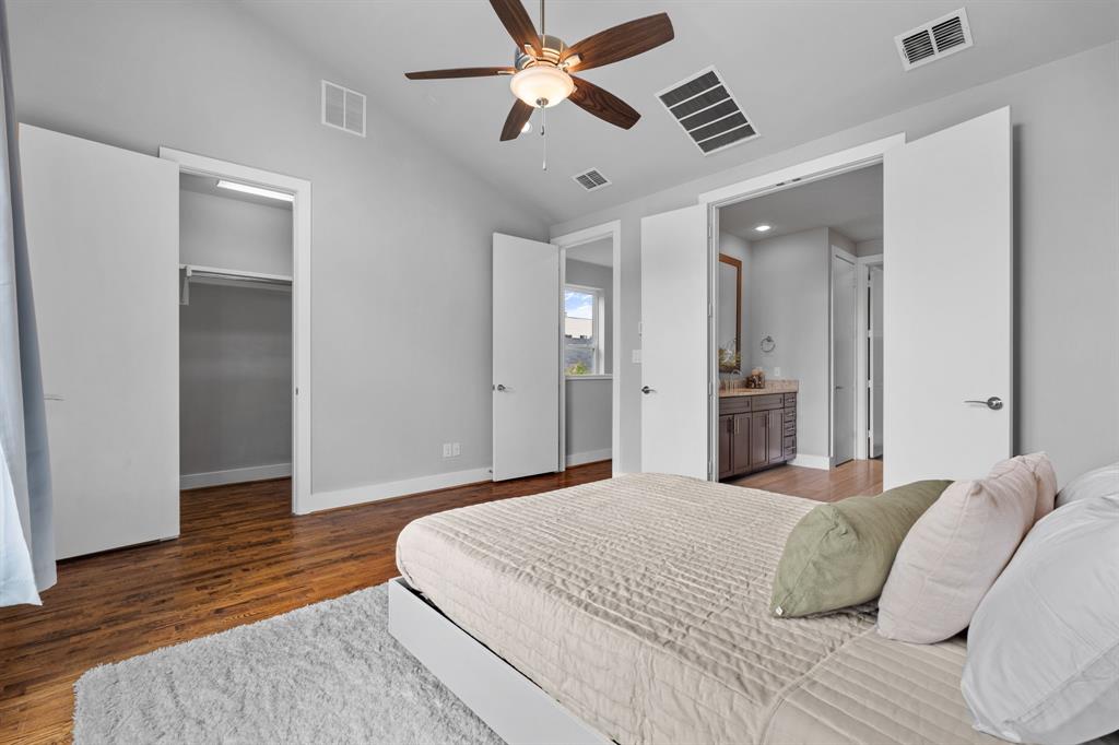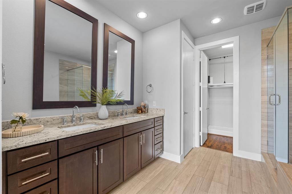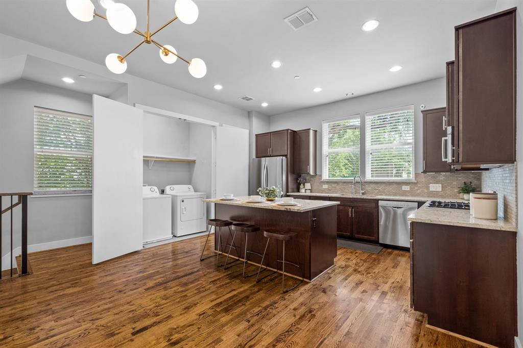 This stunning tri-level corner unit offers the perfect blend of style, space, and privacy. The spacious open-concept layout is designed with entertaining in mind, featuring high ceilings, wood flooring throughout, and abundant natural light.The gourmet kitchen is a chef’s dream with a large center island, stainless steel appliances, and a gas cooktop. Each generously sized bedroom includes its own en-suite bathroom, offering maximum comfort and privacy for guests or family members. Retreat to the expansive primary suite featuring two oversized walk-in closets, a deep soaking tub, large walk-in shower, double vanity, and breathtaking views of the downtown skyline. Don’t miss this rare opportunity to own a move-in-ready, modern home in a prime location—schedule your tour today!