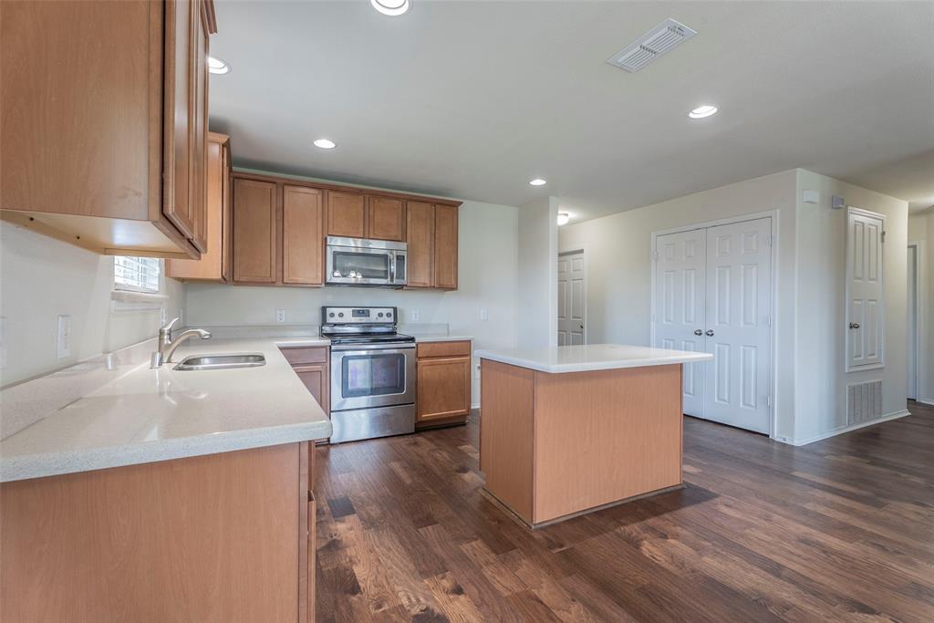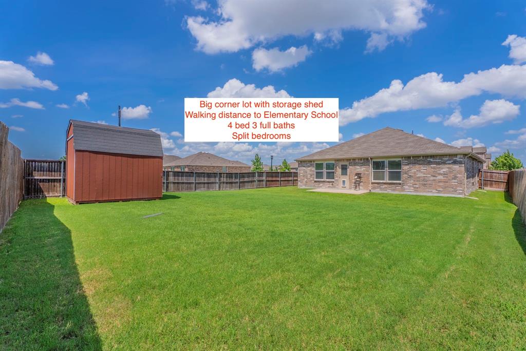 Discover this lovely home on a desirable corner lot, offering 4 beds and 3 full baths. Step inside to an open floorplan featuring beautiful updated luxury Vinyl Plank flooring and updated ceiling fans in all rooms. The kitchen boasts a functional Kitchen Island and sleek Stainless Steel appliances. Enjoy privacy with split bedrooms and a master bath featuring a double vanity and separate shower. Practical features include gutters, R30 insulation, 2 inch blinds, and a concrete patio. The big backyard and side yard provide ample outdoor space, and the home is just walking distance to Elementary School.