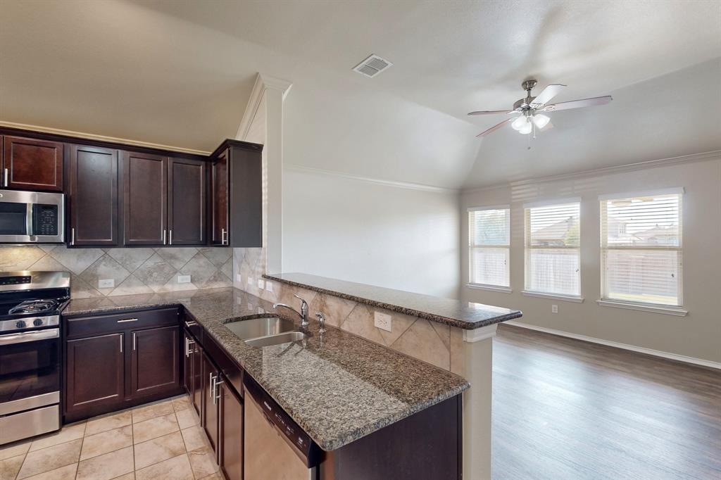 OWNER FINANCING AVAILABLE. You'll love this warm and inviting Lennar single-story property, nestled in the Sendera Ranch neighborhood. This 2016 home has been meticulously maintained, and has fresh paint and new floors which were just installed. This home boasts modern curb appeal with a brick façade and a modern entry, and an inviting open-concept layout with lots of natural light and windows. The eat-in kitchen boasts rich cabinetry, granite countertops, all-stainless-steel appliances, and a comfortable breakfast area. A great floorplan allows you to retreat to the tucked-away bedrooms and the privacy of your primary suite. The master bath features granite countertops, dual sinks, tub, and modern shower. Outside, the back covered patio overlooks a spacious backyard, perfect for creating your own outdoor oasis. Enjoy neighborhood amenities such as 3 pools, playgrounds, multiple walking trails, and sports facilities! Come make this beautiful house your home!