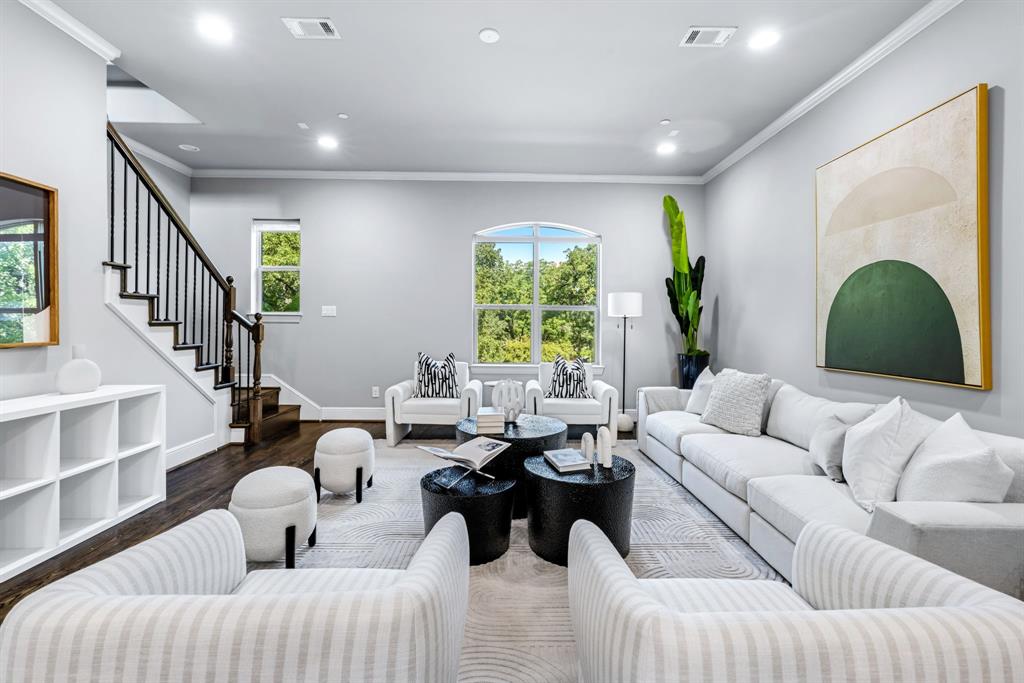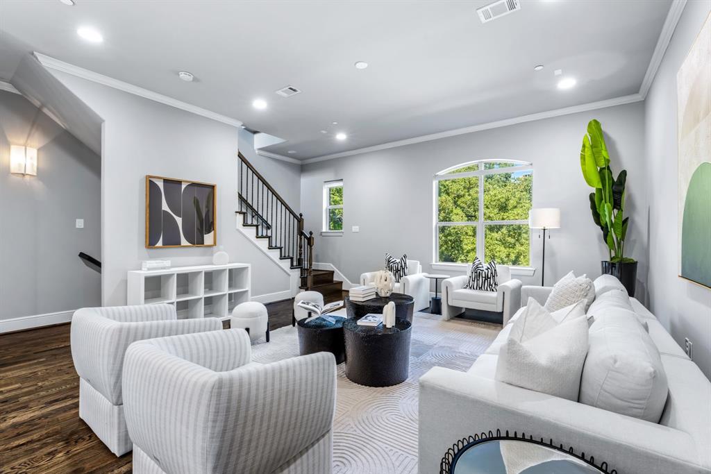 Welcome to 3225 Hugo Place, a 4 Story Brownstone beauty with rooftop in the heart of Dallas’ State Thomas. Open main floor living area & kitchen with granite countertops, stainless steel appliances & hardwood floors. Large 3rd floor master suite with dual vanity, garden tub & large walk-in closet. Unobstructed skyline views from the 4th floor second bedroom & rooftop patio with both covered & exposed outdoor living. Don't miss the bonus office with murphy bed perfect guests or Peloton -yoga. With a walkscore of nearly 90, this State Thomas Stunner is walkable to Dallas' top restaurants, retail and nightlife. Welcome home!