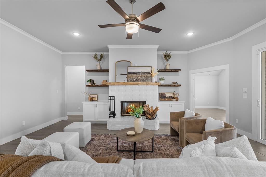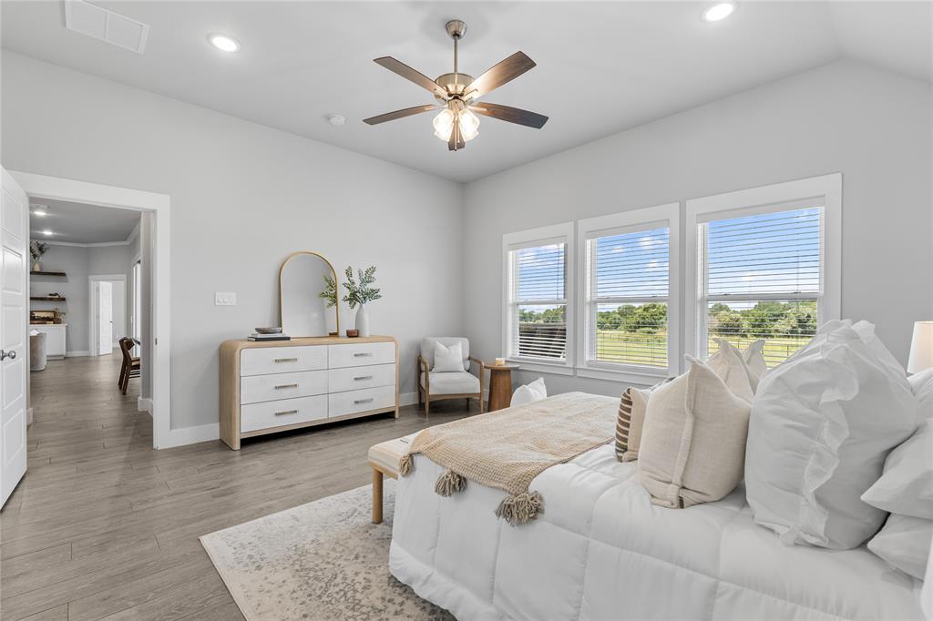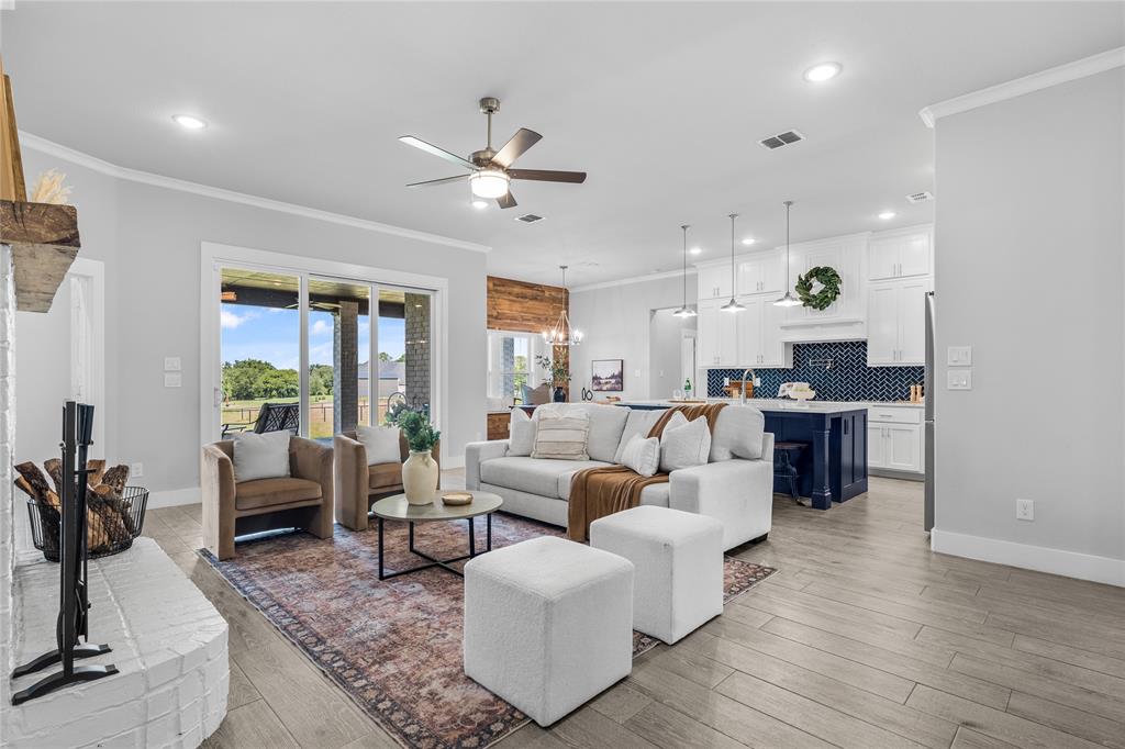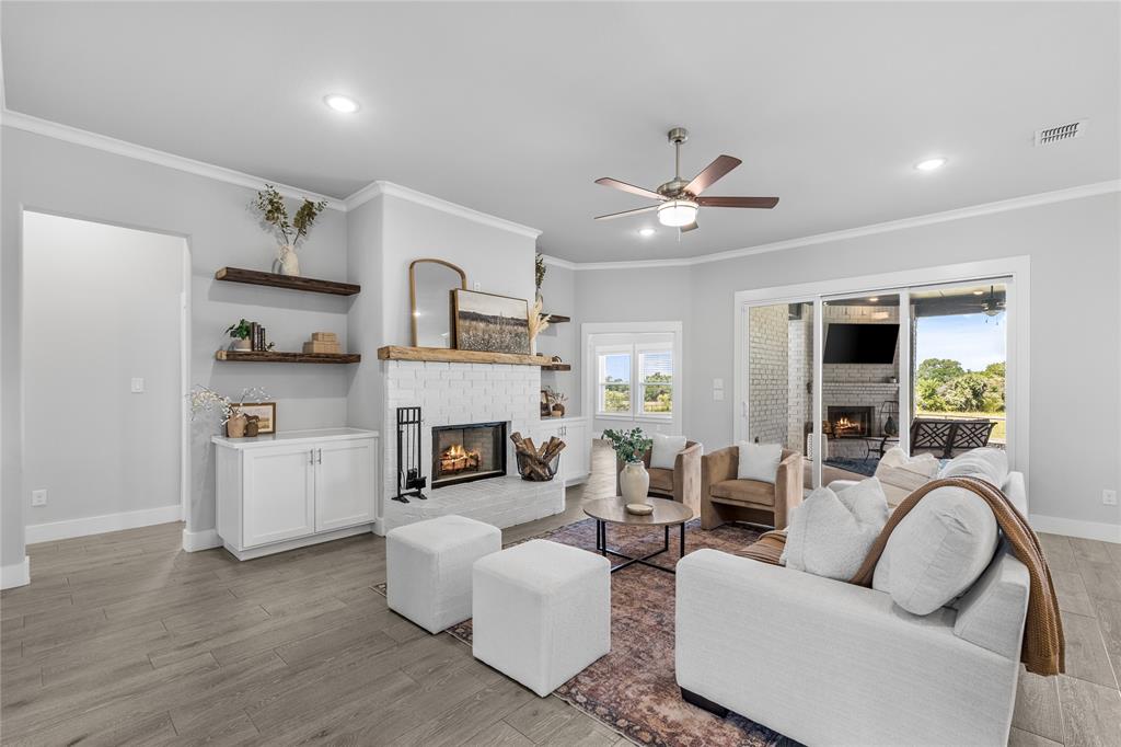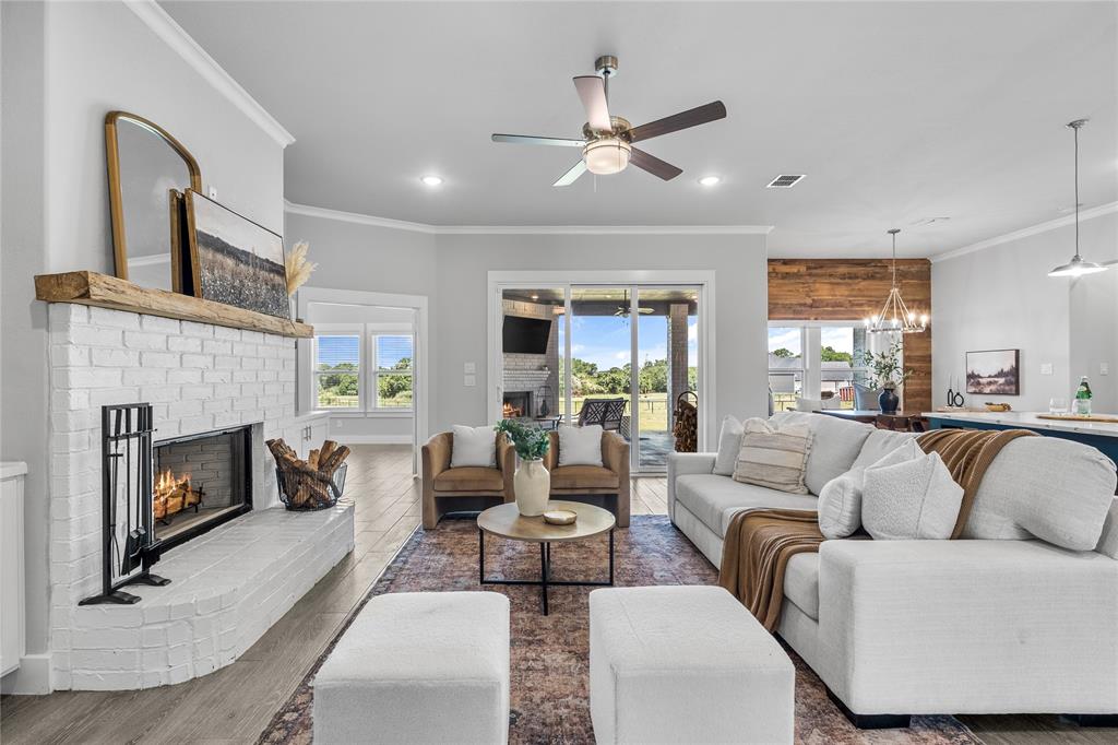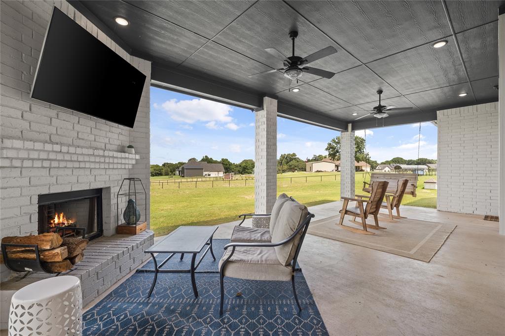 The spacious layout offers a private primary suite with spa-like bath, dedicated office (or optional 4th bedroom), and a versatile game room. Outdoors, enjoy mornings on the covered porch overlooking the pasture, or gather around the brick fireplace with TV hookup for cozy evenings.