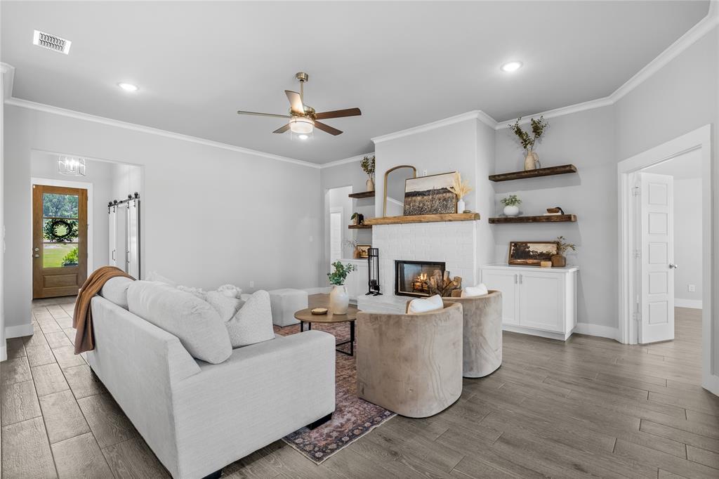 Nestled on 2.06 acres in a quiet wooded community, this stunning home blends modern design with rustic charm. Inside, you’ll find an open-concept floor plan filled with natural light, custom finishes, and a show-stopping island kitchen with floor-to-ceiling cabinetry, reclaimed wood accents, and designer details throughout.