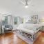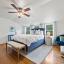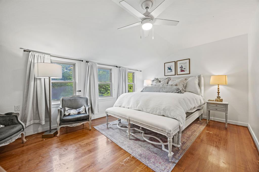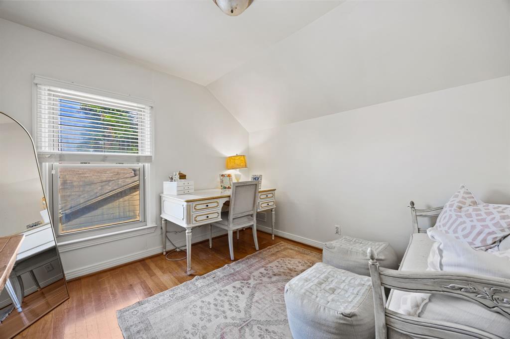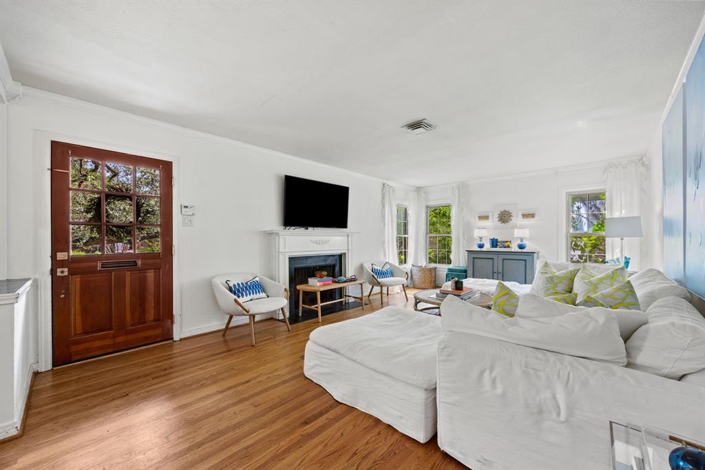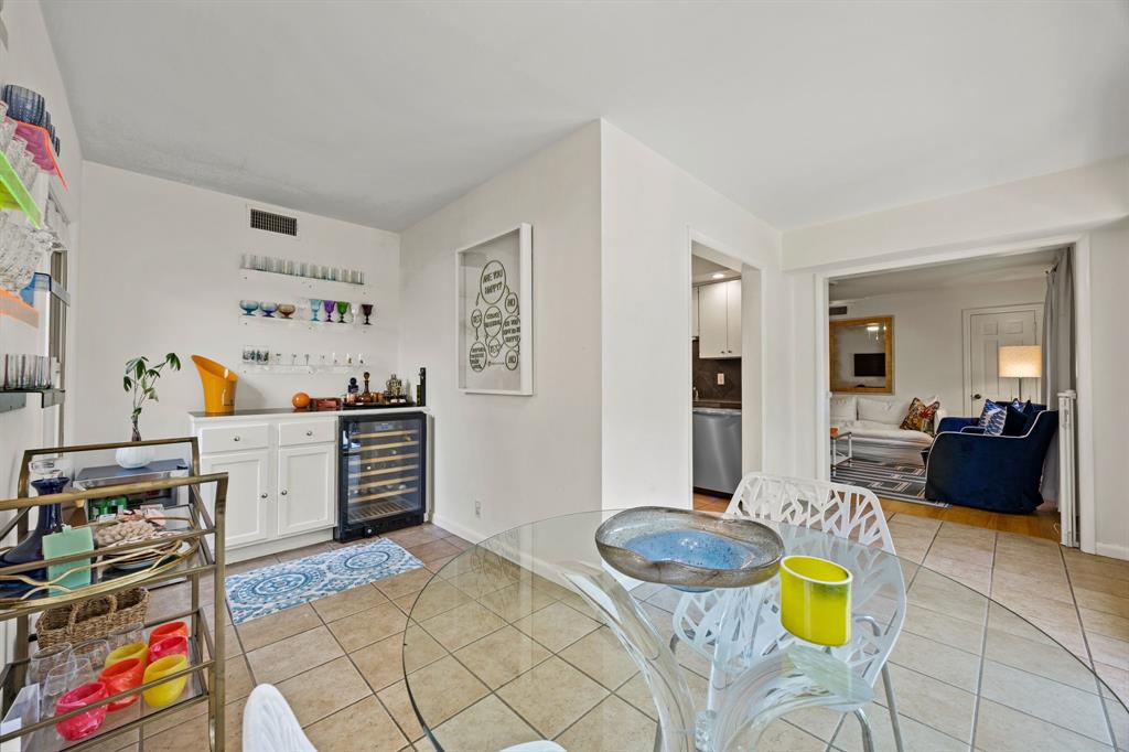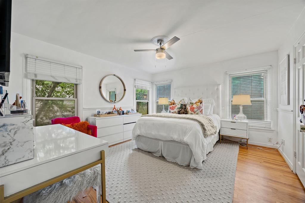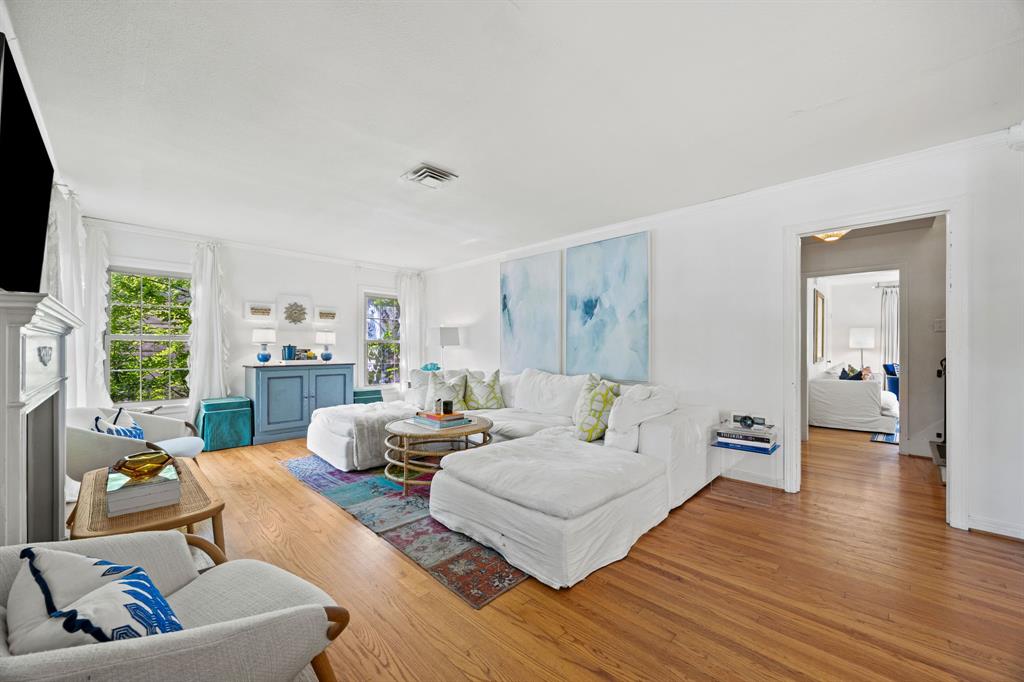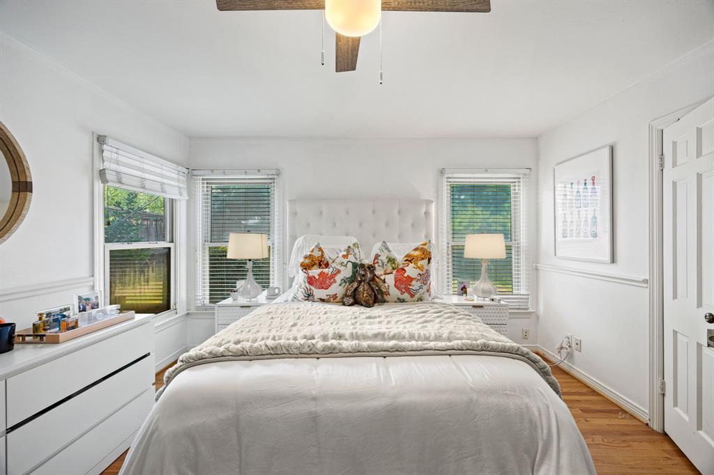 Inside, you’ll find original hardwood floors, two spacious living areas, a galley kitchen, and a bonus flex room with built-in bar and wine fridge. The functional layout includes one bedroom downstairs and three bedrooms upstairs, with one perfectly suited for a home office or nursery. An attached 1-car garage adds everyday convenience and additional storage.