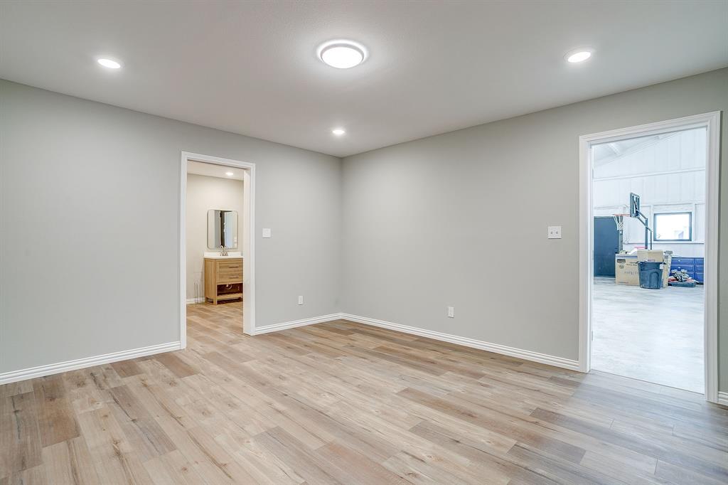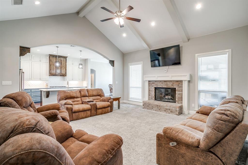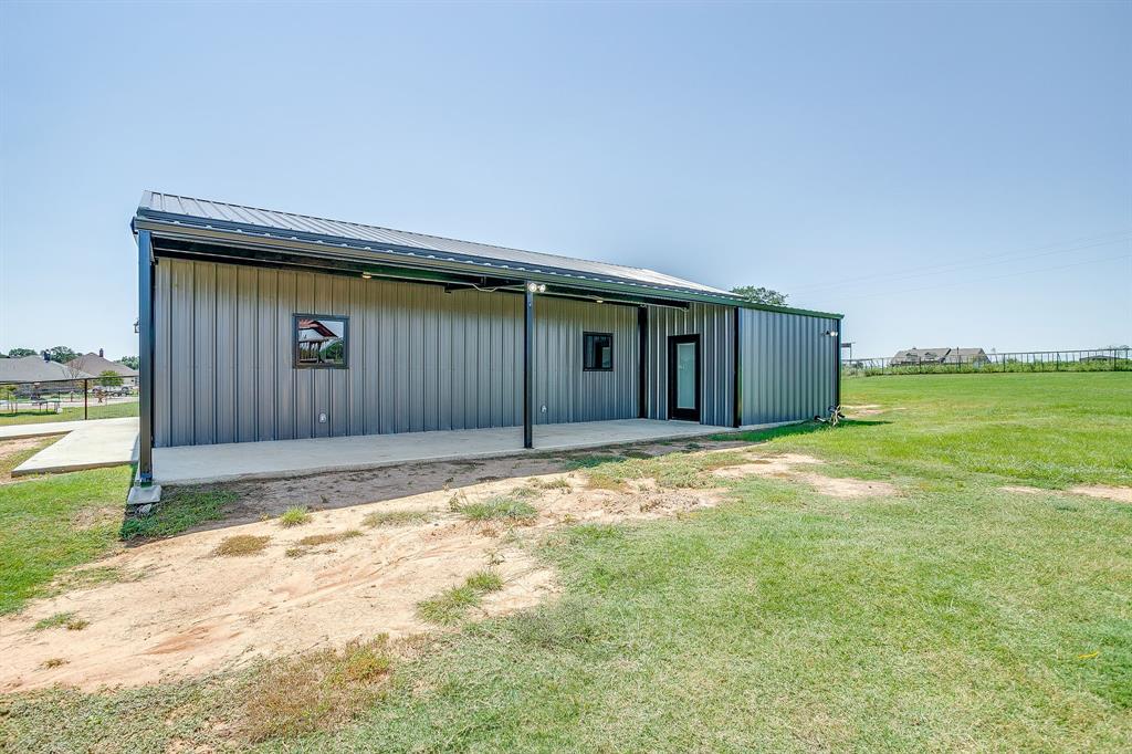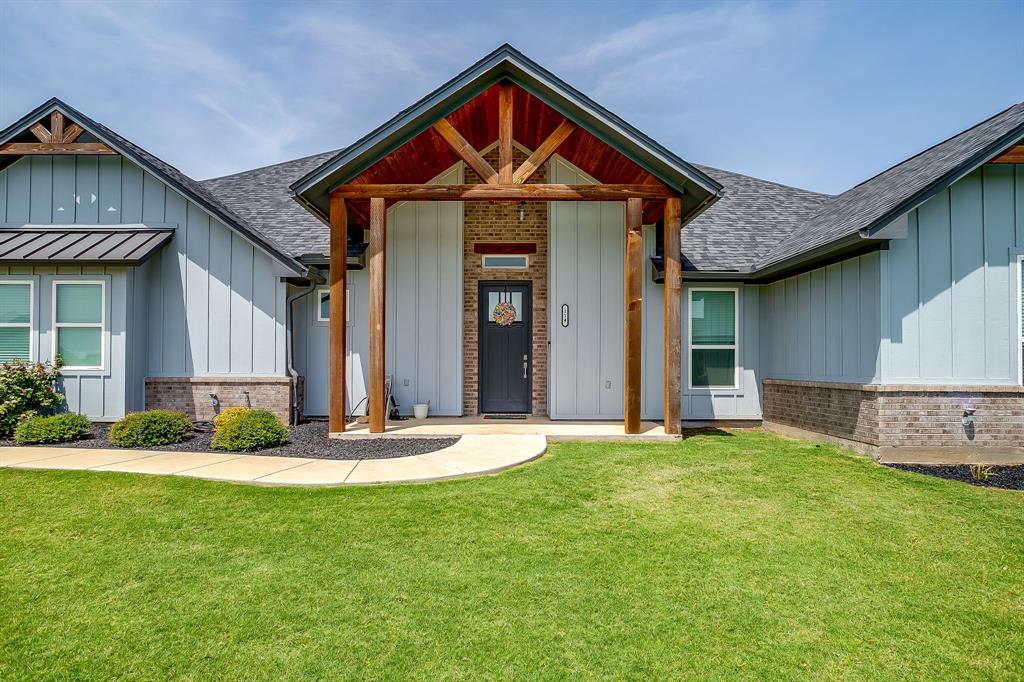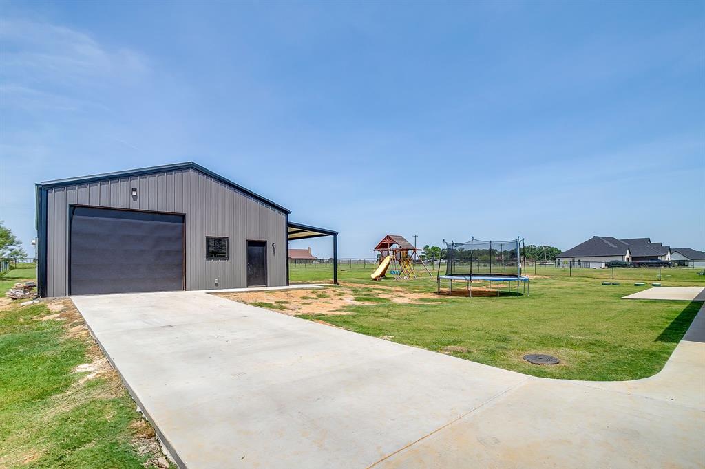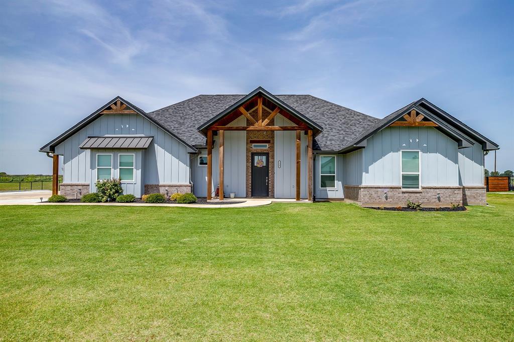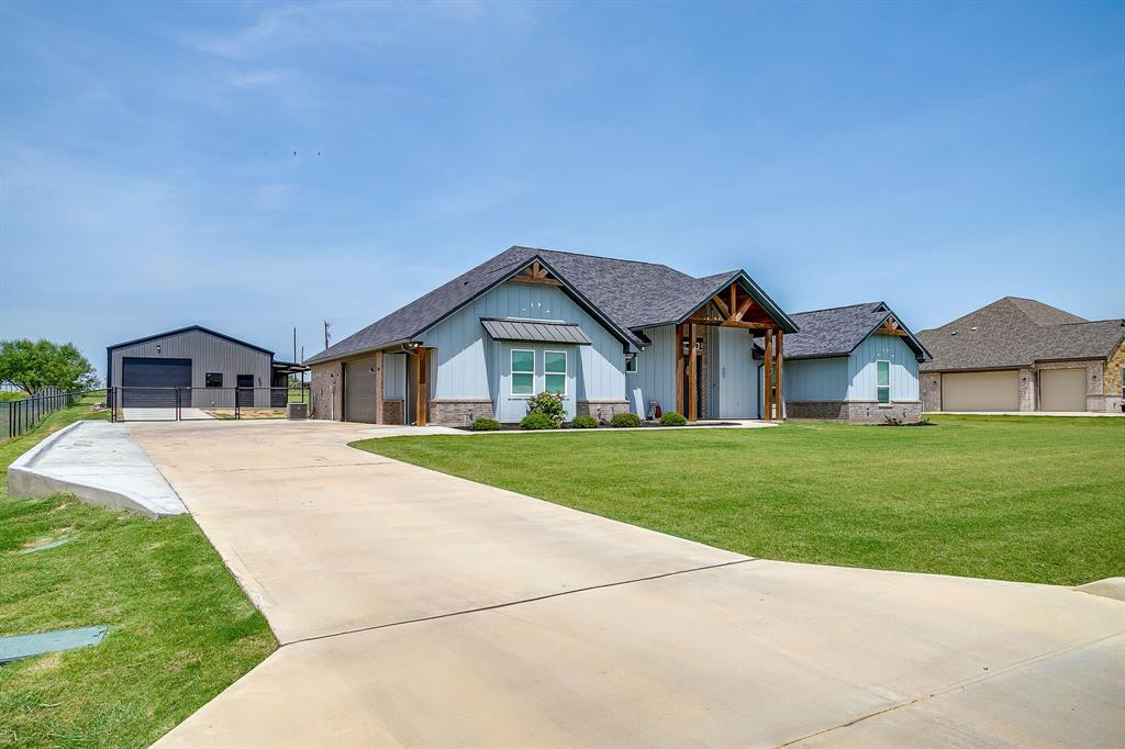 FANTASTIC farmhouse-style home on a 1-acre lot in a quiet, well-kept neighborhood just minutes from Brock ISD top-rated schools. MAJOR improvements such as a shop, additional dwelling unit, fencing and additional concrete! Inside, you'll find a warm and inviting layout with plenty of natural light and a cozy farmhouse feel that makes you feel right at home. The living room has vaulted ceilings, a wood burning fireplace with a gas starter option. It is open to the spacious kitchen with features including custom cabinetry to the ceiling, color splashed accents, quartz countertops with designer backsplash and a large kitchen island with room for barstools. Enjoy a split floorplan between the primary bedroom, secondary rooms and 5th bedroom, which could be a game room, playroom or creative flex space. Two of the secondary bedrooms share a jack and jill bathroom with their own vanity. When you step outside, a 30x50 fully insulated shop comes complete with its own living quarters, including a bedroom, bathroom and space for kitchenette—perfect for guests, home business, or ultimate hobby space. Bedroom and bathroom is currently being finished and will be prior to closing. Extra poured concrete gives you tons of room for parking. The entire backyard is fully fenced and plenty of space for a pool or outdoor play area. Whether you’re looking for space to spread out, room to work from home, or a place to enjoy country living with convenience, this property has it all! Schedule a showing now!
