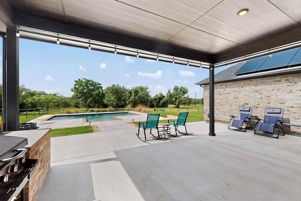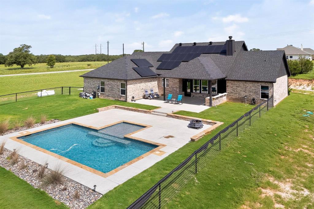 Enjoy the beauty of the outdoors in a sport pool with lounging area, outdoor cooking station, and partial irrigation system that keeps a portion of your 3-acre property lush and green. For those seeking energy efficiency, this home is equipped with solar panels, its own water well and water filtration system , ensuring sustainability while lowering utility costs. If you enjoy gardening there is is an abundance of space waiting for you to add your special touch.