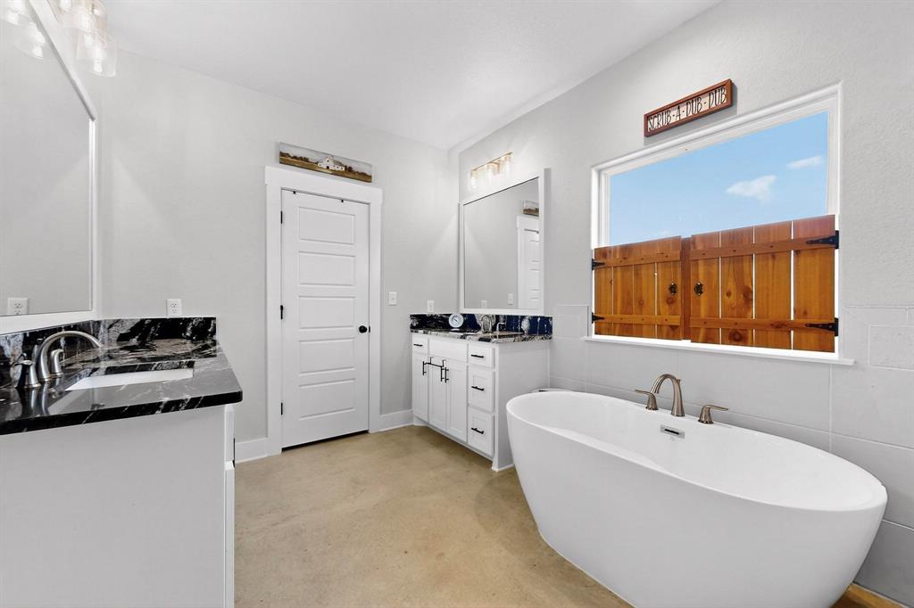 The primary suite is a true retreat, offering two walk-in closets, a luxurious garden tub, and a separate shower for ultimate relaxation. The bedrooms are split and each room offers ample space and natural light, making every corner of this home feel airy and inviting.