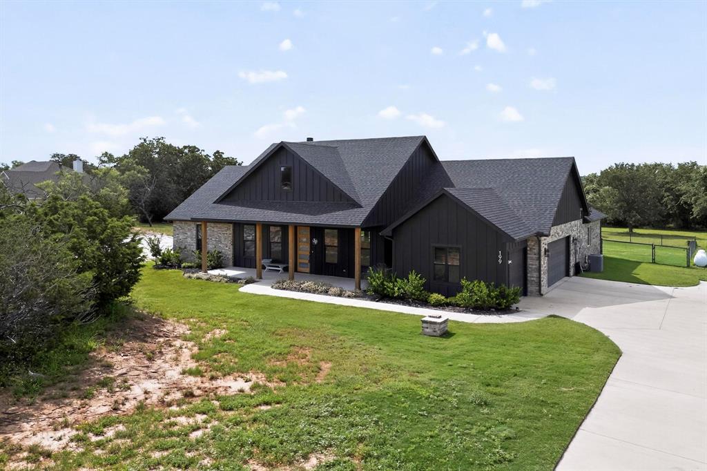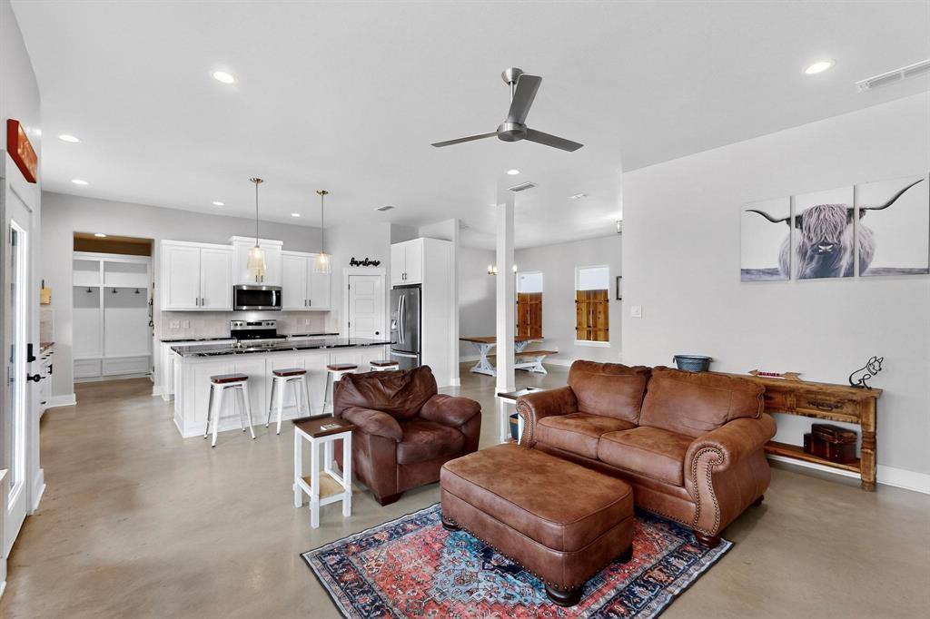 Additional highlights include a 3-car garage, a mudroom, and stunning stained concrete flooring throughout, adding a touch of industrial elegance to the farmhouse charm. The home is perfectly designed for those who value both modern luxury and the tranquility of country living.