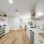 Iinside this welcoming home, you'll be greeted by light-filled interiors courtesy of new energy-efficient windows. The main living area seamlessly blends into the large kitchen featuring custom cabinets, a spacious island for easy meal prep and entertaining, and high-end stainless steel appliances. The quartz countertops add a touch of elegance while the white oak luxury vinyl floors lend warmth and sophistication throughout.