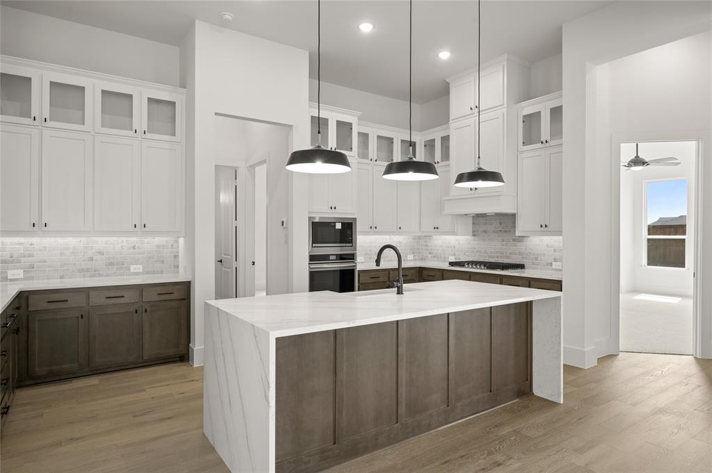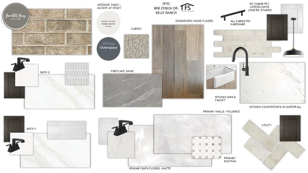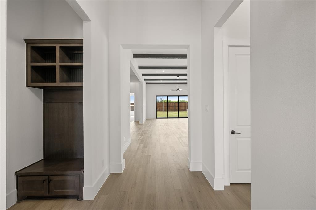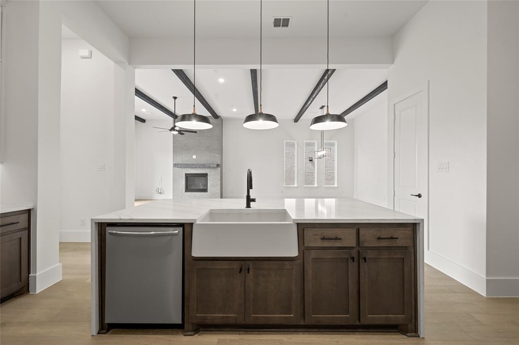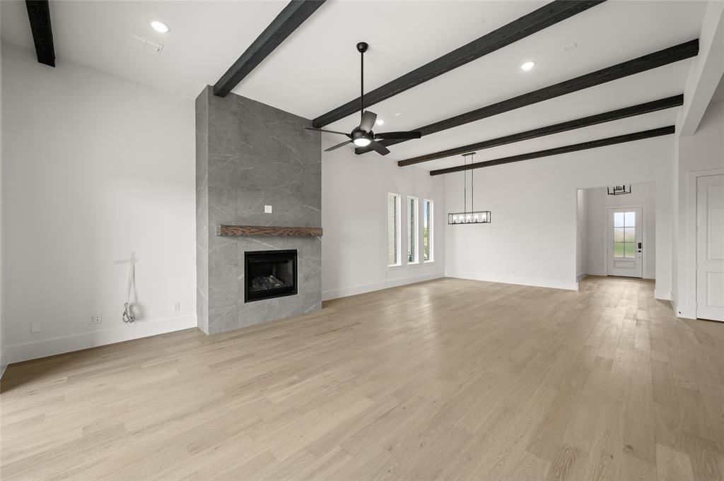 MLS# 21005274 - Built by Sandlin Homes - Ready Now! ~ Our Augusta plan with 4 bedrooms, 3 bathrooms, a study, beamed ceilings in the living area, built ins in the living room, bay windows in the owner's bedroom and a covered patio with outdoor grill. This home is designed with 3cm quartz counters, stained cabinets and white cabinets at the kitchen uppers, oven tower and owners bathroom, extended upper cabinets with glass, wood hood vent, black trim windows, upgraded carpet, tile, and engineered hardwood flooring, matte black fixtures, and a tiled fireplace.