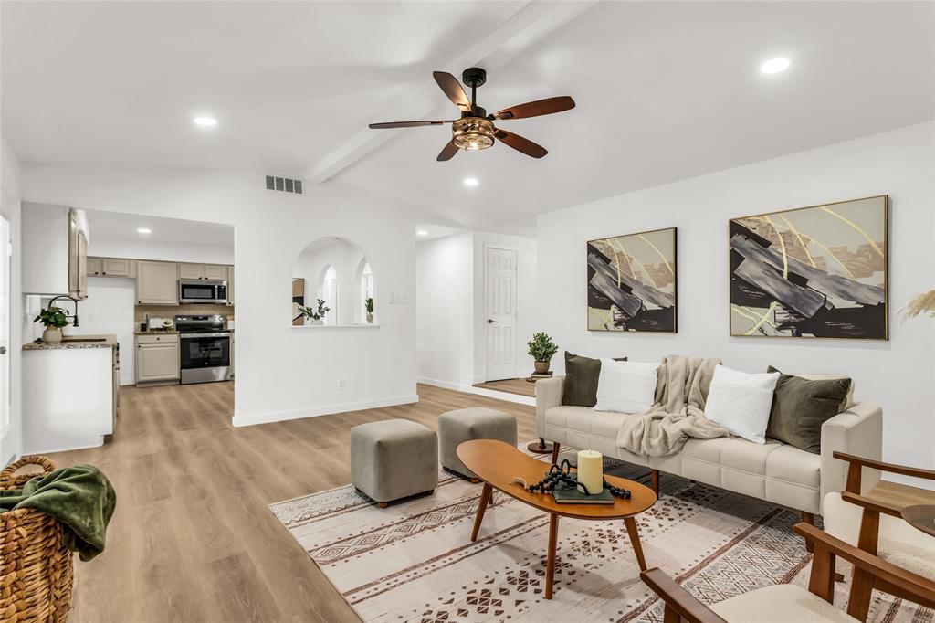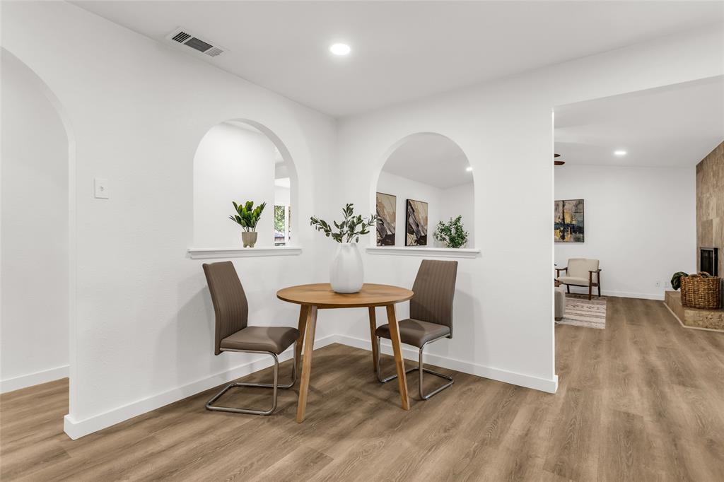 Welcome to 1390 Dogwood Trail—a beautifully updated 3-bedroom, 2-bath, single-story home nestled in the charming Lewisville Valley subdivision. Boasting approximately 1,544?sqft of comfortable living space on a generous ~7,840?sq?ft lot, this residence offers a perfect blend of modern amenities and classic appeal. Step inside to discover an open, light-filled layout enhanced by neutral finishes and tasteful updates throughout. The eat-in kitchen is elegantly appointed with granite countertops, sleek stainless steel appliances, and decorative backsplash that adds subtle sophistication and warmth. The living room centers around a stone-trimmed fireplace—ideal for cozy evenings. Each of the three bedrooms provides ample closet space, while both bathrooms showcase updated cabinetry, stone countertops, and refinished flooring—designer-level touches that pop. Interior upgrades include LVP flooring, updated light fixtures and hardware, and fresh paint inside and out. Outdoors, the spacious backyard is perfect for both relaxation and entertaining, featuring mature trees and an 8-person storm shelter-great for peace of mind. Quality upgrades in place and a strategic location—close to schools, shopping, and major thoroughfares—it’s ready for you to move in and start enjoying. Whether you’re relaxing by the fireplace, whipping up a meal in the updated kitchen, or enjoying the private backyard, 1390 Dogwood Trail delivers comfort, style, and value in one turnkey package.