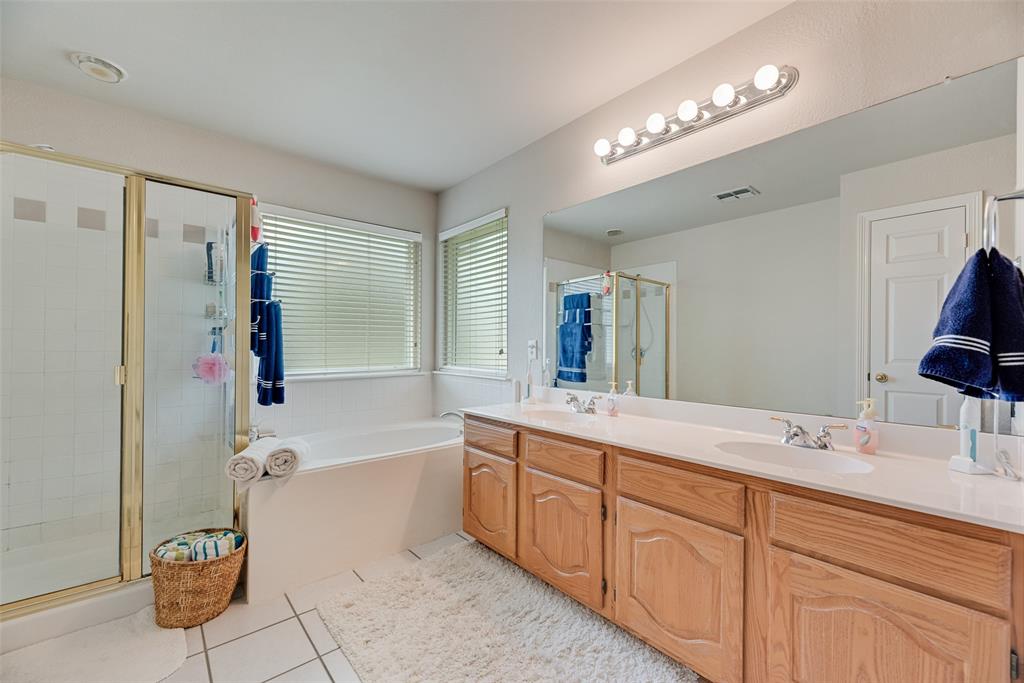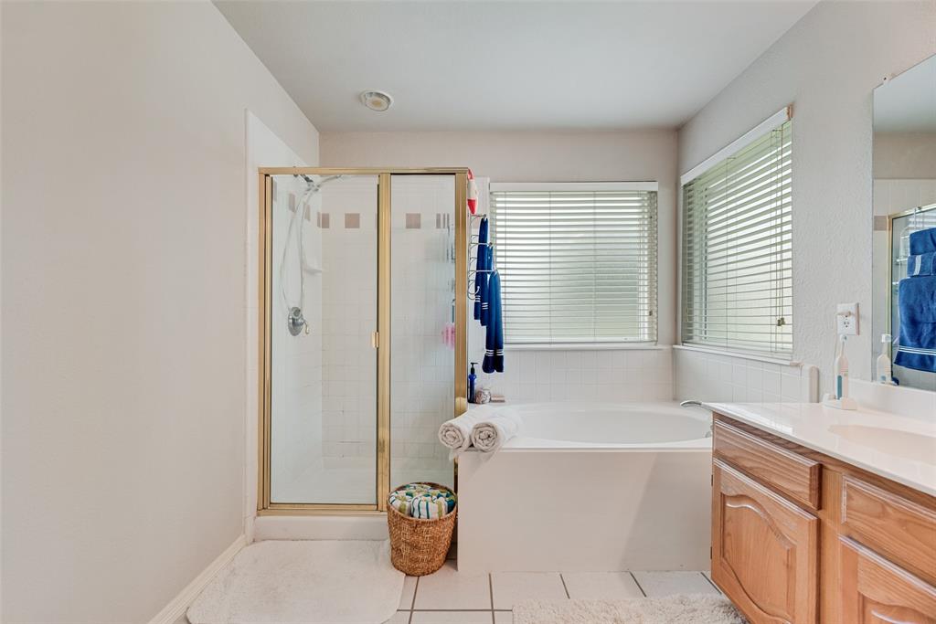 1 STORY and 4 BEDROOMS in PARK GLEN... steps away from greenbelt and Arcadia Trail Park #2 including tennis courts, softball field, sand volleyball court, and more! This gently lived in and much loved home has brand new windows throughout and brand new extra wide gutters. You will enjoy the large living space that is open to the kitchen which includes an island, stainless appliances, built in desk and tons of cabinets. The secluded primary bedroom suite welcomes you with a grand entry of double doors, vaulted ceiling, a bath with stand alone shower and tub, dual sinks with long vanity countertop and spacious closet. Great floorplan allows for three secondary bedroom, all with nice sized closets and ceiling fans and guest bathroom with dual sinks and shower tub combo. The formal dining space is positioned steps from the kitchen w ample space for your table while the formal living is spacious and could easily be utilized as an office space. The laundry room is nicely sized and has a sink. Step onto the covered back patio and into the backyard, generously sized to allow for swingset or pool. This is priced well and in one of the most loved areas of Park Glen! Keller ISD and award winning Park Glen elementary. Refrigerator, washer and dryer to convey with full price offer.