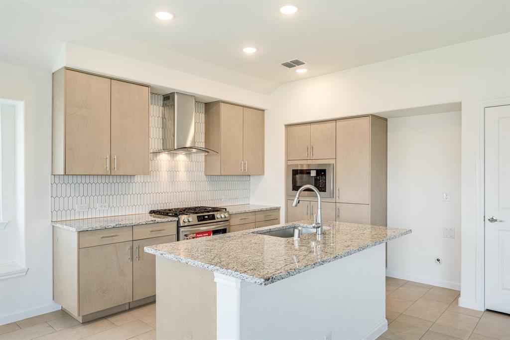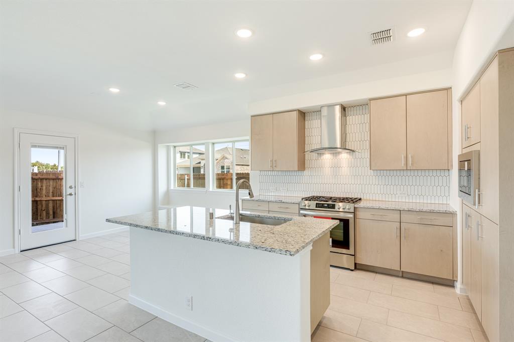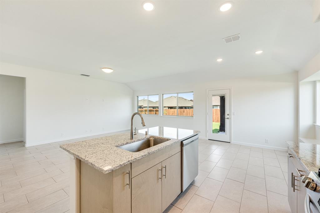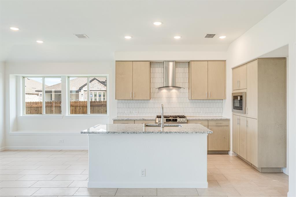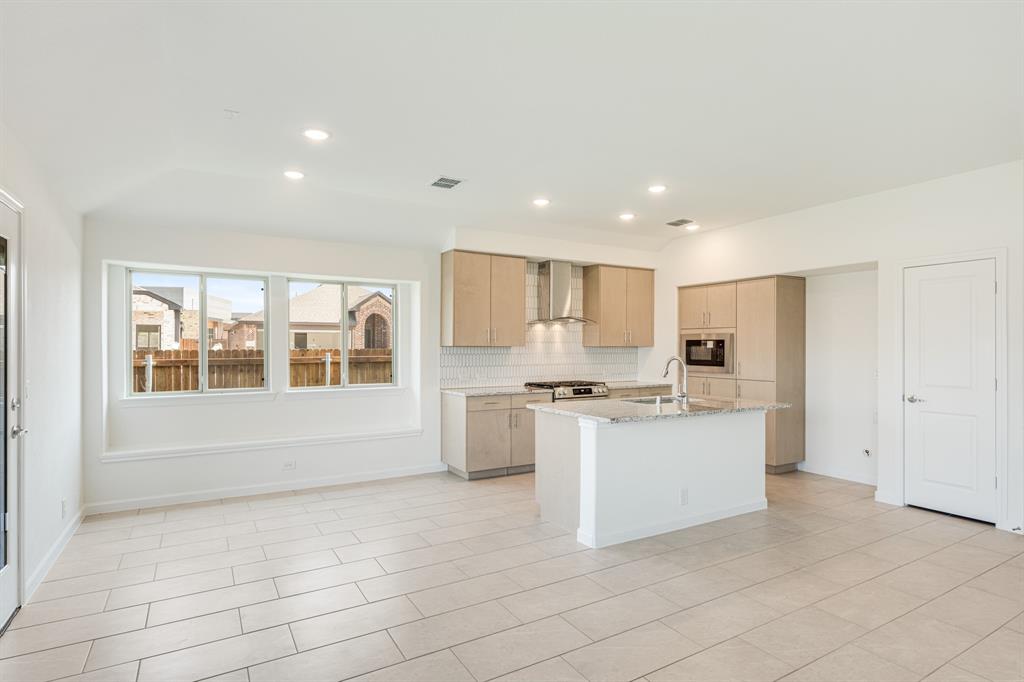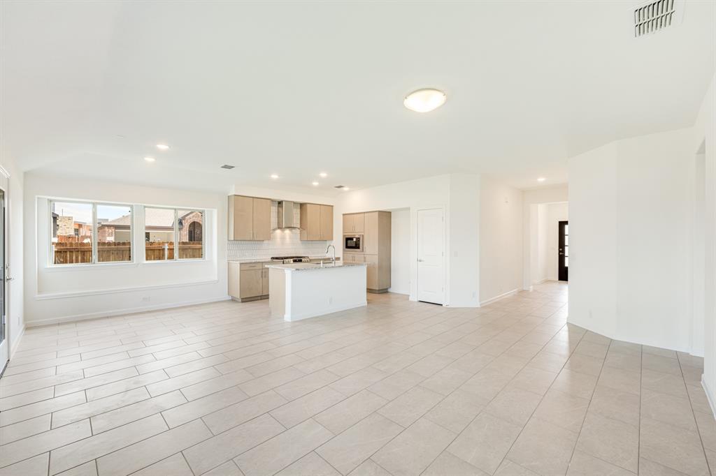 *Free Fridge AND Blinds PLUS $10K towards closing costs regardless of lender! MUST CLOSE BY SEPTEMBER 30th!* NEW! NEVER LIVED IN. Step into the effortlessly stylish Laurel plan by Bloomfield Homes—an inviting single-story layout offering 3 spacious bedrooms, 2 full bathrooms, and a bright open-concept living area designed for modern lifestyles. From the moment you arrive, the brick and stone façade, iron and glass front door, and manicured lawn set a polished tone. Inside, you'll find 12x24 porcelain wood-look tile flooring that flows seamlessly through the main areas, balancing durability with upscale charm. The kitchen is the heart of this home—featuring granite countertops, sleek subway tile backsplash, stainless steel appliances, and a generous center island with bar seating. Light-tone shaker-style cabinetry and under-cabinet lighting add warmth. The open layout connects the kitchen to the dining and living spaces, creating an expansive feel ideal for hosting or relaxing. Tech-savvy touches include pre-mounted flat-screen wiring in both the living area and primary suite, ensuring clutter-free wall displays. The primary suite is tucked away for privacy, a peaceful retreat with views of the backyard. The ensuite bath boasts upgraded tilework, a soaking tub, separate shower, and a massive walk-in closet with convenient access to the laundry room. Secondary bedrooms are thoughtfully placed at the front of the home, creating a true split-bedroom design perfect for guests or a home office setup. Enjoy shaded evenings on the covered back patio and benefit from the corner lot placement, offering extra yard space and enhanced curb presence. The home also includes full gutters, smart layout planning, and energy-efficient features throughout. Located in the master-planned Grand Heritage community, this home blends style, practicality, and community amenities for a complete lifestyle package.