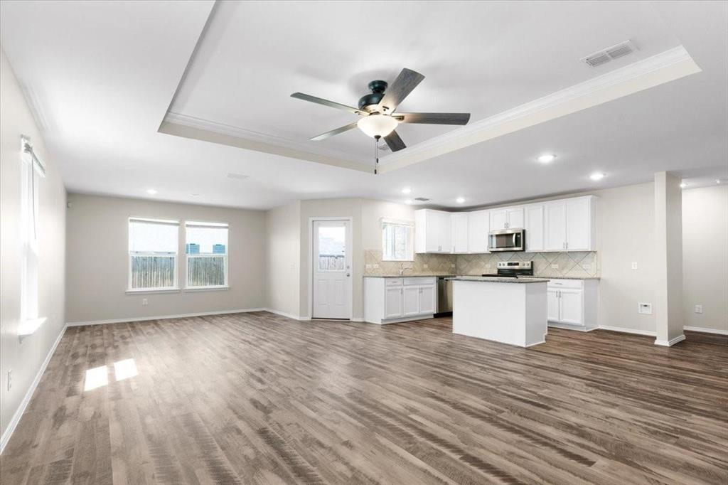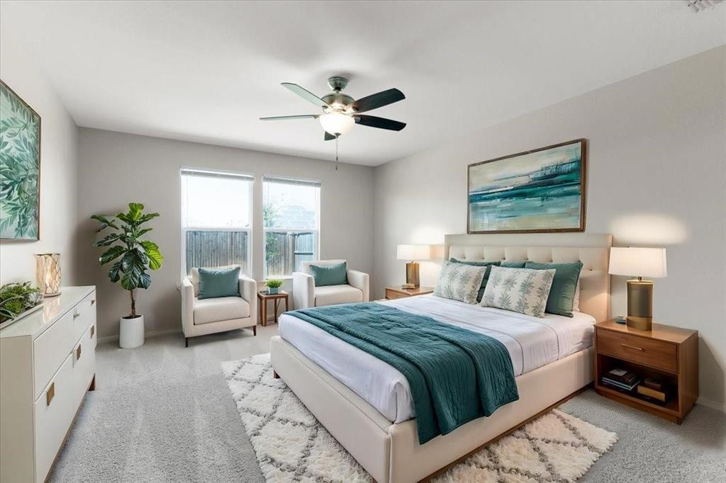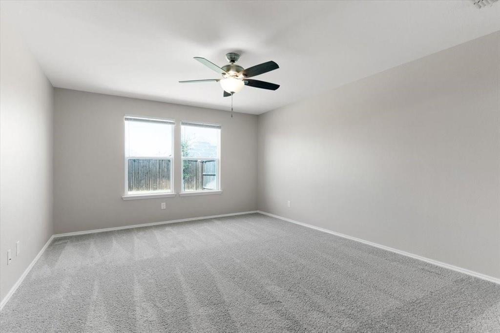 You'll love the flexibility of the dedicated room with french doors that can be used as an additional bedroom, home office, reading room, or play area. The home also includes a walk-in pantry, separate utility room, hall linen closet, and thoughtful design touches like luxury vinyl plank flooring and a tray ceiling in the living area that adds an elevated feel. Step outside to your backyard patio, the perfect place to enjoy your morning coffee or unwind in the evenings.