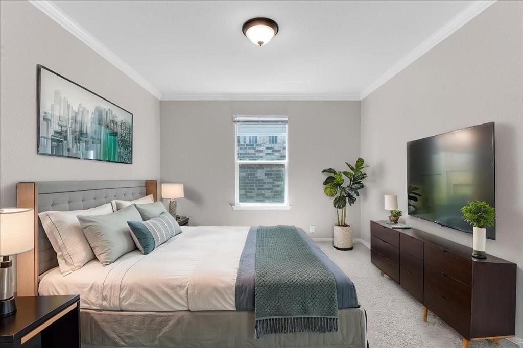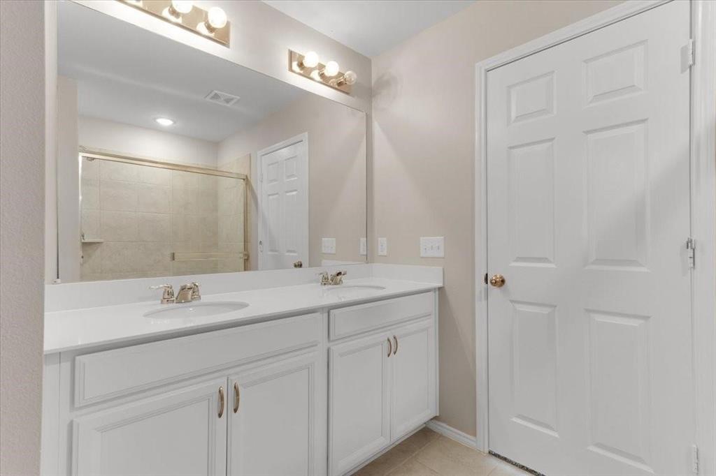 The private primary suite is thoughtfully placed at the rear of the home for added seclusion and features a double-sink vanity, oversized shower, and a generous walk-in closet.