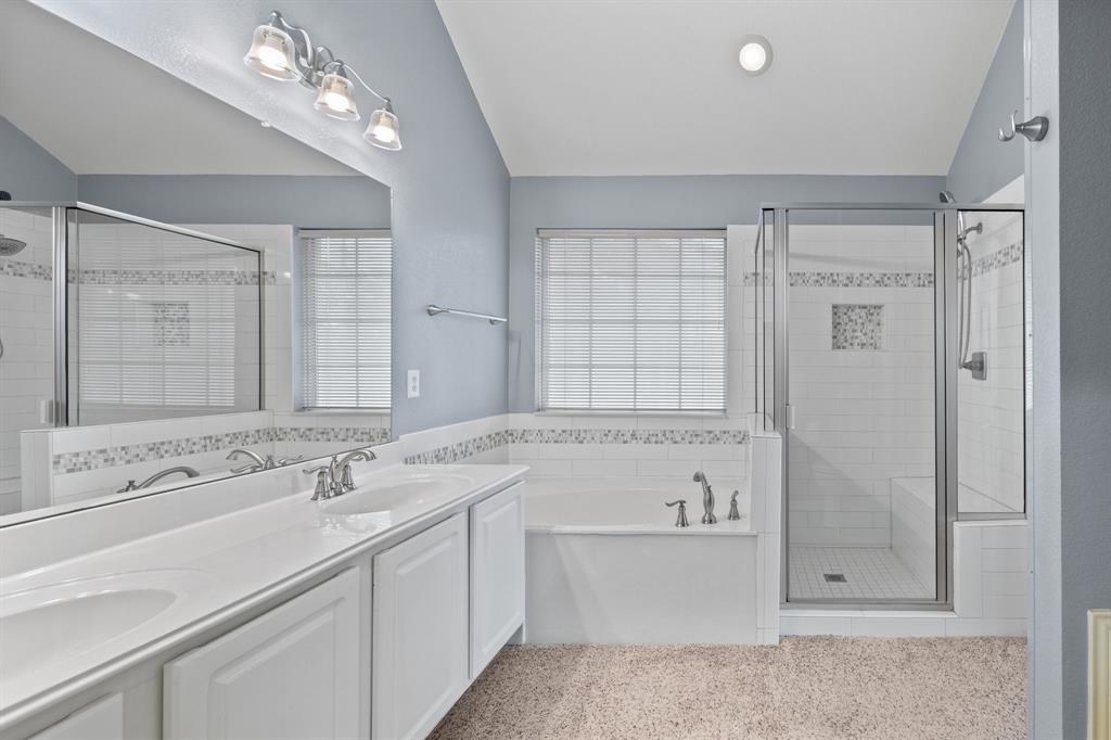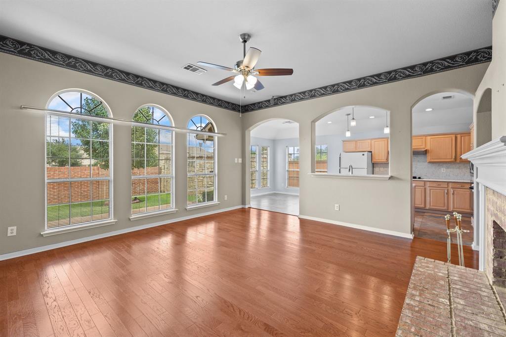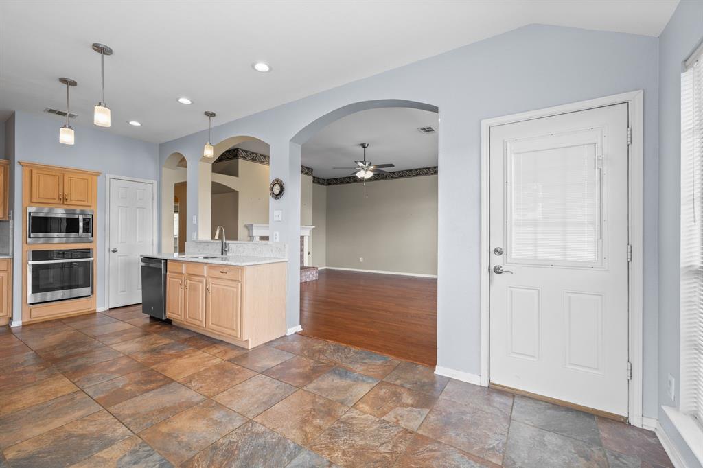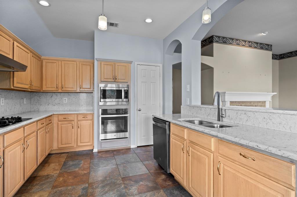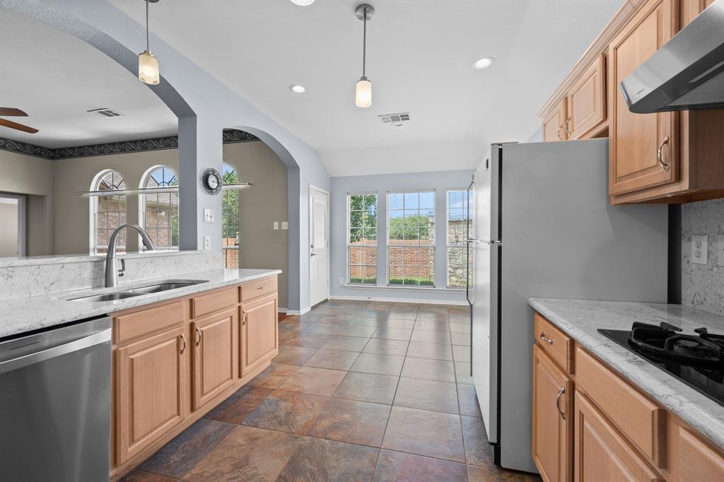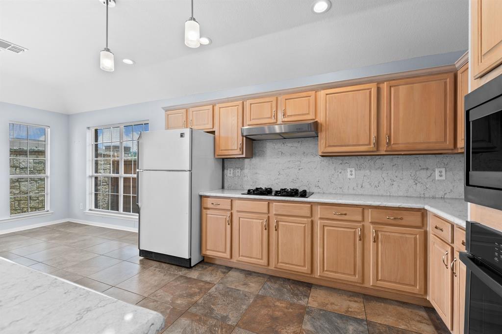 Welcome to a home where memories are waiting to be made—nestled in the heart of one of Keller’s most beloved neighborhoods and within the highly acclaimed Keller ISD. This beautifully cared-for 4-bedroom, 2-bathroom home blends timeless charm with modern comfort, creating the perfect place for a family to grow, gather, and relax. From the moment you step inside, the warmth of the home embraces you. A grand, sunlit stacked living and dining space greets you at the entry, where elegant wainscoting adds a touch of classic sophistication. It's easy to imagine hosting holiday dinners or celebrating life’s little moments here. At the heart of the home, the kitchen opens up into a welcoming second living area, where conversations flow as easily as the layout. With quartz countertops, stainless steel appliances, and a raised breakfast bar, this kitchen was made for morning pancakes and evening chats alike. Nearby, a cozy breakfast nook invites you to slow down and enjoy the view of the beautifully landscaped backyard. The second living room, anchored by a charming gas log brick fireplace, offers the perfect place to unwind after a long day. Spacious primary suite is your private retreat, complete with a spa-like ensuite featuring a garden tub, separate shower, dual sinks and a generous walk-in closet. Three additional bedrooms—each with walk-in closets—provide comfort and versatility, whether you need room for kids, guests, or a dedicated home office. Step outside, and you’ll find a backyard designed for enjoyment with a large open patio and lush landscaping. Just beyond the yard, you will find direct access to jogging & biking trails plus there is a community pool to enjoy. Whether you're tossing a ball with the kids, enjoying a barbecue, or soaking up the morning sun, this outdoor space invites you to stay a little longer. Located just minutes from Hwy 377, top-rated schools, shops, and local dining favorites, this move-in ready home is more than just a place to live!