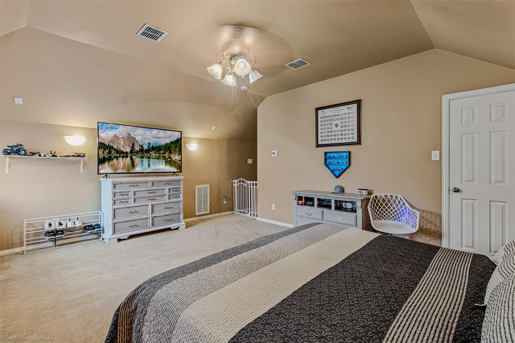 Upstairs, a large flex space with closet and full bath can serve as a fifth bedroom, game room, or home office—whatever suits your lifestyle. The 3-car garage includes a single bay with ducted AC, perfect for a gym or workshop.