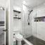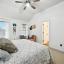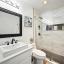Both bathrooms have been beautifully updated with modern tile showers, quartz countertops, and contemporary fixtures, with cohesive tile finishes throughout. The home features double-pane, energy-efficient windows throughout.