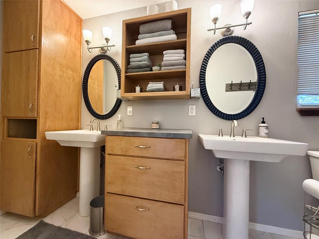 This home provides plenty of space for entertaining, with two living areas and two dining spaces. The second living area opens through French doors to a large flagstone patio—perfect for summer barbecues and outdoor gatherings. The private master suite offers views of the backyard and patio, creating a relaxing retreat.