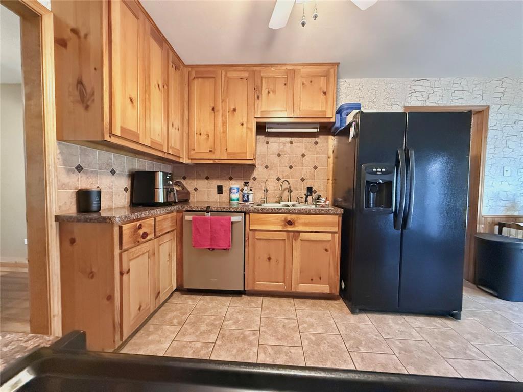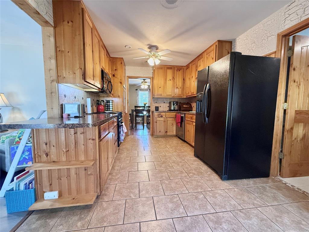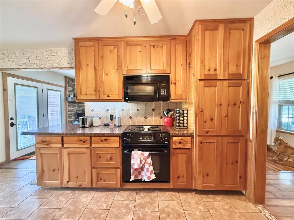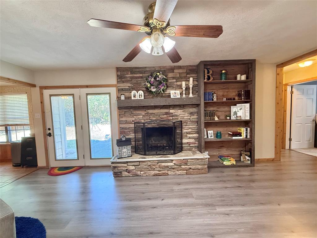 Inside, you'll find a welcoming and cozy atmosphere, highlighted by a beautiful stone wood-burning fireplace and built-in shelves that add character. Both bathrooms have been tastefully upgraded for modern comfort. The kitchen features custom knotty pine cabinets and easy access to a utility room with a pantry, making daily chores simple with great storage space!