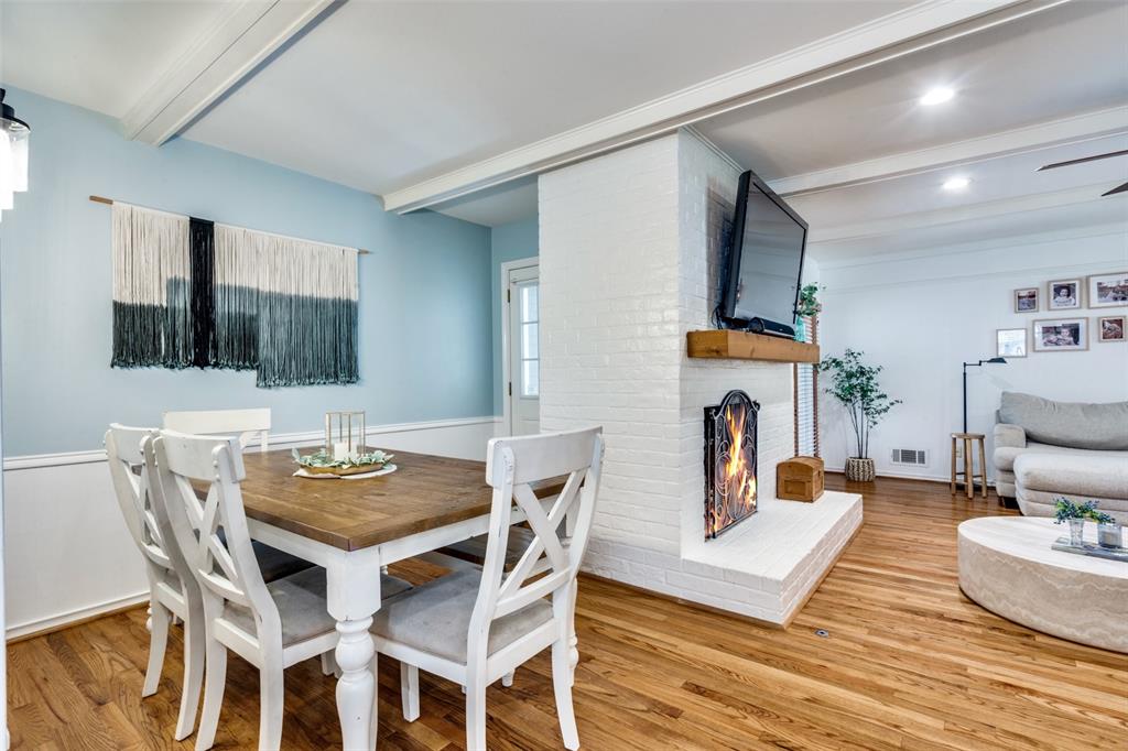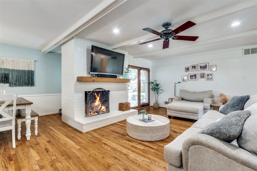 Experience the picture-perfect charm, designer updates, and close-knit community of Richardson’s beloved Heights Park in this stunning one-story home that welcomes you with elevated curb appeal plus a remodeled interior full of character, style, and modern convenience. New hardwood floors flow through the living areas and bedrooms, creating a seamless backdrop for the home’s open layout and flexible spaces. The kitchen is a showpiece with quartz countertops, a farmhouse apron-front sink, custom cabinetry, gas cooktop, double ovens, stainless steel appliances, and classic vent hood, and opens to two spacious living areas that bring everyone together. A picture window fills the front living space with natural light, while a flexible front room with a barn door is perfect as a dining area or private office. The gas fireplace creates a cozy gathering spot, and the large primary suite offers a relaxing retreat. Two secondary bedrooms share an updated Jack and Jill bath, and the half bath serves guests with style. Step outside to enjoy your private OASIS featuring a large patio for relaxing or entertaining under the mature trees, a firepit retreat under party lights, space to garden, and a new board-on-board fence enclosing a beautifully landscaped yard with room for kids to play. Additional updates include all new interior paint in 2024 and all new plumbing. With top-rated RISD schools, including Arapaho Classical Magnet, and a location just minutes from City Line, downtown Dallas, 75 and DNT, shopping, dining, parks, and trails, this is a rare chance to own a true standout in one of Richardson’s most sought-after neighborhoods!