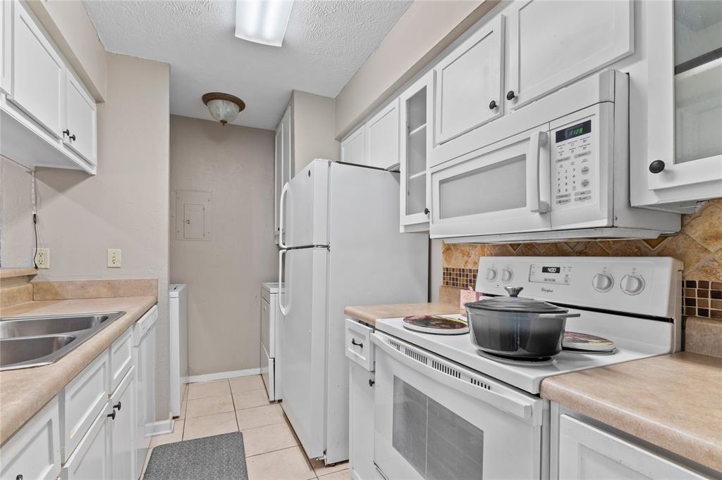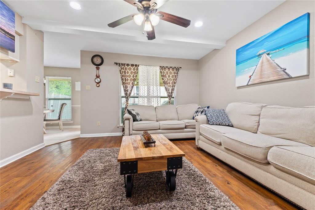 Additionally, the home offers a covered patio that overlooks the courtyard and includes a two-car garage. The windows are fitted with 2-inch faux wood blinds for added privacy and style.