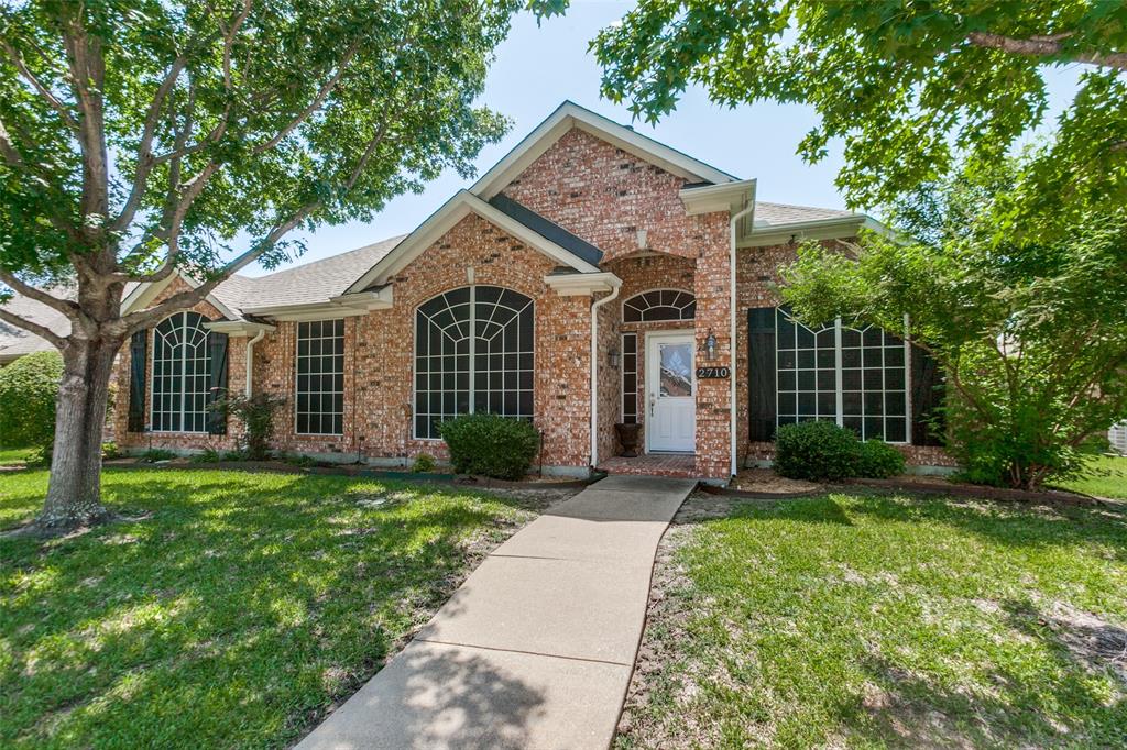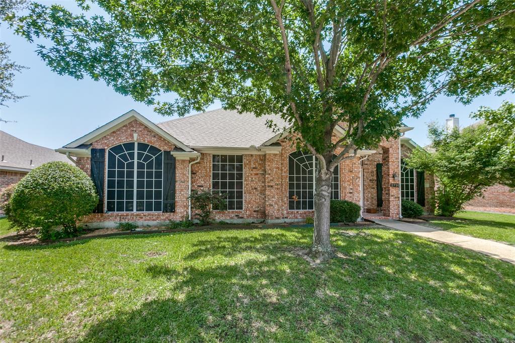 Beautiful drive up enhanced with outdoor shutters, decorative framed windows, landscaped and stately trees. Wonderful open floor plan greets you with handscraped hardwood floors at entry, dining room and living area. Gourmet size kitchen is open to the spacious family room. The kitchen is equipped with a nice breakfast bar, working island, silestone countertops, abundance of cabinets, ceramic tile flooring and pantry. Formal dining room and breakfast area are convenient for entertaining. Large family room features high ceilings and gas logs fireplace. 2nd living area promotes flex space for your needs. Primary bedroom is split from the three secondary bedrooms for extra privacy. Primary bath suite has a garden tub, separate shower and walk-in closet. Replaced carpet (2025) in all 4 bedrooms. You may discover one of your favorite spots is your own enclosed patio for relaxing in the mornings and evenings. 2 car garage plus a bonus covered carport for a total of 4 car spaces! Recently restained wood fence with metal posts. Sprinkler and security systems. Convenient location near shopping and restaurants. 4 bedrooms + 2 living areas + 2 dining areas + 2 baths + enclosed patio!