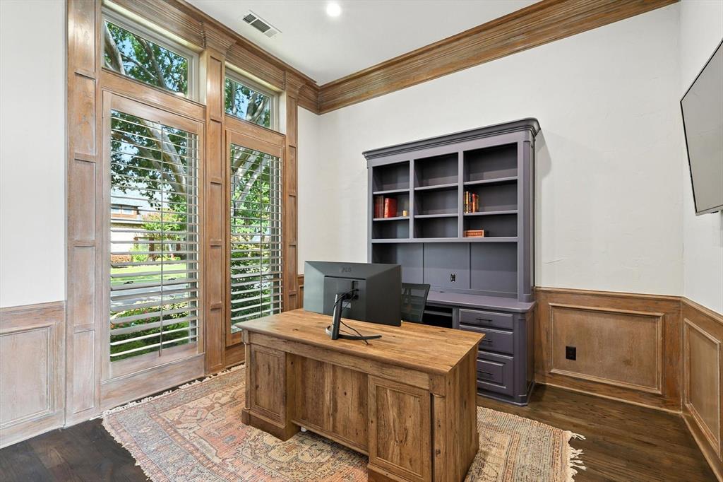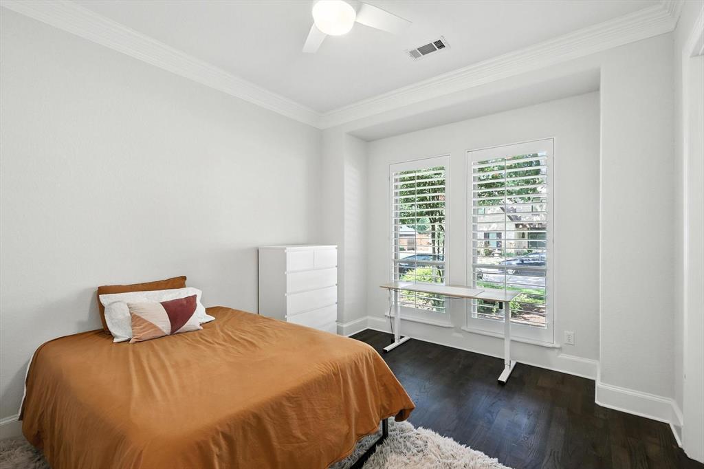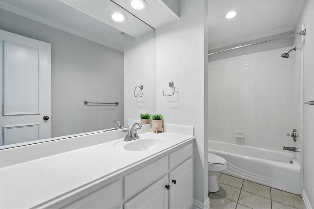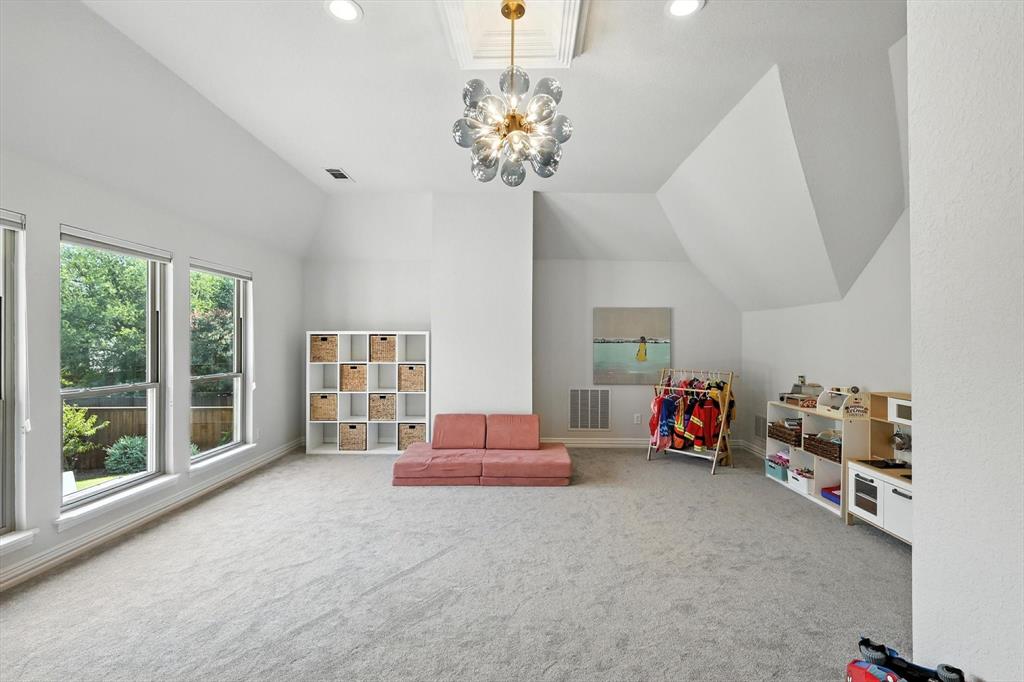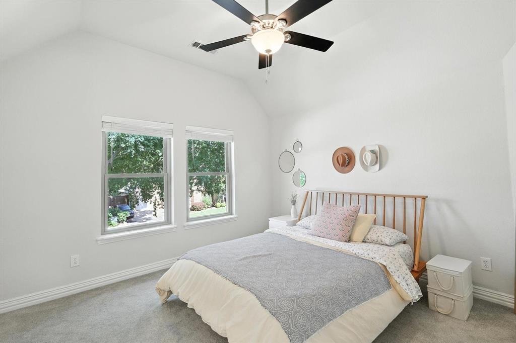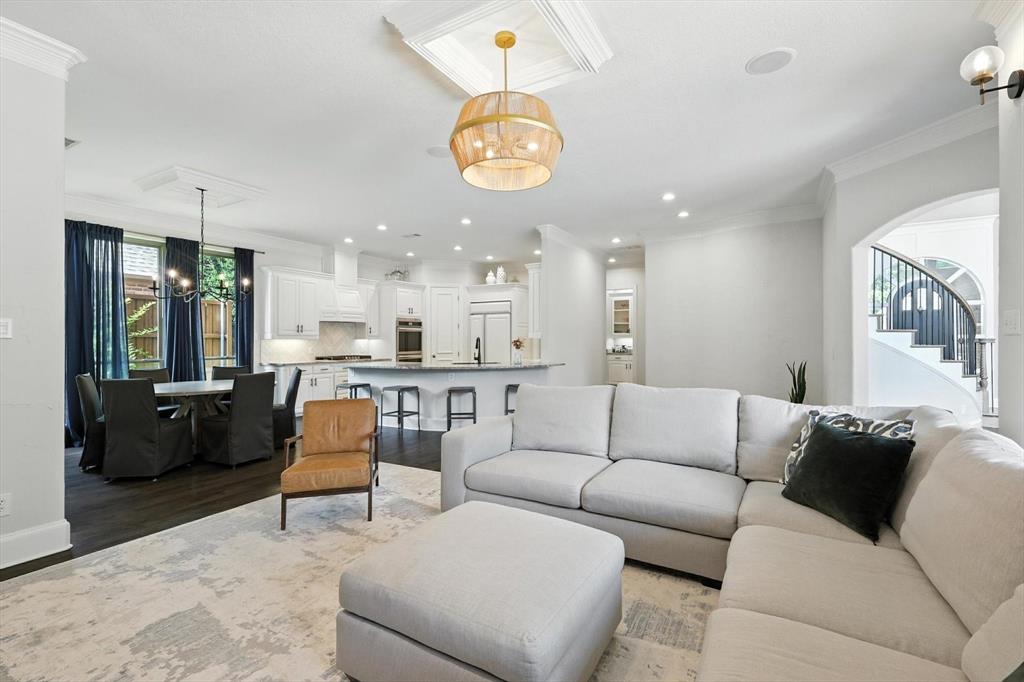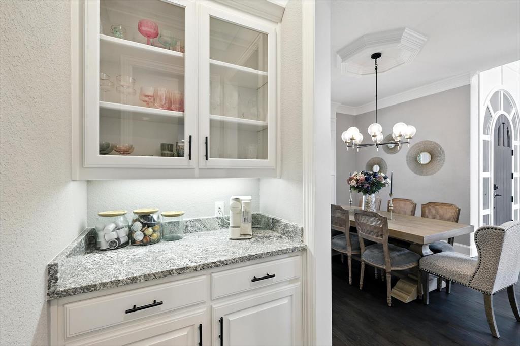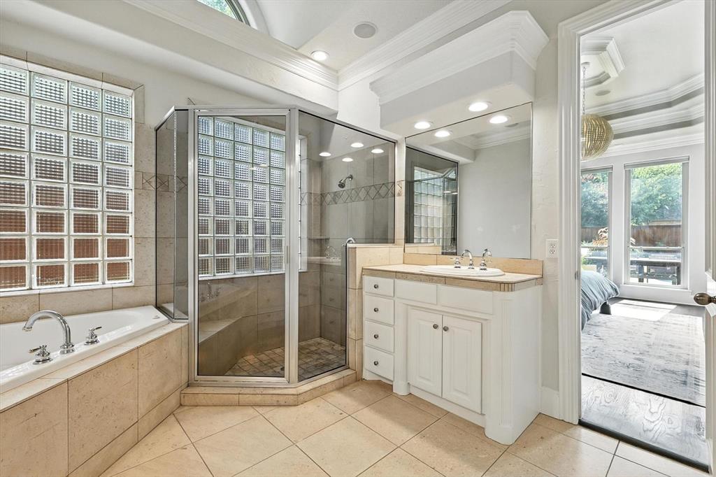 Trees and fresh landscaping frame the front of this 4-bedroom, 5-bathroom Coppell home, creating a great first impression. Inside, a curved staircase welcomes you in, and throughout the first floor, you’ll find updated designer light fixtures and newly installed hardwood floors. To the left is a study with French doors and a built-in bookcase; to the right, a dining room that connects to a butler’s pantry. The formal living area features a two-story ceiling, a wall of windows overlooking the backyard, and a fireplace as the focal point. On the left side of the house, the primary suite includes two vanities, a walk-in shower, tub, and a large walk-in closet. A full pool bath is also nearby. The kitchen offers white cabinetry, granite counters, stainless steel appliances, double ovens, a gas cooktop, built-in fridge, and a walk-in pantry. It opens to a family room with a stone fireplace and built-ins. On the opposite side of the home is a first-floor guest bedroom with its own ensuite bath and the laundry room. Upstairs is a large game room with a closet, plus two additional bedrooms—each with its own ensuite bath, including one that’s been fully renovated. Out back, enjoy the pool, spa, fire pit, and yard space. There’s also a 3-car garage. Just a short walk from Old Town Coppell, with easy access to the farmers market, restaurants, and shops. You’re also just 10 minutes from DFW Airport, with quick access to 121 and 635, and an easy drive to both Dallas and Fort Worth.