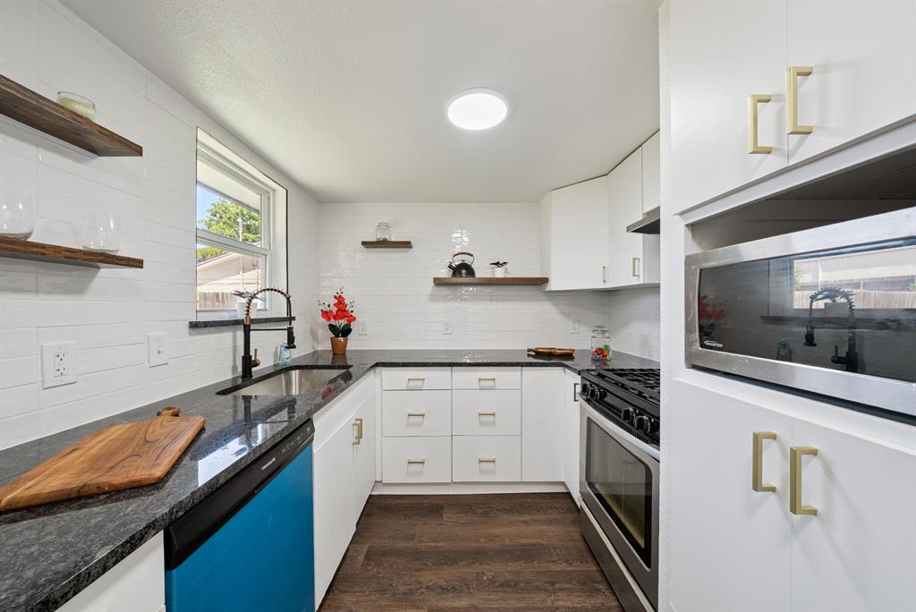 Inside, you’ll find a bright and open living and dining area that flows effortlessly into the kitchen, creating a perfect space for gathering. The kitchen features stunning granite countertops, a gas stovetop, and a brand-new dishwasher—ready for your next home-cooked meal.
