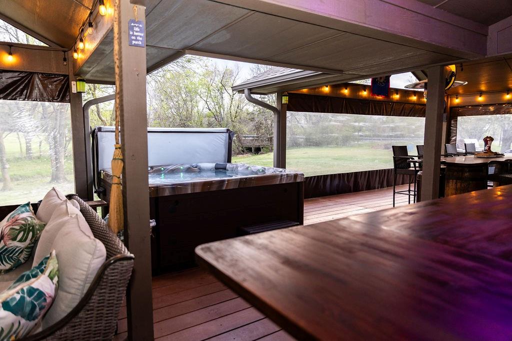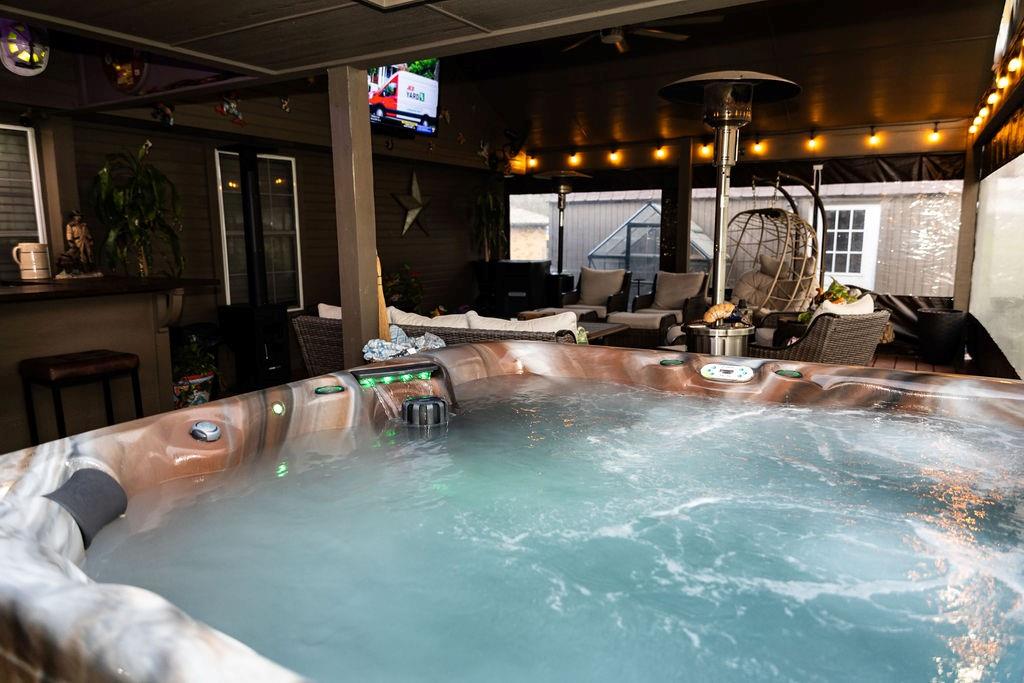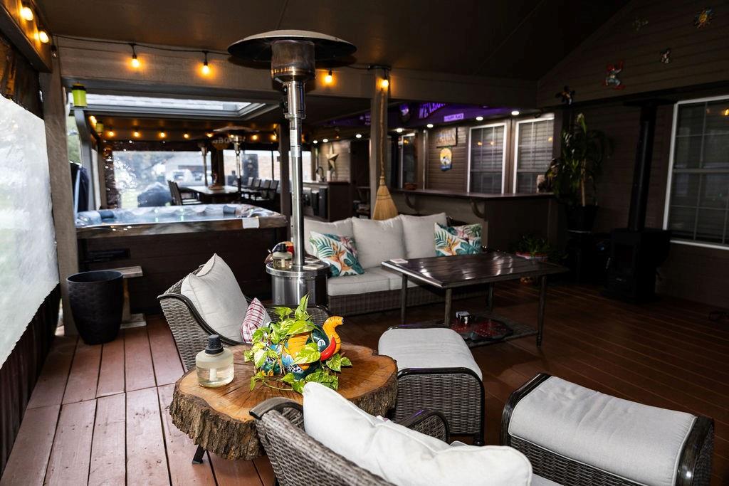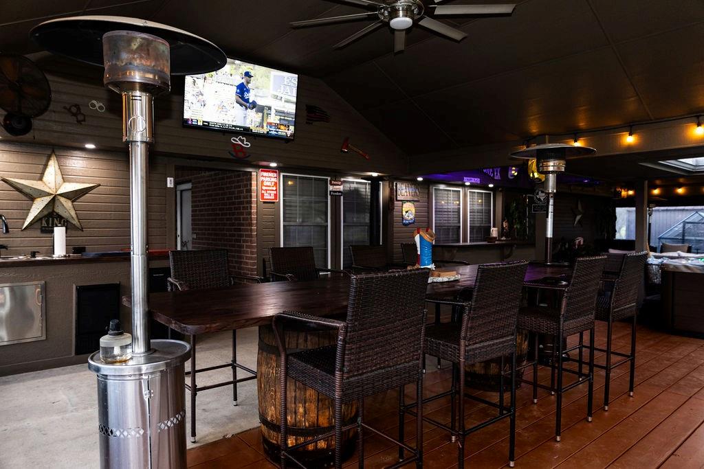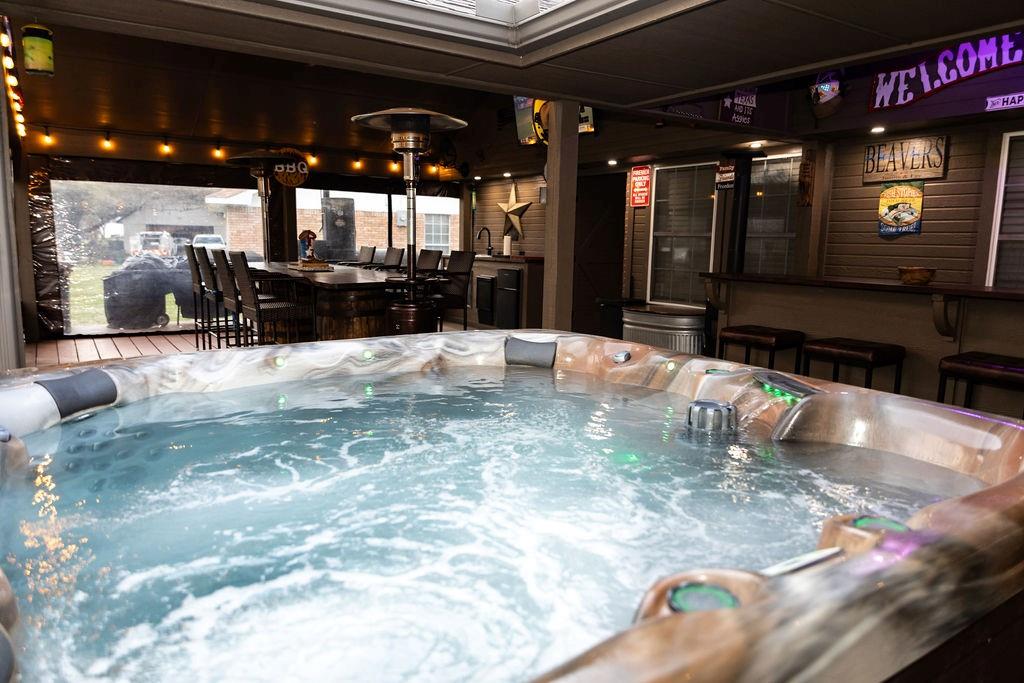 Here it is. The perfect gem sitting on a beautiful treed lot in a small town setting. This 3-2 sits on a quiet street close to schools, dining, and entertainment. You won't find a property with this much charm. If you love to entertain, check out this huge backyard kitchen- living area designed for all the gatherings you can dream of. His and her entertaining areas complete with his and her TVs. The attention to detail is remarkable. The back area comes complete with a 5-person hot tub and roll-down vinyl for enclosure. This home also features