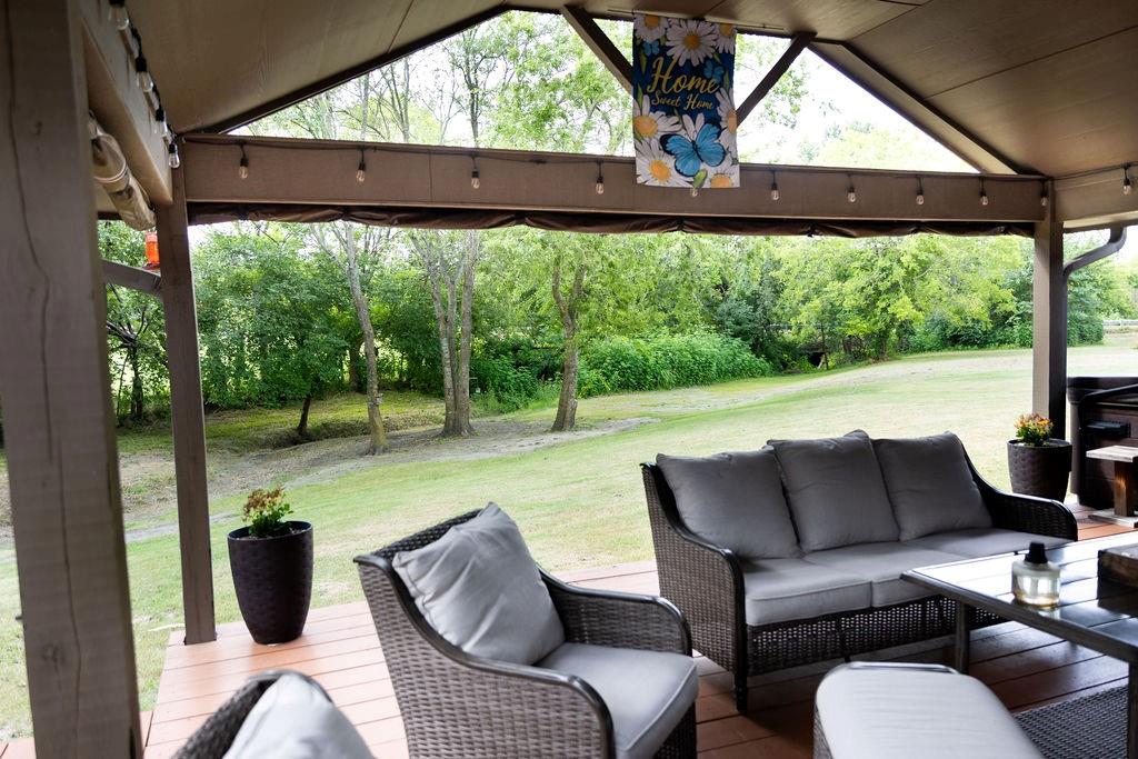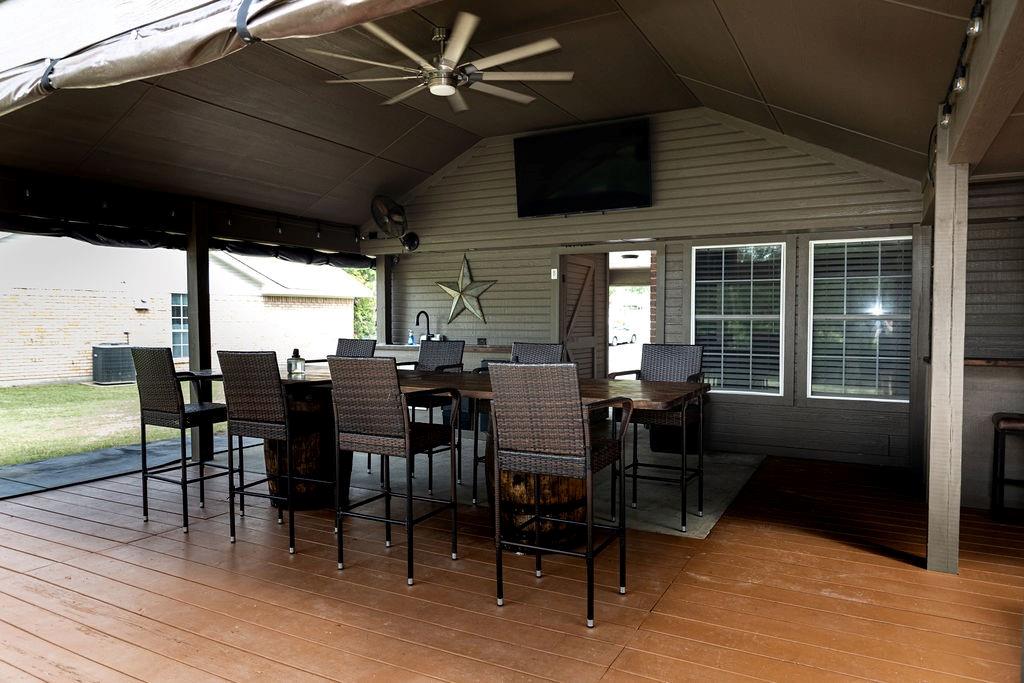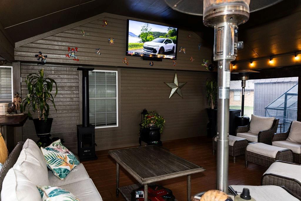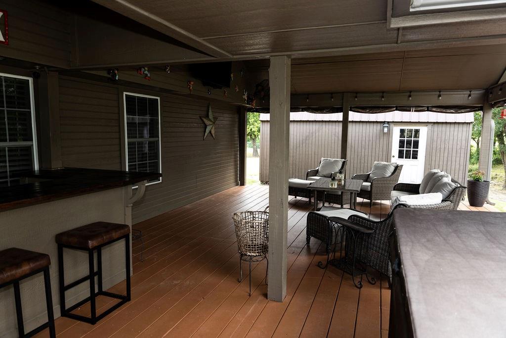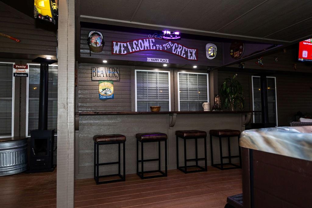 Here it is. The perfect gem sitting on a beautiful treed lot in a small town setting. This 3-2 sits on a quiet street close to schools, dining, and entertainment. You won't find a property with this much charm. If you love to entertain, check out this huge backyard kitchen- living area designed for all the gatherings you can dream of. His and her entertaining areas complete with his and her TVs. The attention to detail is remarkable. The back area comes complete with a 5-person hot tub and roll-down vinyl for enclosure. This home also features