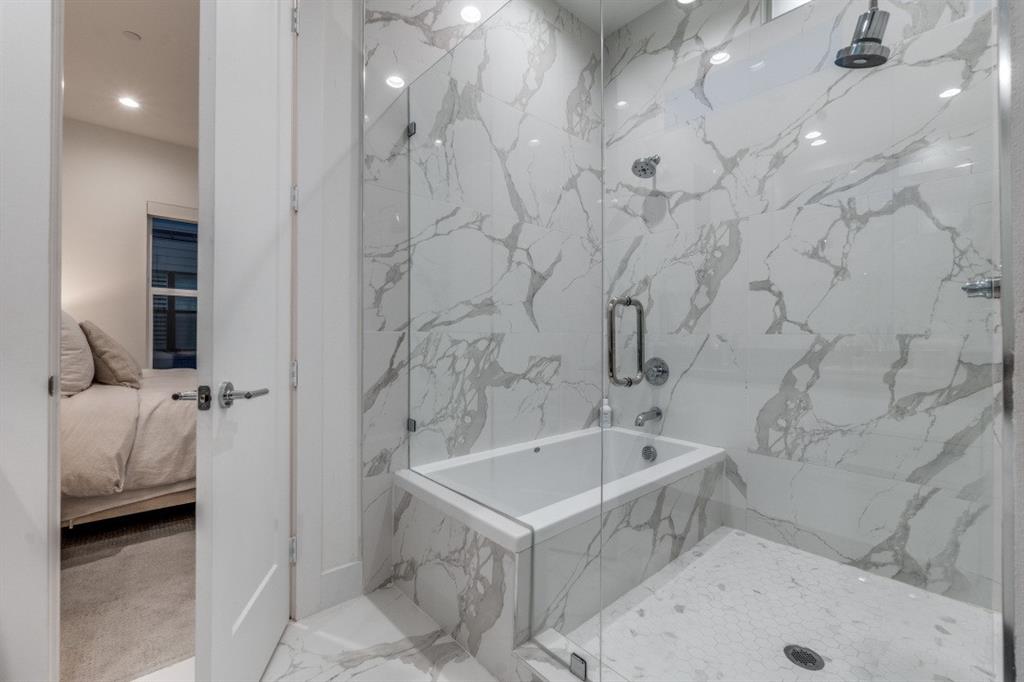 The luxurious primary suite offers dual walk-in closets, an oversized shower, and a soaking tub for spa-like relaxation. Enjoy outdoor living with a second-floor covered patio and a fourth-floor rooftop terrace with gas and water hookups—perfect for grilling or lounging.