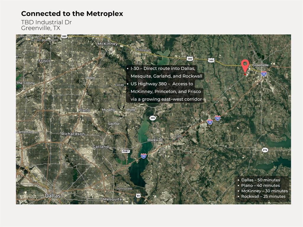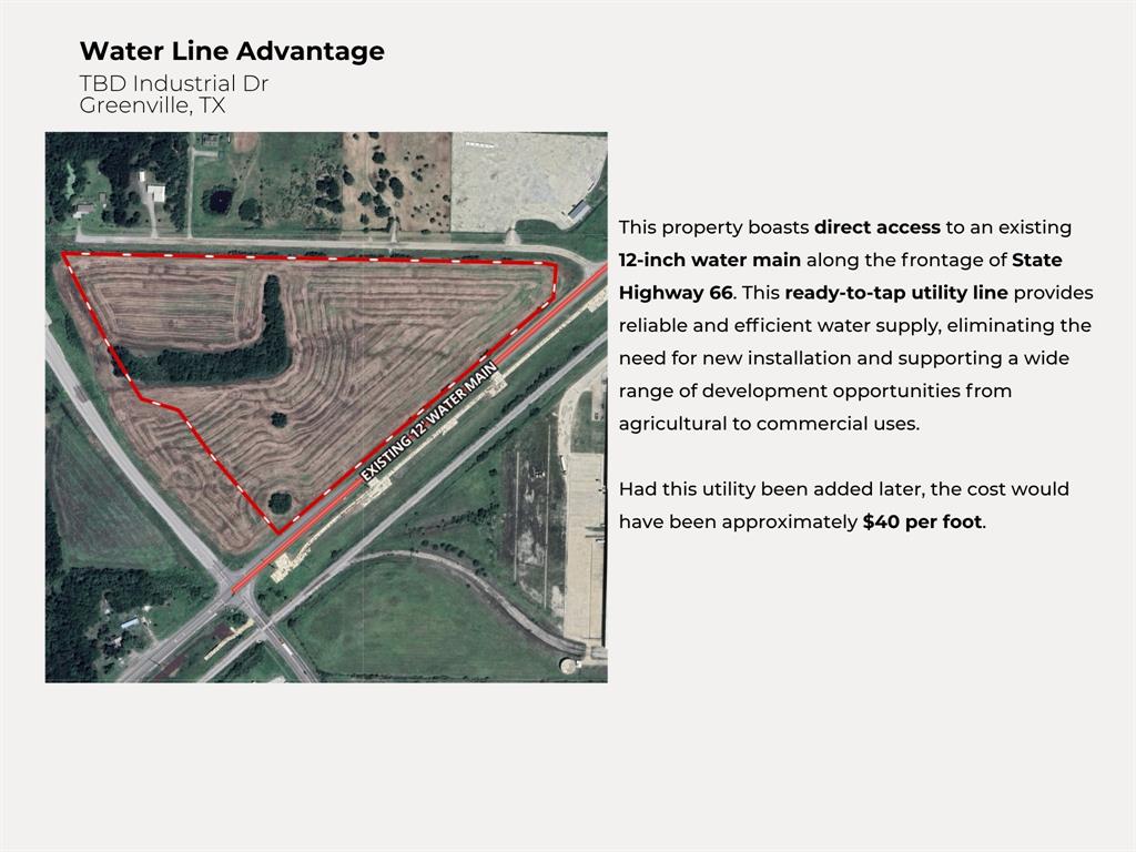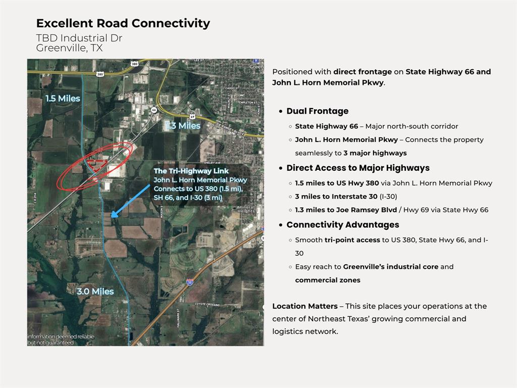 Discover this exceptional vacant land parcel located at TBD Industrial Dr, Greenville, TX, offering unparalleled potential for commercial and industrial development. Spanning a strategic location with excellent road frontage and connectivity, this property boasts seamless access to major thoroughfares, ensuring efficient transportation and logistics operations. Its proximity to the Dallas-Fort Worth Metroplex positions it ideally for businesses seeking to capitalize on regional growth and connectivity.