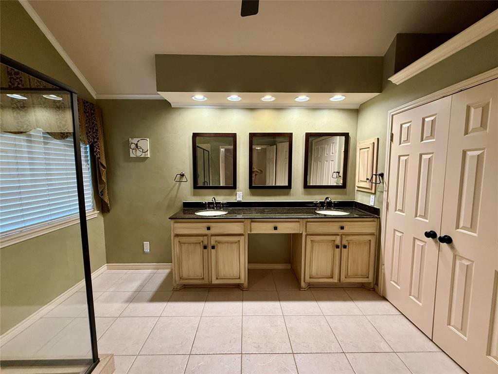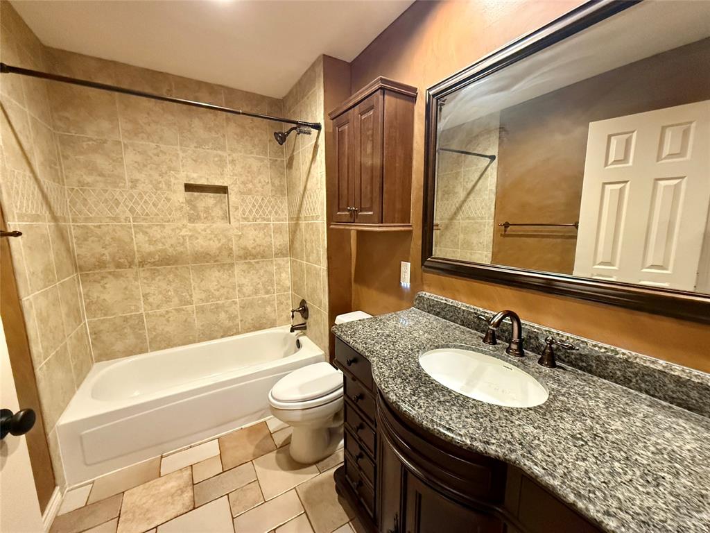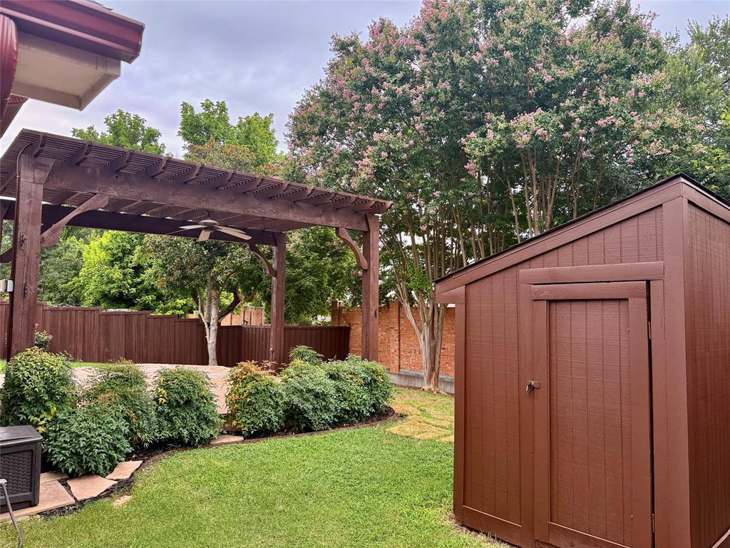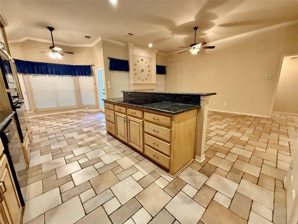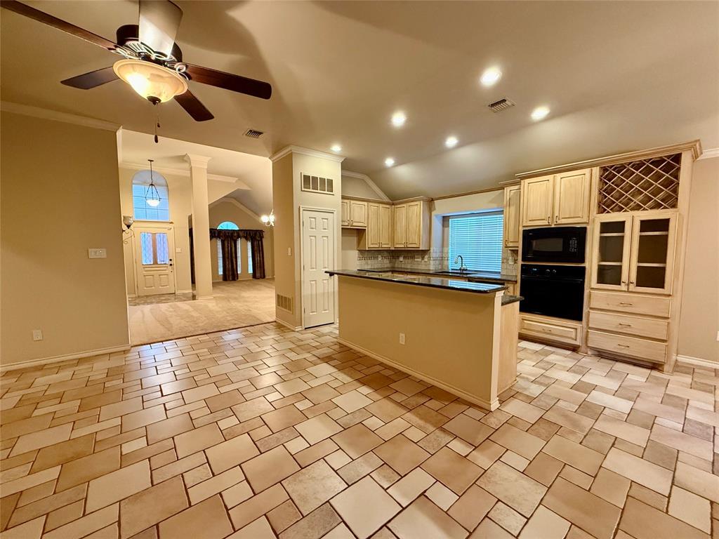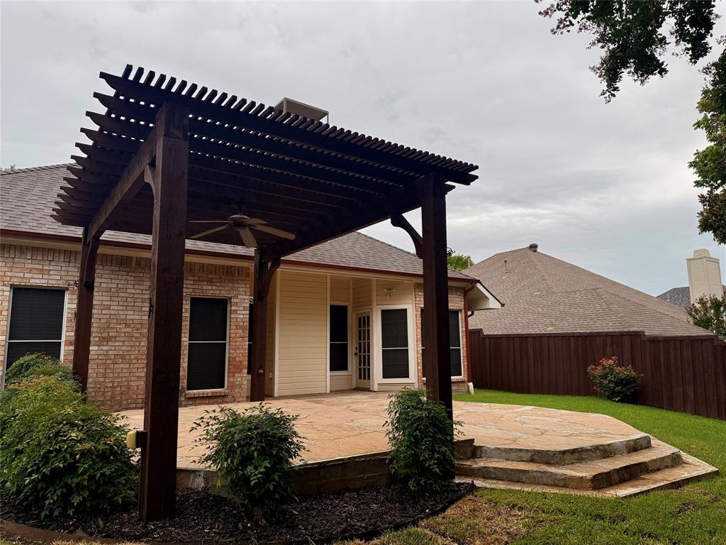 Beautiful home with beautiful great features. Gorgeous kitchen features GRANITE COUNTERS, breakfast bar, & black appliances open to family room. Master retreat has fantastic oversized shower & granite vanities. Relax in the wonderful backyard with huge stamped concrete patio, arbor, & mature trees. NEW ROOF June 2025, solar screens.