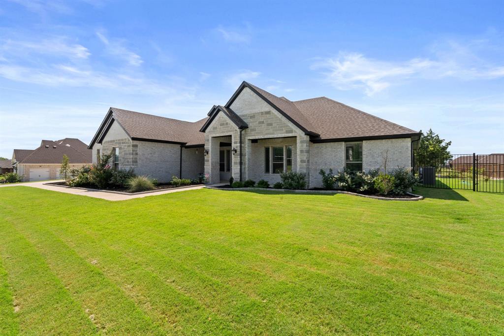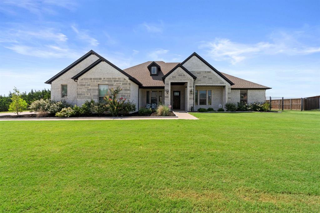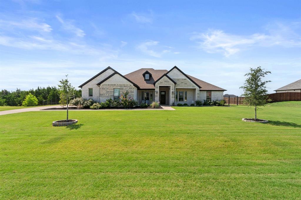 Modern Country Charm on beautiful one-acre treed lot! Welcome to your dream home in a highly desirable community within Maypearl ISD! This stunning 4-bedroom, 2,700 sqft home, built in 2023, offers the perfect blend of modern luxury and peaceful country living — all outside city limits, so no city taxes! In addition, enjoy the insurance discount with having a brand new roof with upgraded class 4, Owens Corning storm shingles with upgraded high profile ridge. Step inside and be captivated by the open-concept design, soaring 10 ft ceilings, and an abundance of natural light streaming through numerous windows - including a newly added storm door at the front for extra charm and security. The dedicated office with elegant French doors provides the perfect work-from-home setup. The oversized primary suite is a true retreat, featuring an ensuite bath with a garden tub, walk-in closet, and separate shower. Secondary bedrooms are generously sized, each with walk-in closets, thoughtfully separated from the primary for added privacy. The chef’s kitchen is a showstopper with sleek Quartz countertops, a large island, ample cabinetry, and a cozy breakfast area. Don’t miss the built-in wine and coffee bar—perfect for entertaining or daily indulgence! Functional design continues with a huge mudroom and laundry area just off the oversized 3-car garage, complete with space for an extra fridge or freezer. Step outside to enjoy the extended back patio, perfect for relaxing or entertaining, overlooking your fully fenced, one-acre lot with lots of trees for added privacy. Plus, the property includes sprinklers, spray foam insulation, new gutters, and sits peacefully on a quiet cul-de-sac. This home offers everything you’re looking for and more. Don’t miss your chance to own this incredible property! New roof was installed after pics were taken. New roof & gutters are black