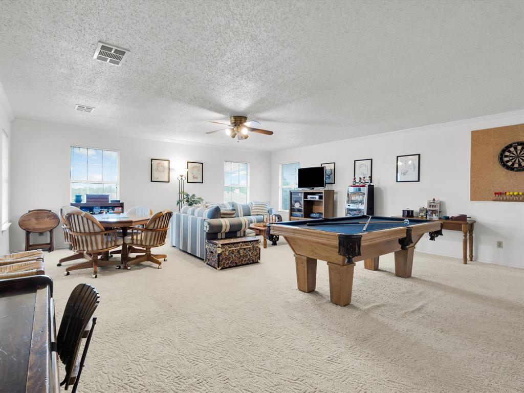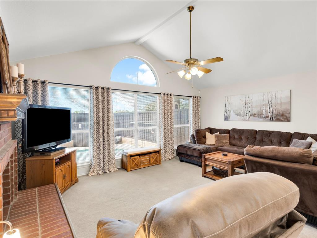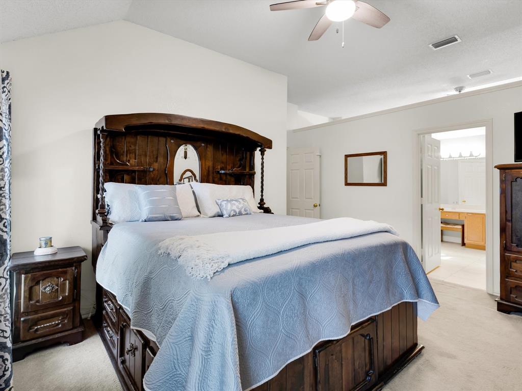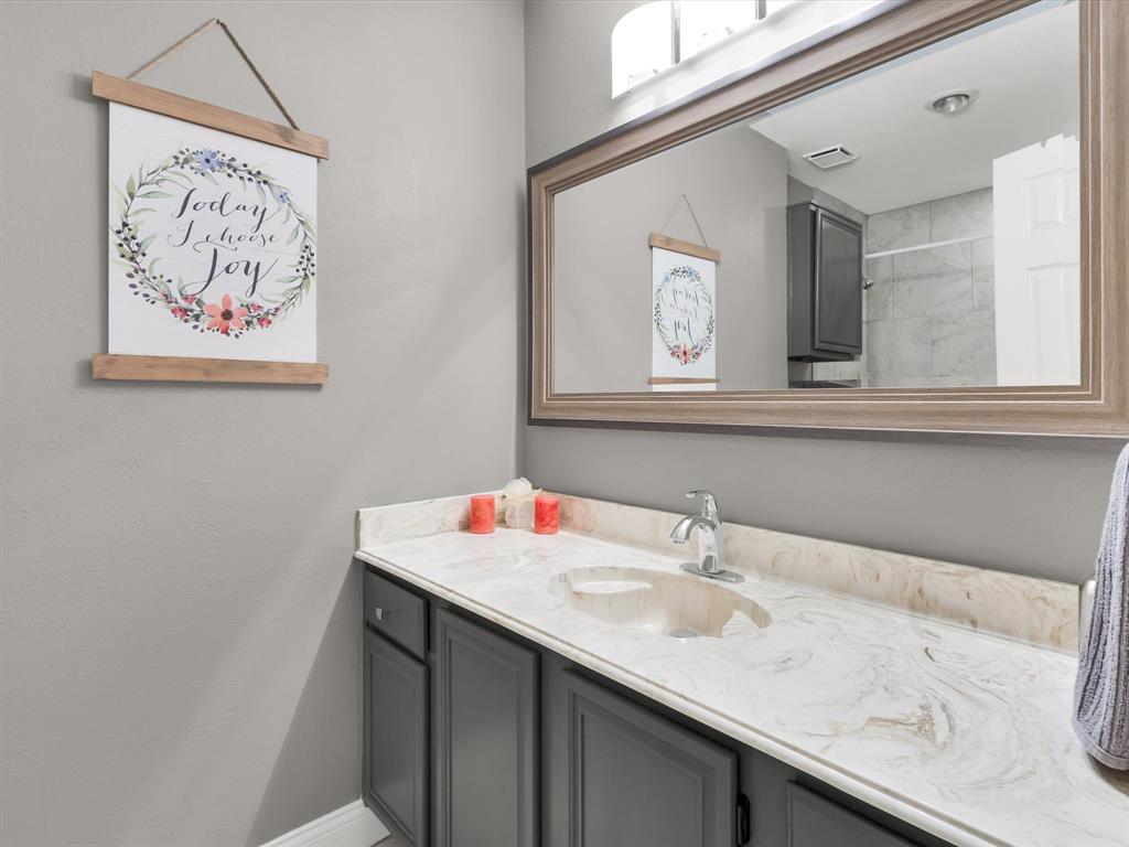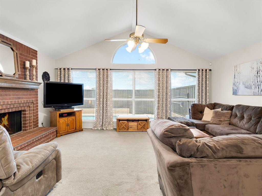 Welcome Home. Beautifully maintained 1.5 story home in Lewisville. 4 bedrooms, 2 bathrooms plus a bonus room upstairs. Upon entry you are greeted with solid wood floors, tons of natural light and tall ceilings. Pass through the front den and dining room to the open concept kitchen and living space. Kitchen has nice wood stained cabinets and lots of counterspace for meal prep. Eat in kitchen includes a built in bench and table for a casual dining space. Living room attached with vaulted ceilings, wood burning fireplace and overlooking the amazing backyard. Upstairs you have a large 20 x 26 bonus room currently used as a gameroom. Secondary bedrooms down their own hallway with a recently updated secondary bathroom. Primary suite located at back of house with an attached ensuite. Includes dual sinks, a separate tub and an enlarged shower with newer tile. Outside is a low maintenance backyard oasis with a covered pergola, board on board fence and diving pool for you to enjoy during our hot summer months. Newer HVACs replaced in 2022 and 2024. Shed will convey. Located in a quiet established neighborhood close to highways and schools.