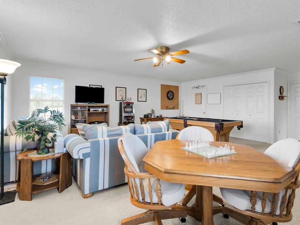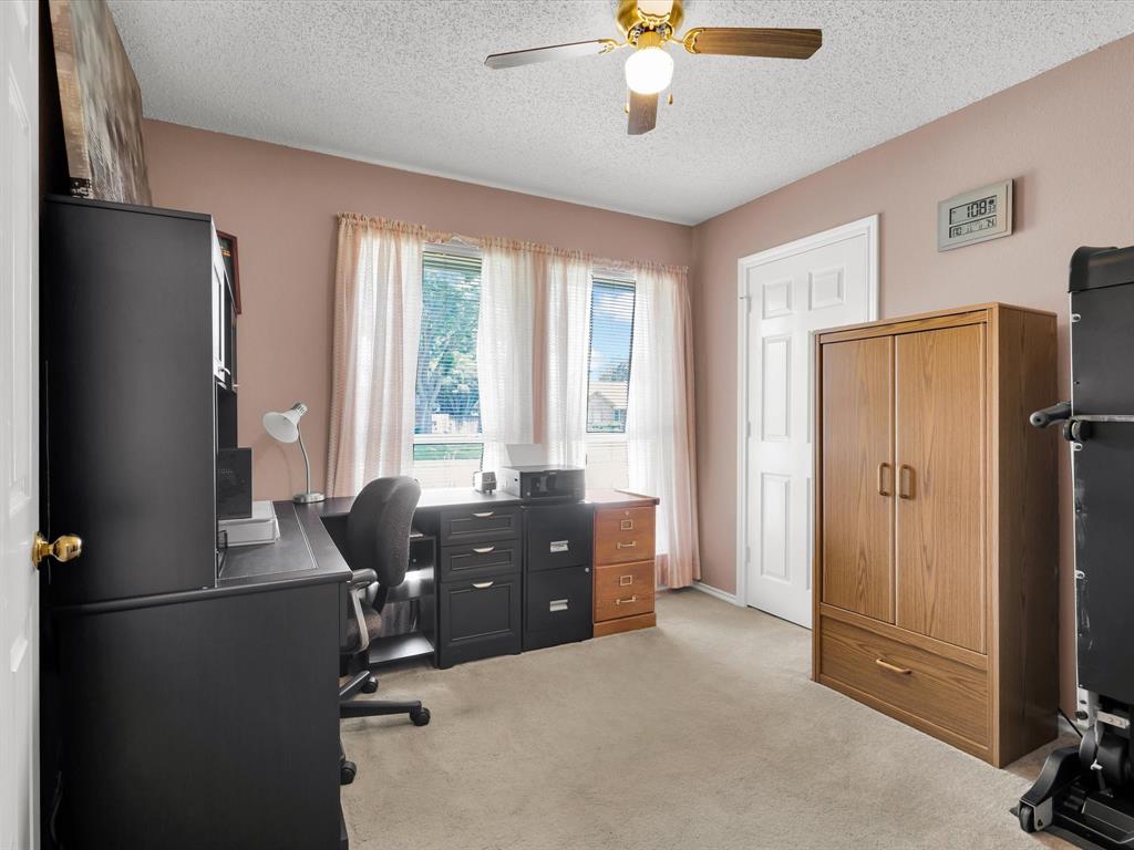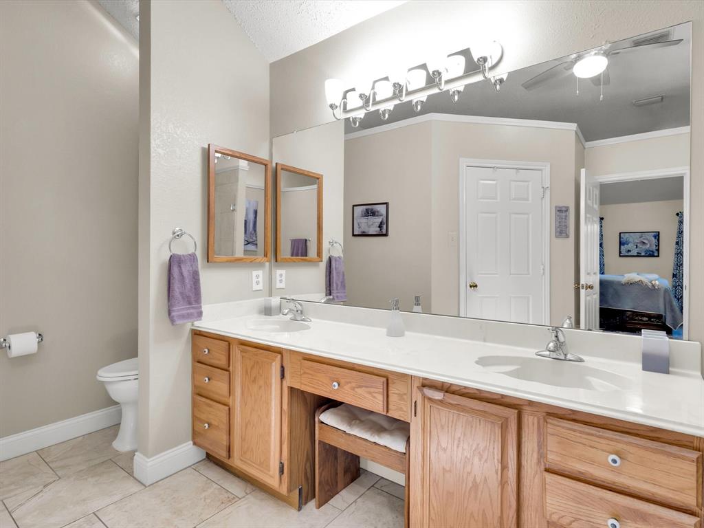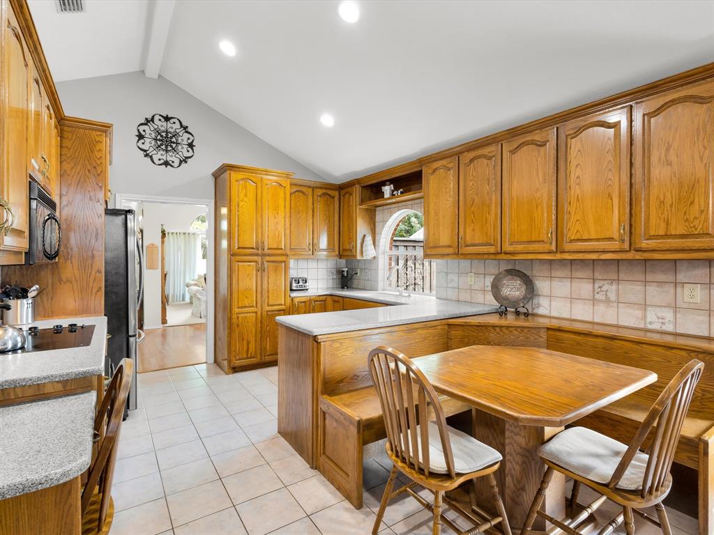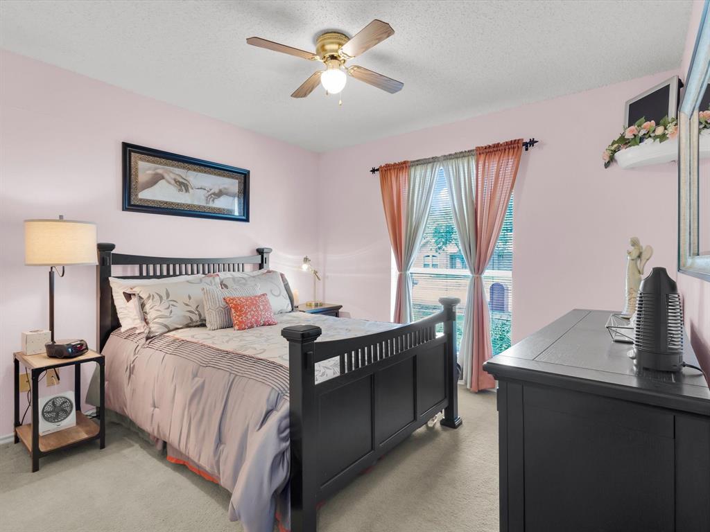 Welcome Home. Beautifully maintained 1.5 story home in Lewisville. 4 bedrooms, 2 bathrooms plus a bonus room upstairs. Upon entry you are greeted with solid wood floors, tons of natural light and tall ceilings. Pass through the front den and dining room to the open concept kitchen and living space. Kitchen has nice wood stained cabinets and lots of counterspace for meal prep. Eat in kitchen includes a built in bench and table for a casual dining space. Living room attached with vaulted ceilings, wood burning fireplace and overlooking the amazing backyard. Upstairs you have a large 20 x 26 bonus room currently used as a gameroom. Secondary bedrooms down their own hallway with a recently updated secondary bathroom. Primary suite located at back of house with an attached ensuite. Includes dual sinks, a separate tub and an enlarged shower with newer tile. Outside is a low maintenance backyard oasis with a covered pergola, board on board fence and diving pool for you to enjoy during our hot summer months. Newer HVACs replaced in 2022 and 2024. Shed will convey. Located in a quiet established neighborhood close to highways and schools.