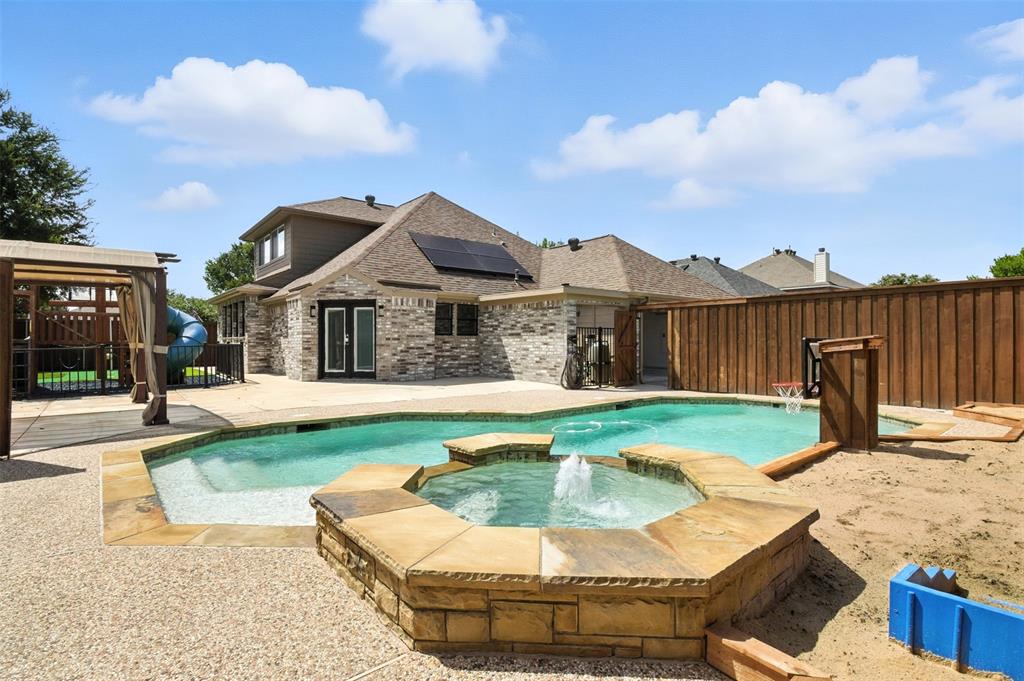 Upstairs, an oversized game or media room provides endless possibilities for entertainment and relaxation. Outdoors, the backyard is your personal haven, complete with a River Bend beautiful pool, putting green, and ample space for entertaining or simply soaking up the sun.