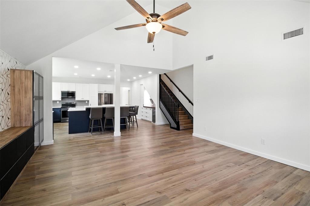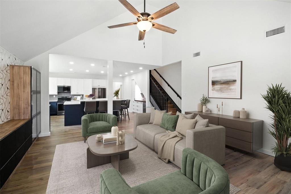 As you step inside, you'll appreciate the open and airy feel, accentuated by vaulted ceilings. The kitchen is a chef’s delight, featuring a newly added island and abundant cabinetry for all your storage needs. This space seamlessly flows into the living area, making it ideal for both cozy family nights and lively gatherings.