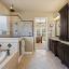 The chef’s kitchen boasts stainless steel appliances, granite countertops, a pot filler, and a striking stone and brick breakfast bar — perfect for entertaining. A private study with built-in shelving offers a quiet retreat for work or reading.