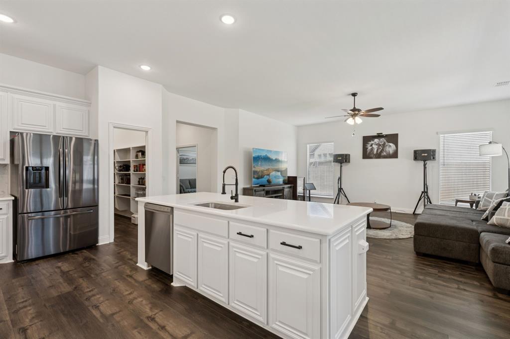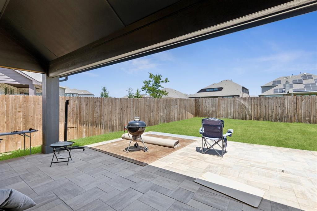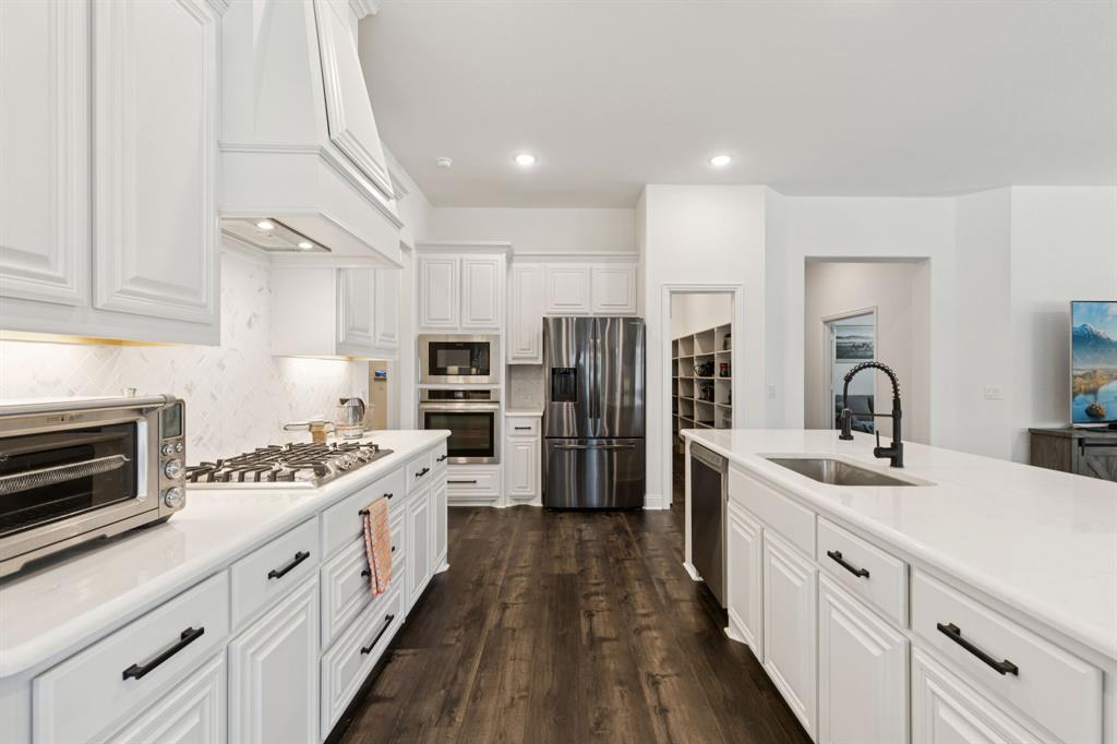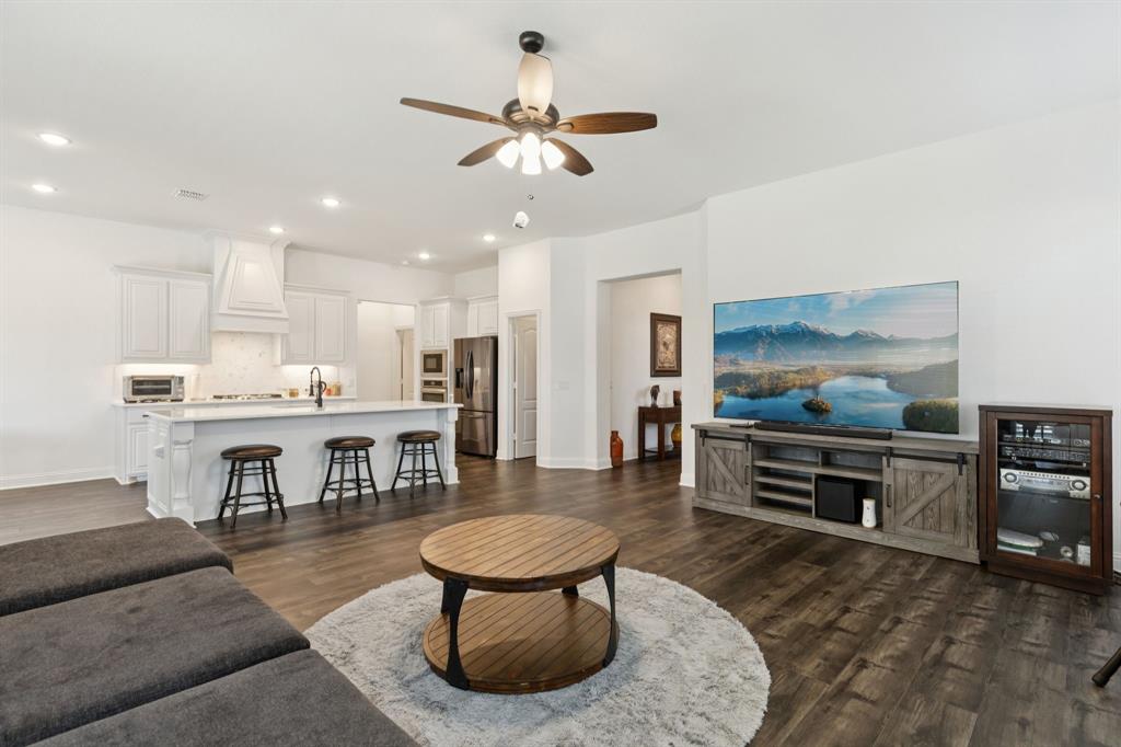 Welcome to this stunning single-story Bloomfield-built home in the desirable Wildflower Ranch community, where thoughtful design and modern elegance meet comfort and convenience. Built in 2021, this 3-bedroom, 3-bathroom residence offers 2,519 square feet of beautifully crafted living space. The Caraway floor plan is both functional and stylish, featuring an open-concept layout with tall ceilings, expansive picture windows, and Luxury Vinyl Plank flooring that adds warmth and sophistication throughout the main living areas. The Deluxe Kitchen is a chef’s dream, boasting upgraded cabinetry, granite countertops, a spacious center island, a massive walk-in pantry, and stainless steel built-in appliances—including a gas cooktop with exterior venting. The kitchen flows seamlessly into the inviting Family Room, making it perfect for everyday living and entertaining. A separate Media Room provides a dedicated space for movie nights, gaming, or relaxation. Retreat to the private Primary Suite, complete with a cozy window seat and a spa-inspired ensuite bathroom featuring dual vanities, an enlarged glass-enclosed shower in place of the tub, and a generous walk-in closet with direct access to the oversized Laundry Room for added convenience. Enjoy outdoor living year-round on the expansive Covered Patio, overlooking the fully landscaped backyard with stone-edged flower beds and an irrigation system. The home’s striking stone-and-brick elevation and meticulously maintained front yard provide excellent curb appeal with minimal effort. Located in a great newer neighborhood with community amenities and easy access to shopping, schools, and highways, this home delivers a perfect blend of luxury and practicality.