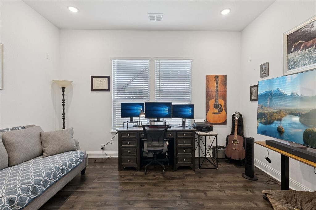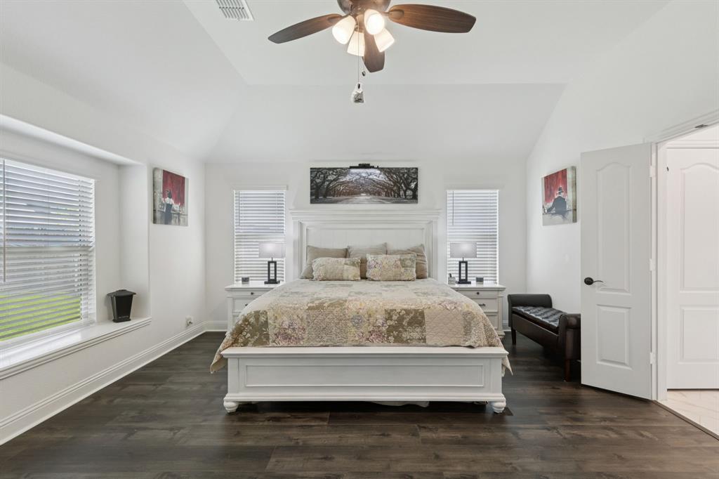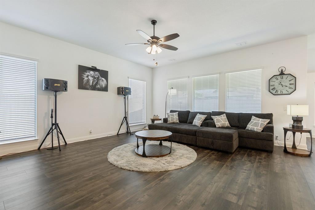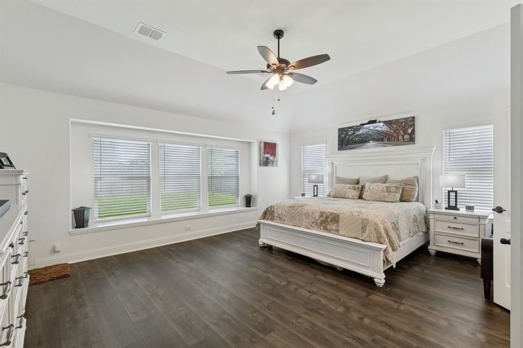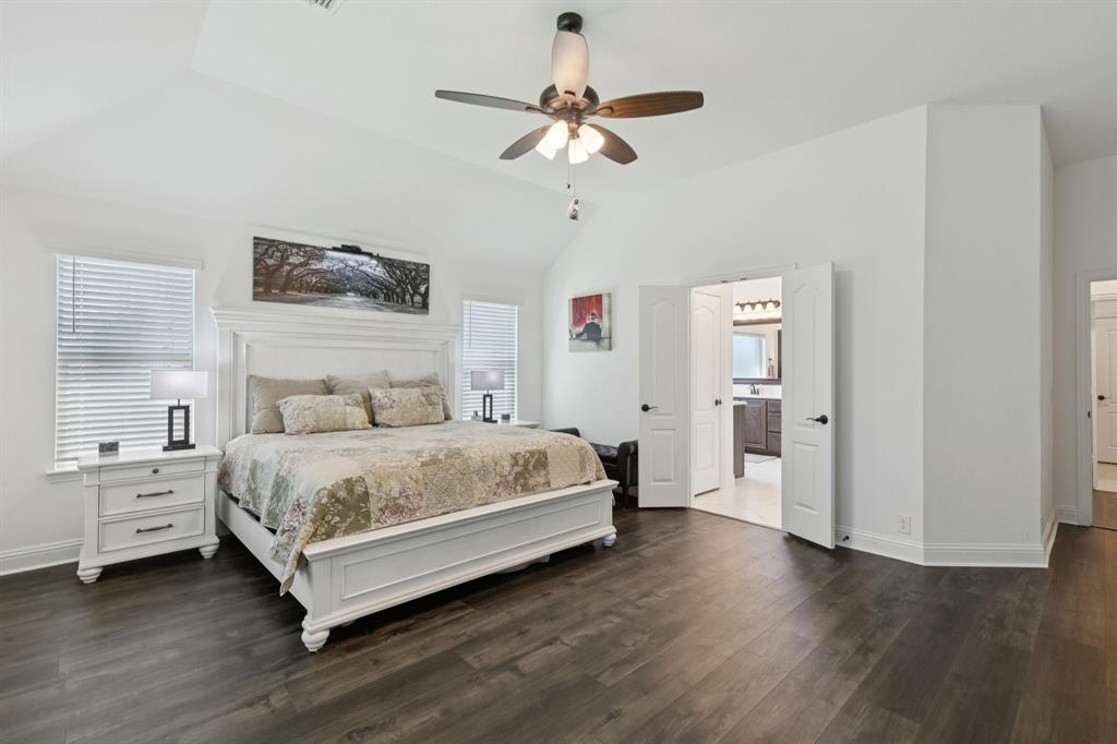 Welcome to this stunning single-story Bloomfield-built home in the desirable Wildflower Ranch community, where thoughtful design and modern elegance meet comfort and convenience. Built in 2021, this 3-bedroom, 3-bathroom residence offers 2,519 square feet of beautifully crafted living space. The Caraway floor plan is both functional and stylish, featuring an open-concept layout with tall ceilings, expansive picture windows, and Luxury Vinyl Plank flooring that adds warmth and sophistication throughout the main living areas. The Deluxe Kitchen is a chef’s dream, boasting upgraded cabinetry, granite countertops, a spacious center island, a massive walk-in pantry, and stainless steel built-in appliances—including a gas cooktop with exterior venting. The kitchen flows seamlessly into the inviting Family Room, making it perfect for everyday living and entertaining. A separate Media Room provides a dedicated space for movie nights, gaming, or relaxation. Retreat to the private Primary Suite, complete with a cozy window seat and a spa-inspired ensuite bathroom featuring dual vanities, an enlarged glass-enclosed shower in place of the tub, and a generous walk-in closet with direct access to the oversized Laundry Room for added convenience. Enjoy outdoor living year-round on the expansive Covered Patio, overlooking the fully landscaped backyard with stone-edged flower beds and an irrigation system. The home’s striking stone-and-brick elevation and meticulously maintained front yard provide excellent curb appeal with minimal effort. Located in a great newer neighborhood with community amenities and easy access to shopping, schools, and highways, this home delivers a perfect blend of luxury and practicality.