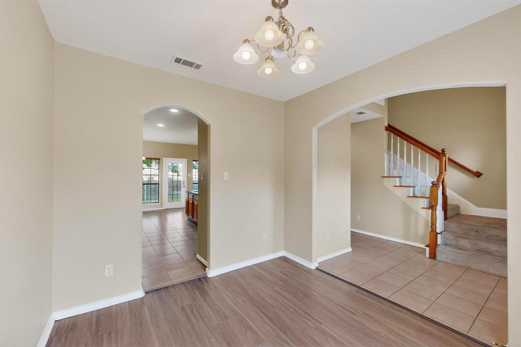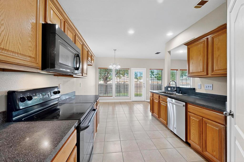 Beautiful and affordable 2-story brick home with stone accent enhancing the drive-up appeal. New roof was just installed July 08, wide entry foyer leads to formal dining room and spacious kitchen with breakfast bar, stainless steel dishwasher and microwave, tiled floors in all wet areas, easy-care laminated wood flooring in dining, living and master bedroom. Dual zoned AC units for energy saving. Ensuite bath in master boosts dual sinks, separate tub and shower and walk-in closet. Carpeted staircase leads to spacious game room, two full size bedrooms with same durable laminated wood flooring and shared full bathroom. Large backyard with shade trees and privacy wood fence, sprinkler system for both front and back yards. No HOA, close to area schools and highway 175.
