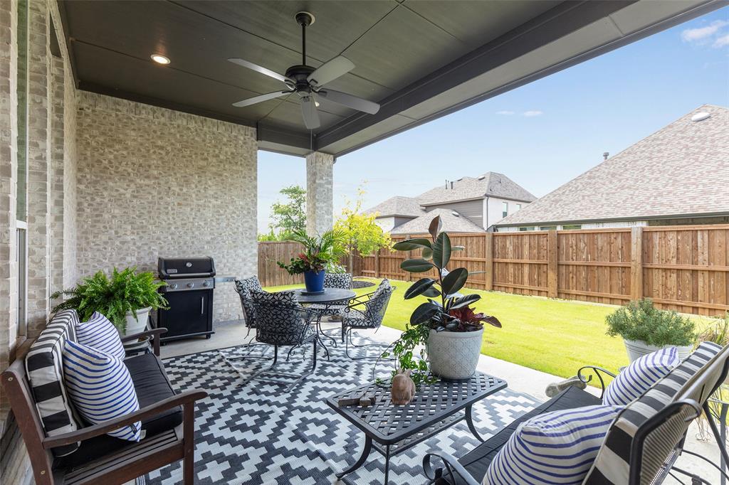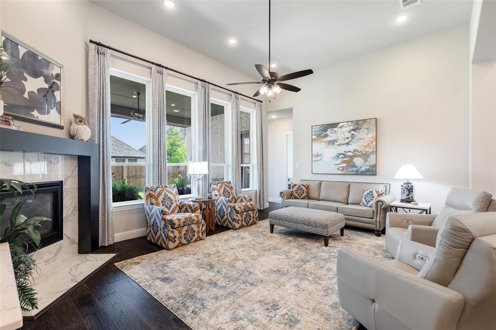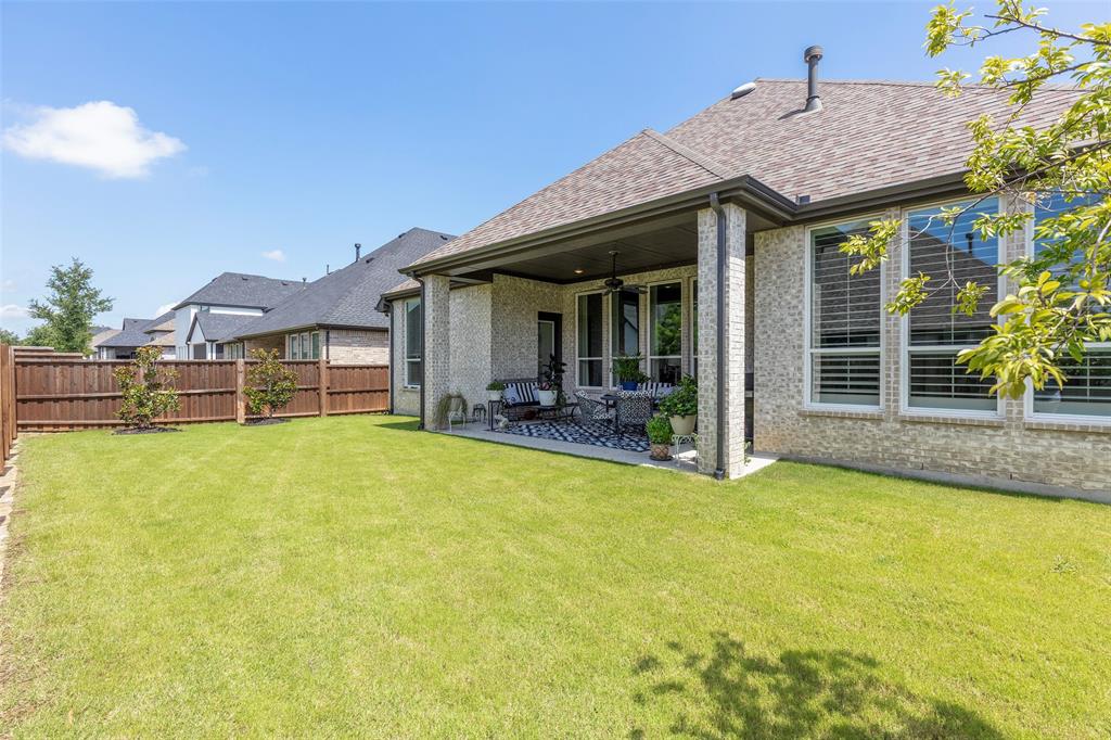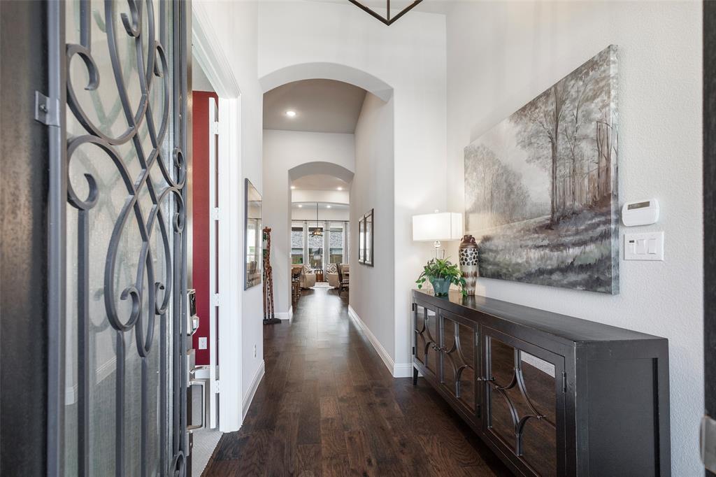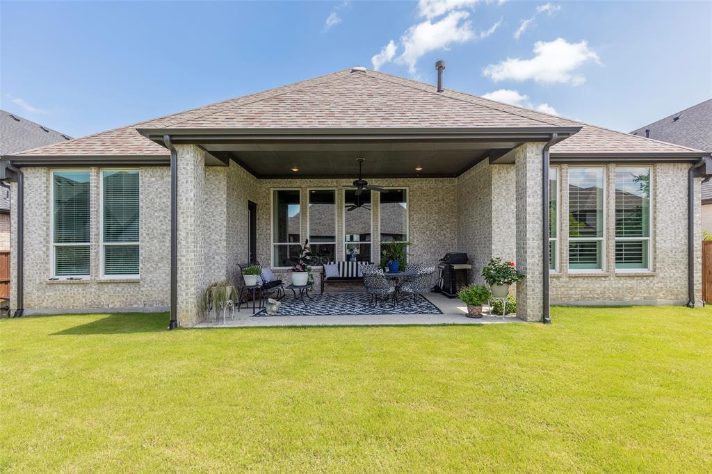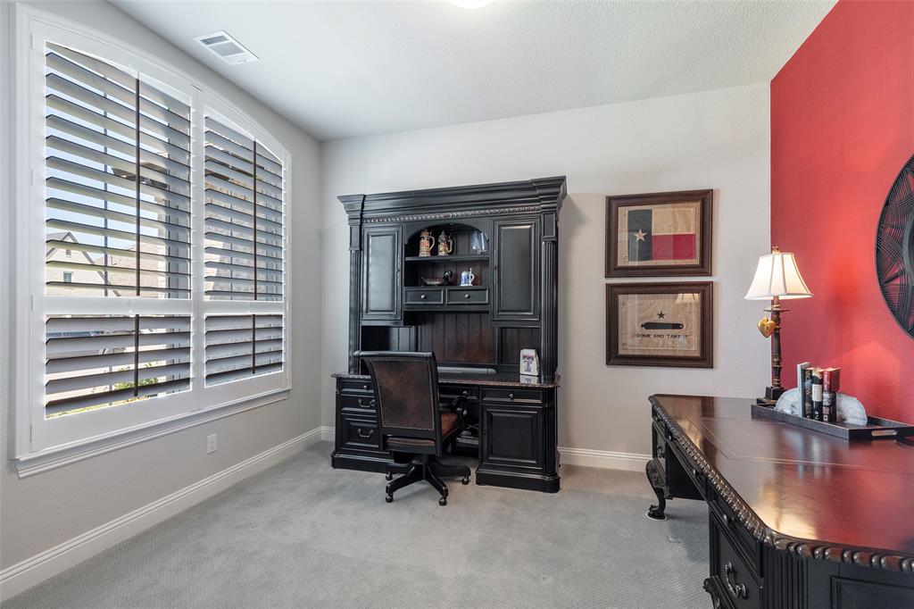 This meticulously cared-for North-facing Highland Home in the sought-after Star Trail community offers the perfect blend of function, style, and comfort. With 4 bedrooms, 3 full baths, a powder bath, dedicated study, entertainment room, and a 3-car garage, this well-designed single-story layout checks every box. Step through the double front doors into a light-filled entry and immediately notice the designer finishes throughout—plantation shutters, hardwood floors, elegant carpeting, and modern light fixtures. The private office at the front of the home provides a peaceful workspace with a view. The smart split-bedroom layout offers privacy for everyone with the guest suite tucked near the front; the primary suite quietly located at the rear and two secondary bedrooms share a full bath on the opposite wing. At the heart of the home, the open-concept kitchen shines with abundant cabinet space, expansive countertops, a large walk-in pantry, and a custom built-in dining hutch. The oversized family room features a wall of windows overlooking the private backyard, filling the space with natural light and providing plenty of room for seating and entertaining. The primary suite feels like a retreat, complete with a spa-inspired bath and a large walk-in closet that connects directly to the laundry room for everyday convenience. Enjoy movie nights or casual hangouts in the entertainment room. The epoxy-coated 3-car garage includes overhead storage and plenty of room for vehicles or hobbies. Additional highlights include, a whole-house water conditioning system with reverse osmosis at the kitchen sink, extended covered patio and spacious backyard. Living in Star Trail means access to resort-style amenities including parks, trails, pools, and an onsite elementary school. Easy access to the Dallas North Tollway makes commuting and weekend outings a breeze. This move-in ready home is an entertainer’s dream and a true standout home. Don’t miss your chance to make it yours!