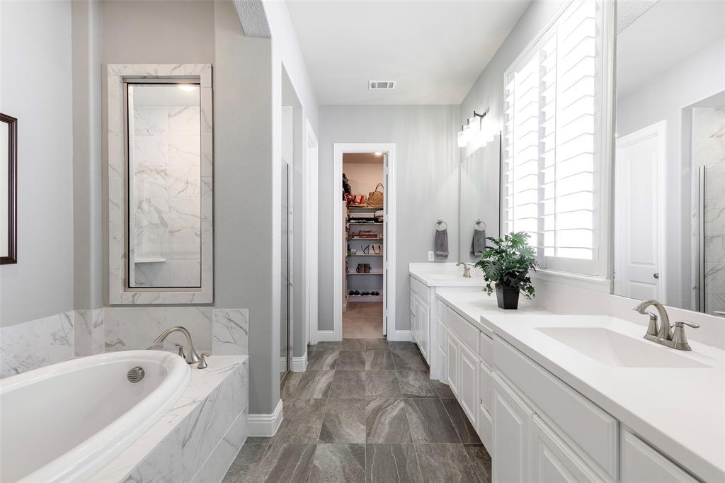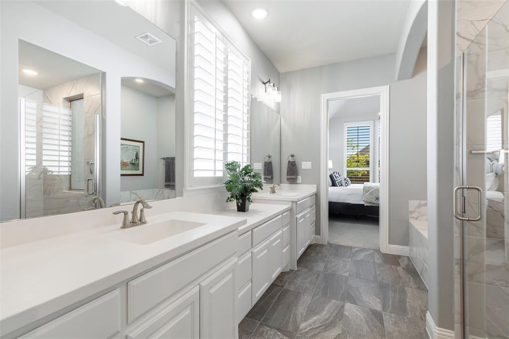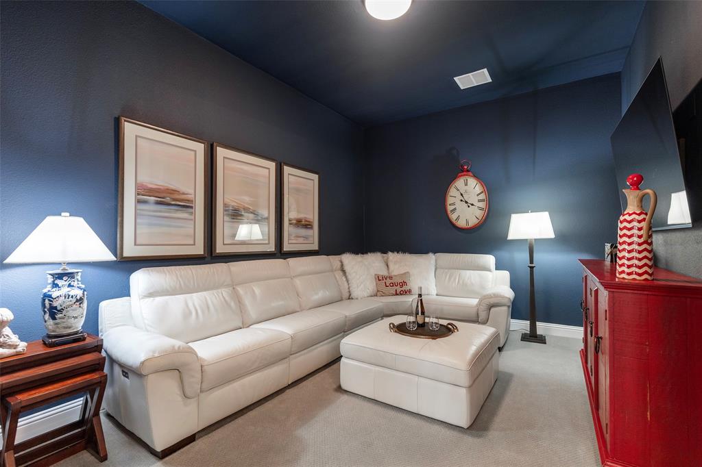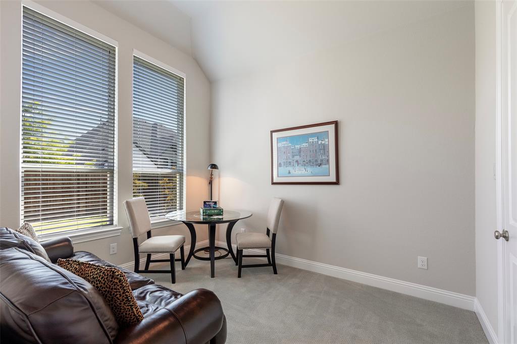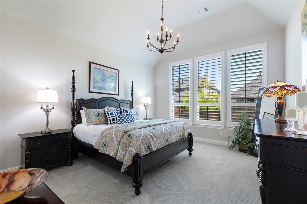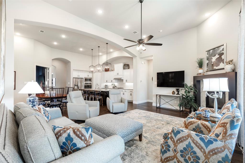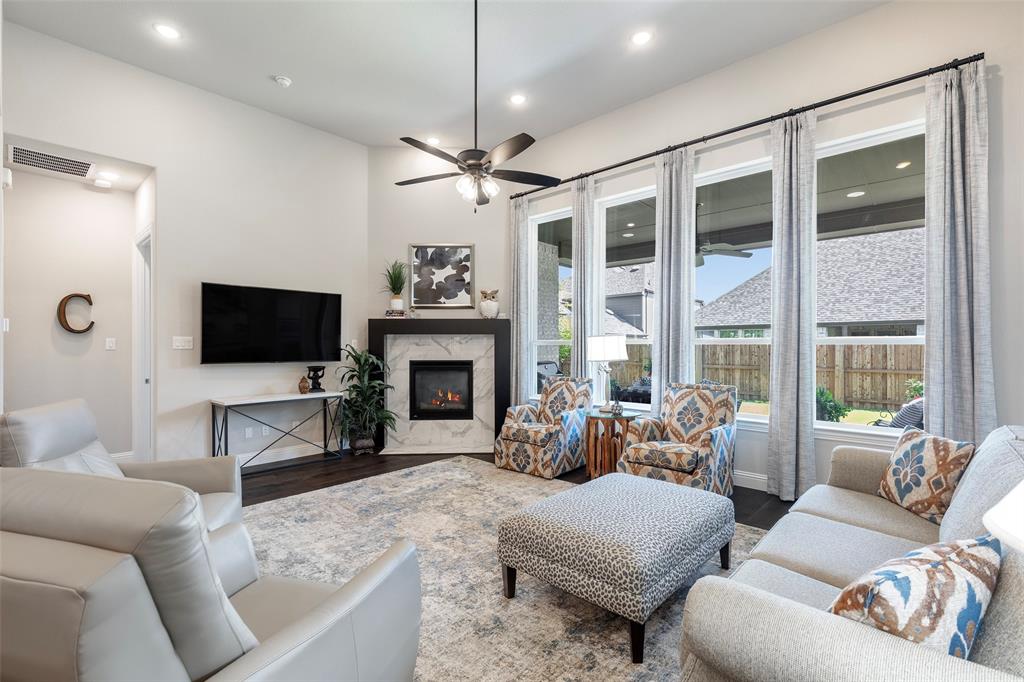 This meticulously cared-for North-facing Highland Home in the sought-after Star Trail community offers the perfect blend of function, style, and comfort. With 4 bedrooms, 3 full baths, a powder bath, dedicated study, entertainment room, and a 3-car garage, this well-designed single-story layout checks every box. Step through the double front doors into a light-filled entry and immediately notice the designer finishes throughout—plantation shutters, hardwood floors, elegant carpeting, and modern light fixtures. The private office at the front of the home provides a peaceful workspace with a view. The smart split-bedroom layout offers privacy for everyone with the guest suite tucked near the front; the primary suite quietly located at the rear and two secondary bedrooms share a full bath on the opposite wing. At the heart of the home, the open-concept kitchen shines with abundant cabinet space, expansive countertops, a large walk-in pantry, and a custom built-in dining hutch. The oversized family room features a wall of windows overlooking the private backyard, filling the space with natural light and providing plenty of room for seating and entertaining. The primary suite feels like a retreat, complete with a spa-inspired bath and a large walk-in closet that connects directly to the laundry room for everyday convenience. Enjoy movie nights or casual hangouts in the entertainment room. The epoxy-coated 3-car garage includes overhead storage and plenty of room for vehicles or hobbies. Additional highlights include, a whole-house water conditioning system with reverse osmosis at the kitchen sink, extended covered patio and spacious backyard. Living in Star Trail means access to resort-style amenities including parks, trails, pools, and an onsite elementary school. Easy access to the Dallas North Tollway makes commuting and weekend outings a breeze. This move-in ready home is an entertainer’s dream and a true standout home. Don’t miss your chance to make it yours!