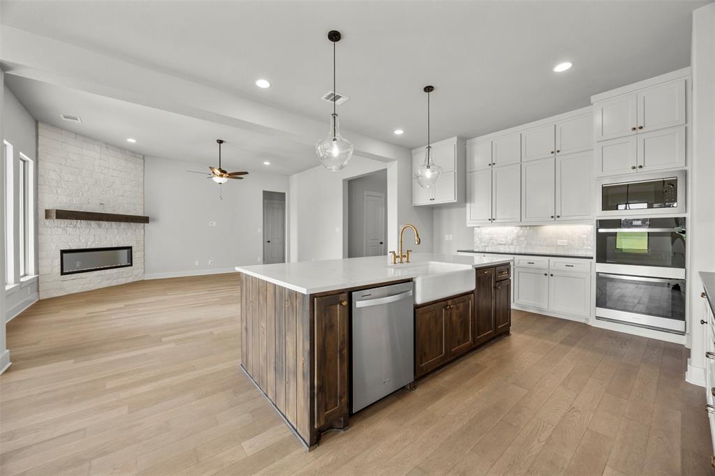 Featuring 4 bedrooms, 3 full bathrooms, a dedicated home office, and a 3-car garage, this home is ideal for families, remote workers, and those who love to entertain. The open-concept kitchen boasts painted ceiling-height cabinetry, a double oven, a large island, and a stylish combination of quartz and granite countertops—ready for holiday meals or casual weeknight cooking.