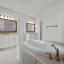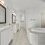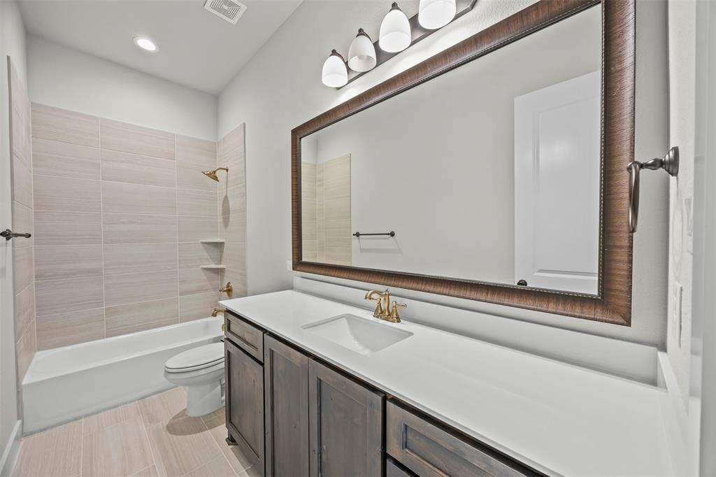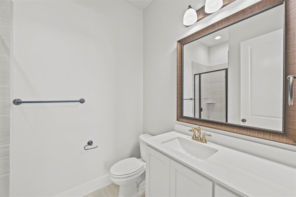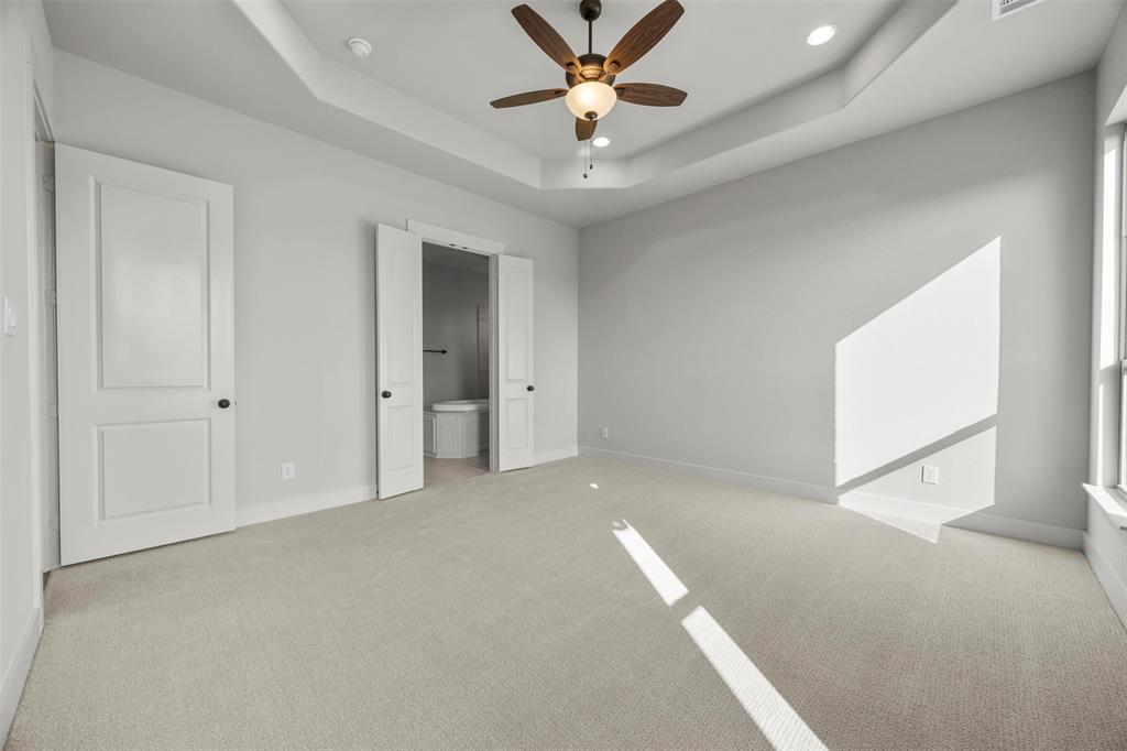 Enjoy engineered oak hardwood floors throughout the main living areas, and soft patterned Berber carpet in each bedroom for a cozy touch. The primary suite is a serene retreat with a spa-like bath, oversized shower, dual vanities with quartzite countertops, and elegant framed mirrors. One of the secondary bedrooms includes its own private ensuite—perfect for guests or multigenerational living.