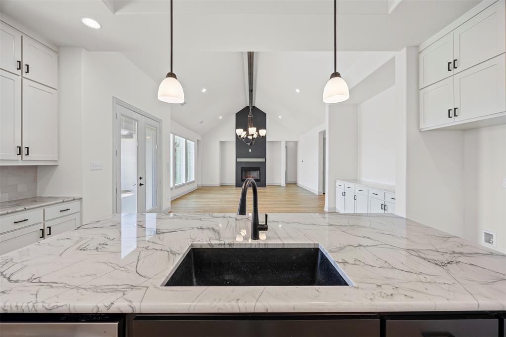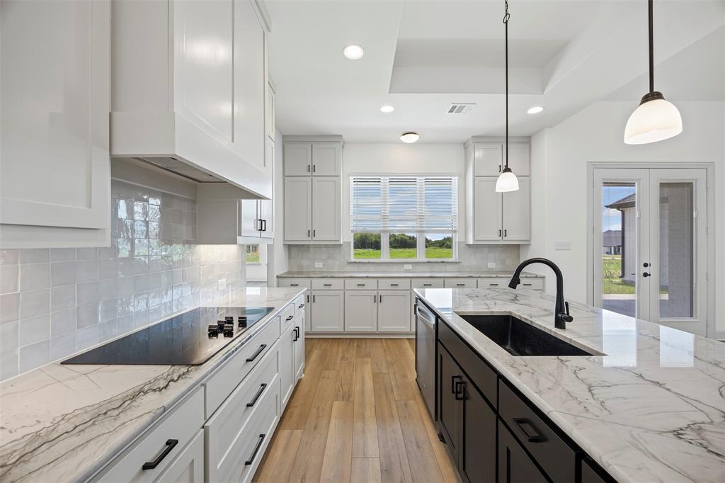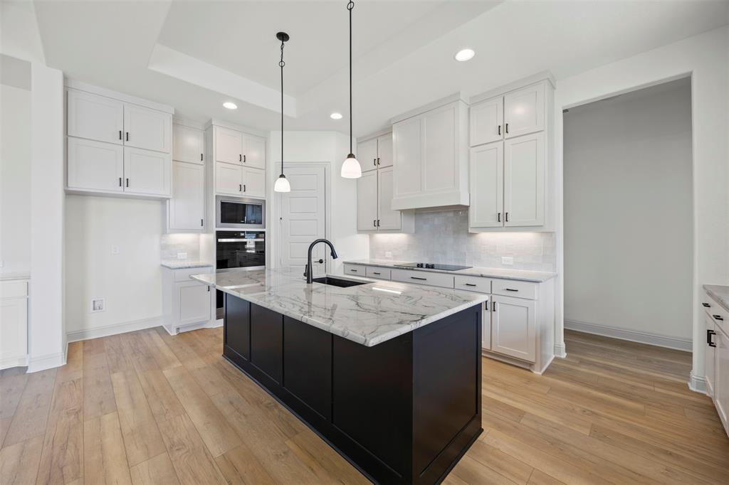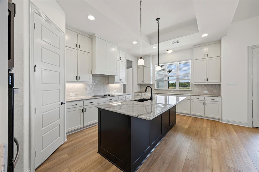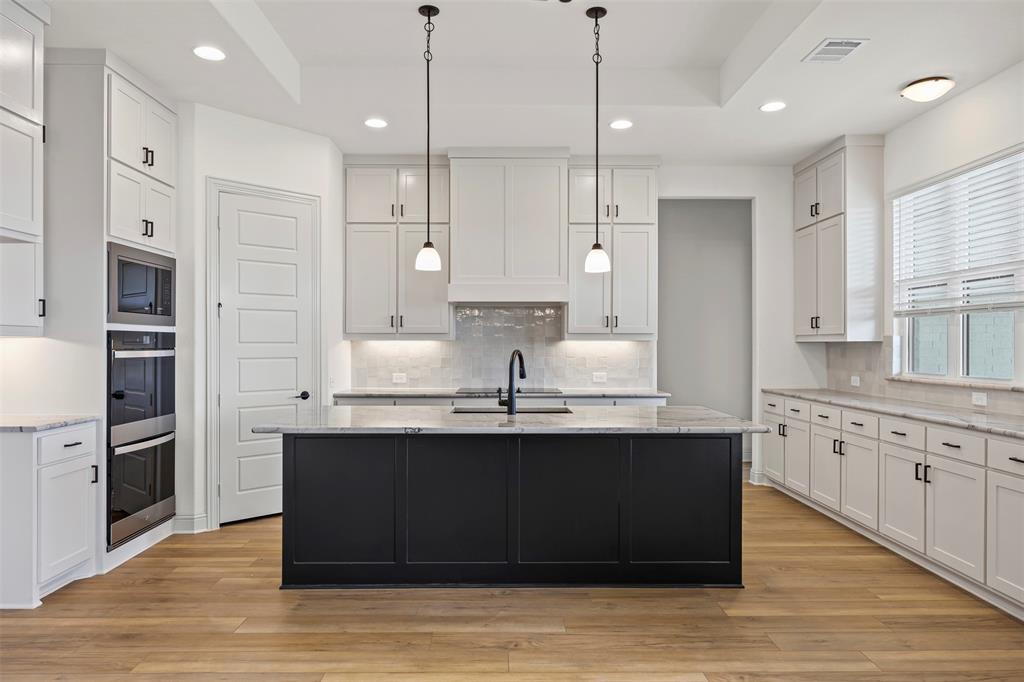 Inside, you’ll find two expansive living areas, a dedicated home office, and a formal dining space, all filled with natural light. The chef’s kitchen is a true centerpiece, featuring double ovens, an oversized island, and designer lighting—perfect for everyday meals or hosting family gatherings.